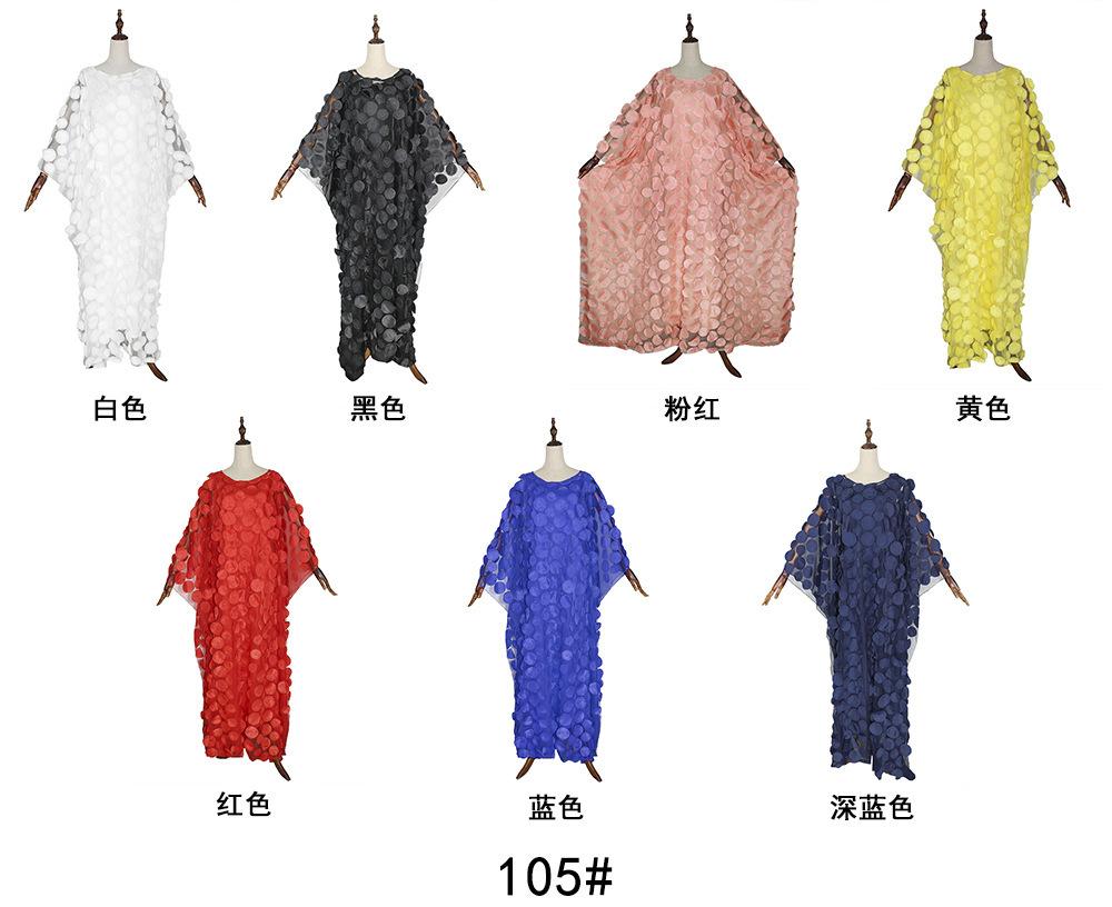 Vestido Africano para Mujer Transfronterizo Aliexpress Más Vendido Bordado Tridimensional Cuello Redondo Mangas Murciélago Holgado Talla Grande Bata Chaleco