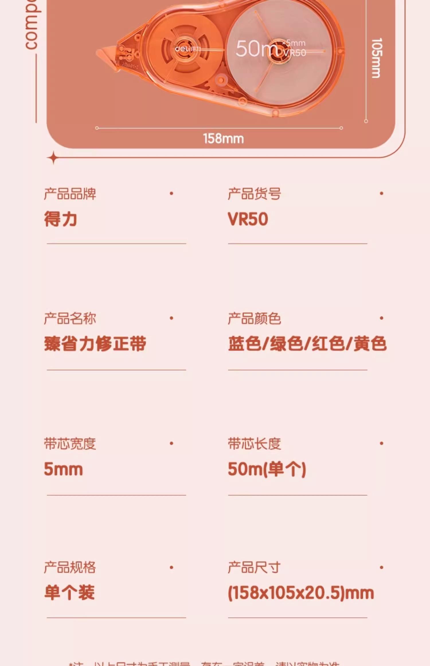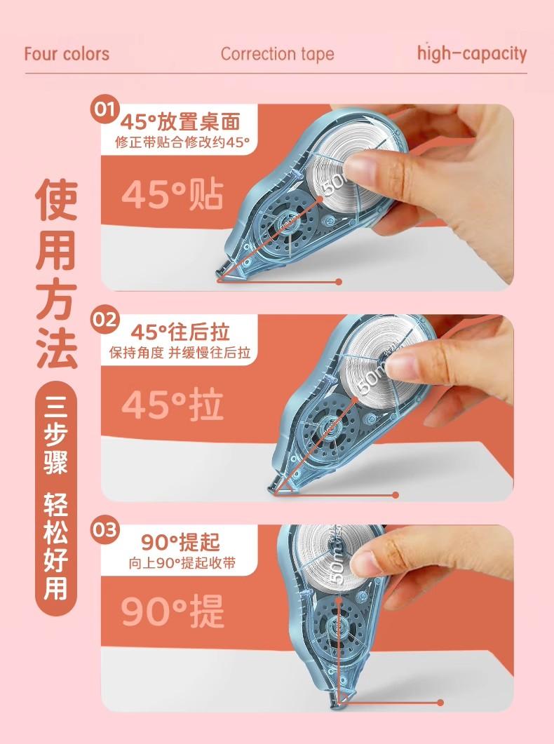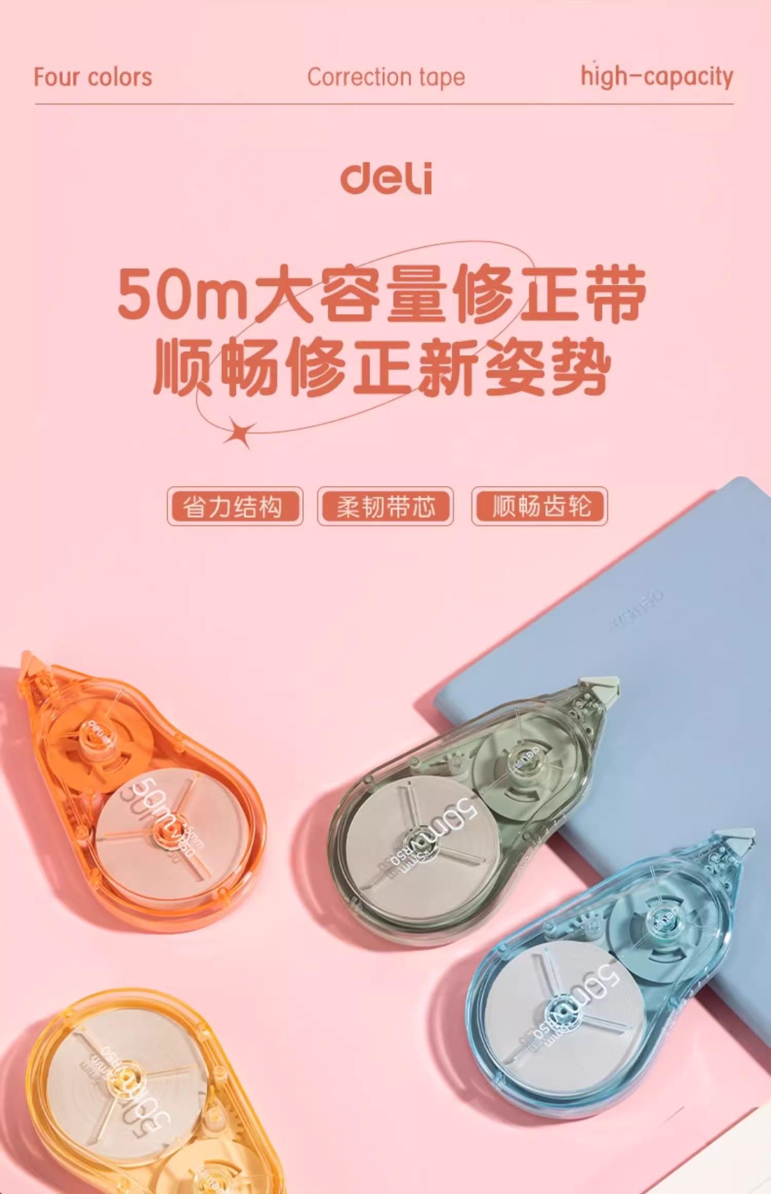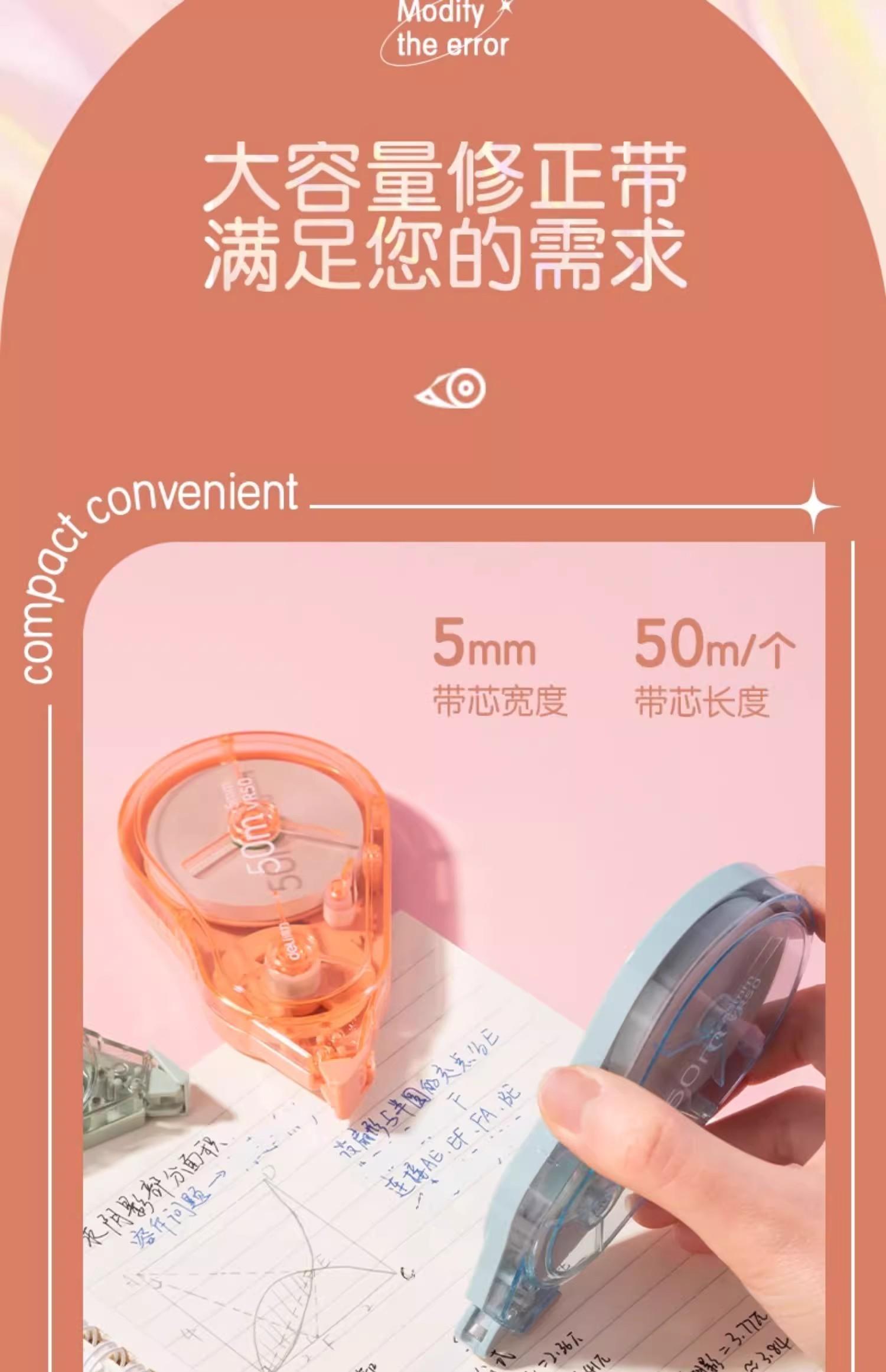 Deli Cinta Correctora Gran Capacidad Paquete Asequible Suave para Estudiantes de Primaria y Secundaria, Cinta Correctora Duradera y Silenciosa para Estudiantes con Alta Apariencia