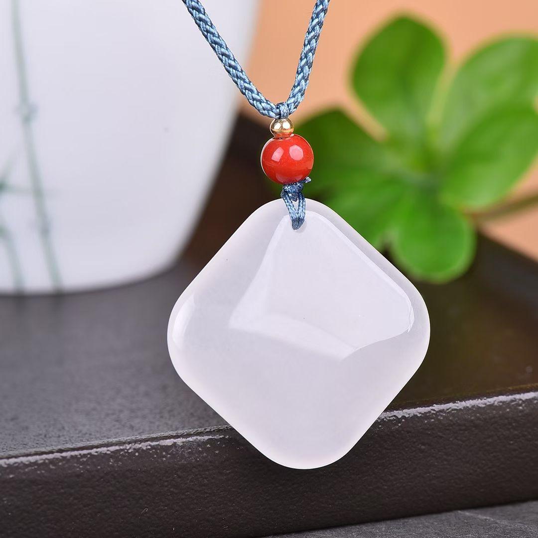 Colgante Cuadrado de Jade Seda Dorada de Xinjiang de Mineral en Bruto Natural Paz y Seguridad Colgante Cuadrado de Jade para Hombres y Mujeres