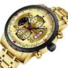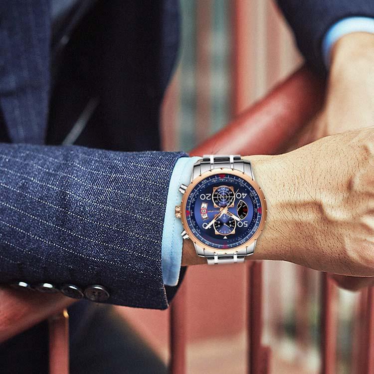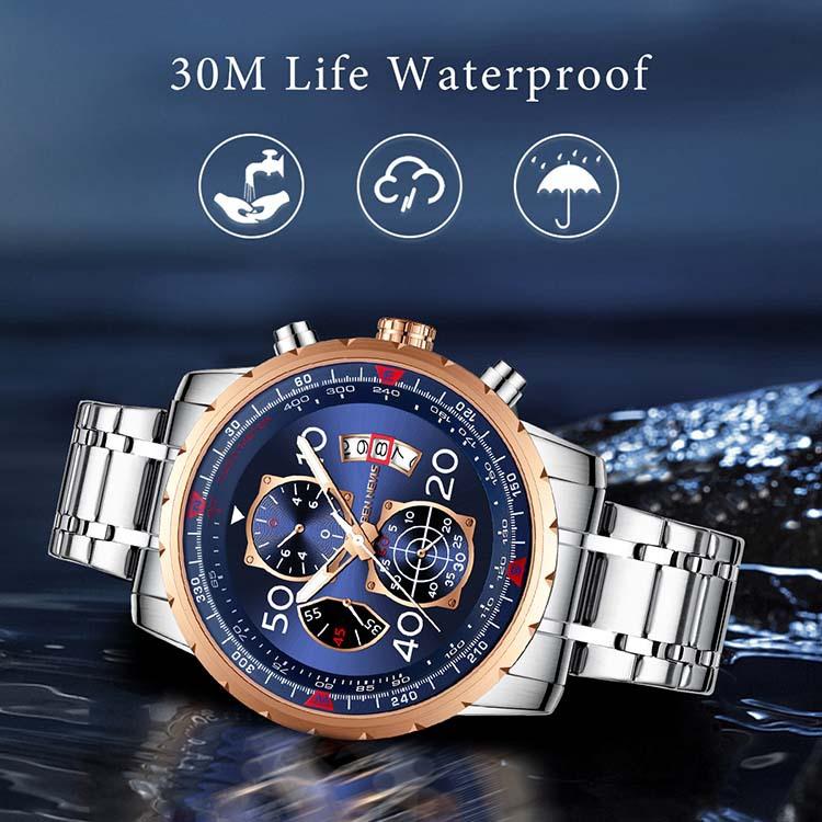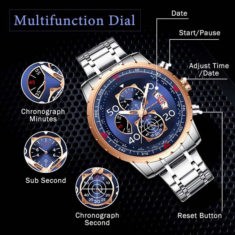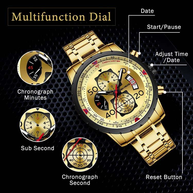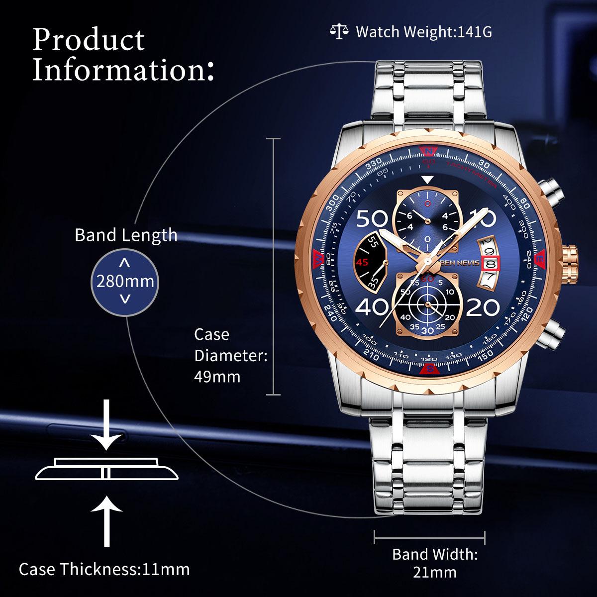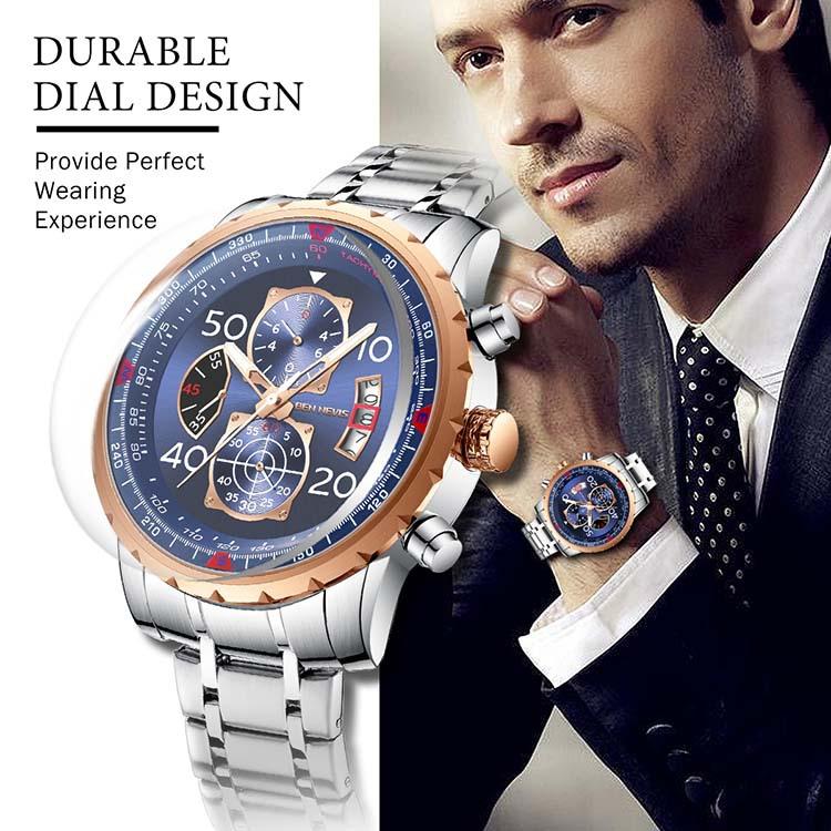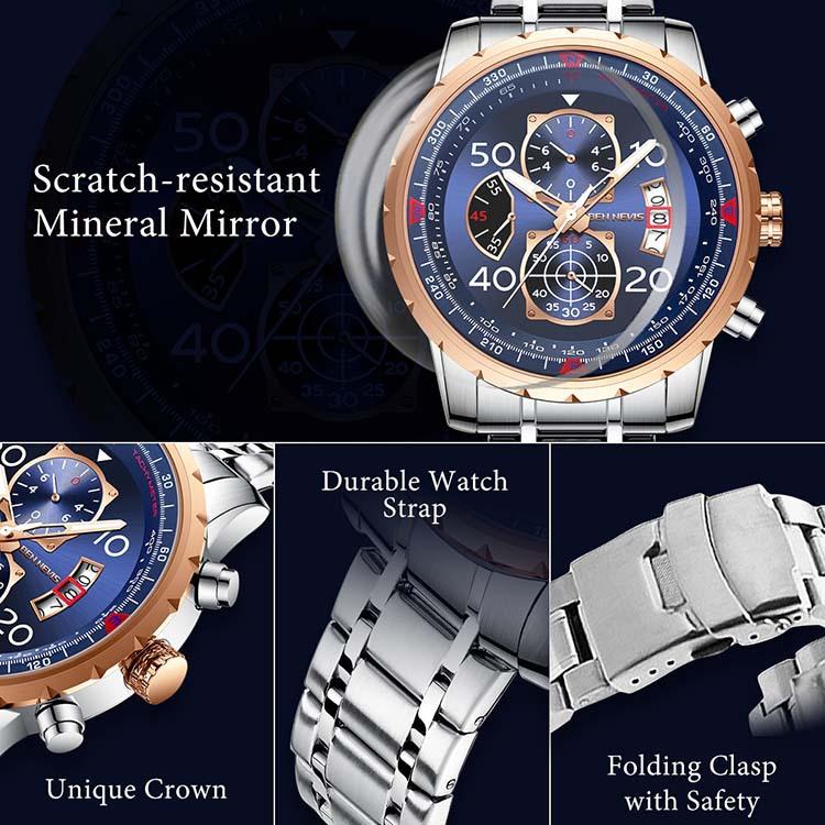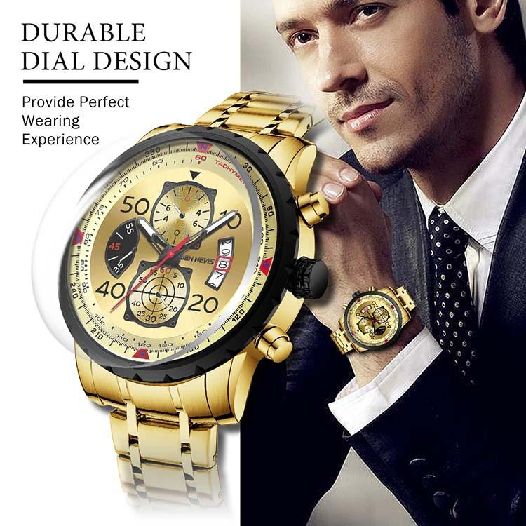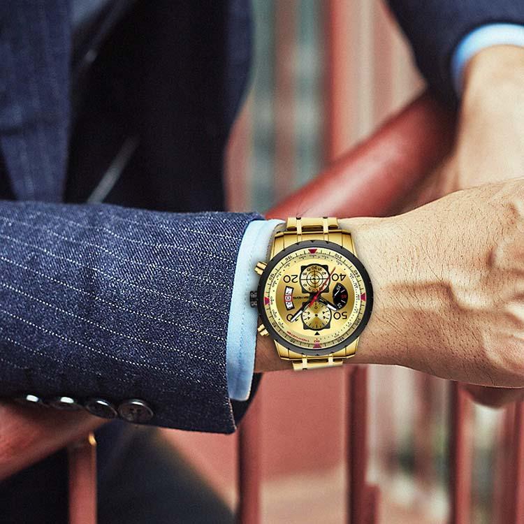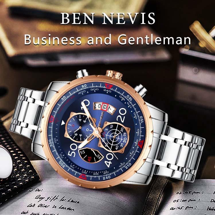 Reloj de Cuarzo Dorado de Venta Caliente Ben Nevis Multifuncional Tres Ojos Seis Agujas Esfera Grande Reloj para Hombre Bn6021G