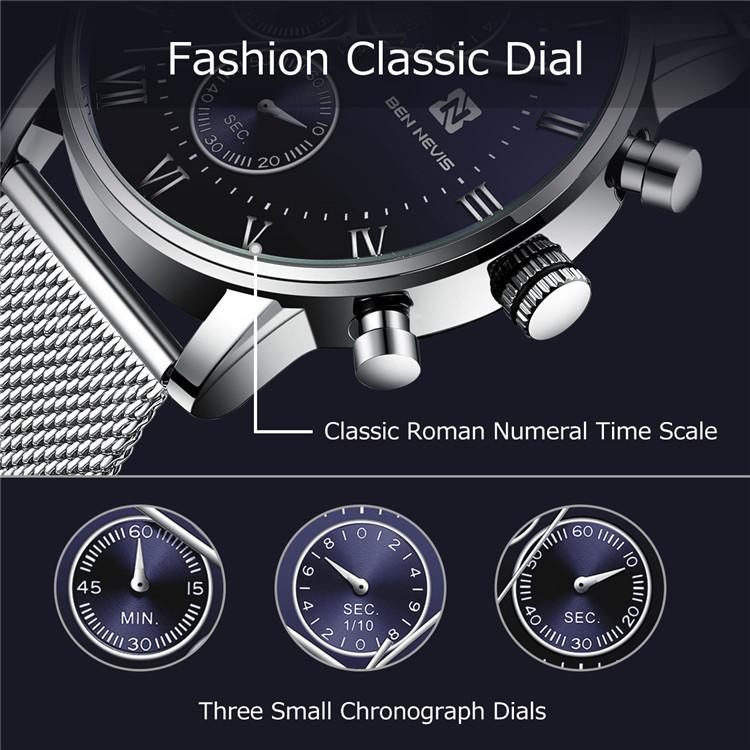 | Benyvis Correa de Acero Sólido Hebilla Mariposa Reloj de Cuarzo para Hombre Reloj Casual de Negocios Reloj de Pulsera Versátil para Hombre | BEN NEVIS本尼维 Reloj multifunción cronógrafo calendario para hombre deportivo resistente al agua cuarzo para hombre | BEN NEVIS本尼维 新款男士手表水鬼钢带石英手表 非机械商务手表 | ||