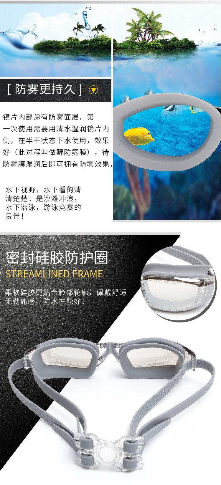 Gafas de natación HD antivaho e impermeables, directas de fábrica, para hombres y mujeres, con montura grande, galvanizadas, para miopía, gafas de natación planas.