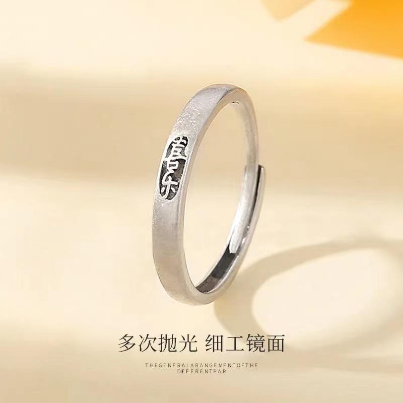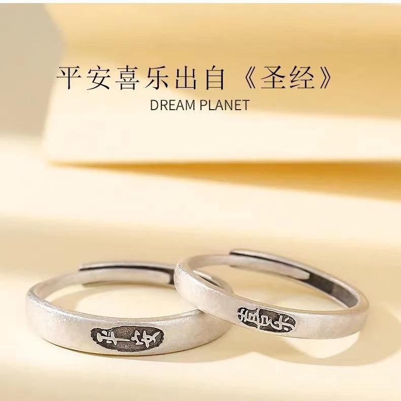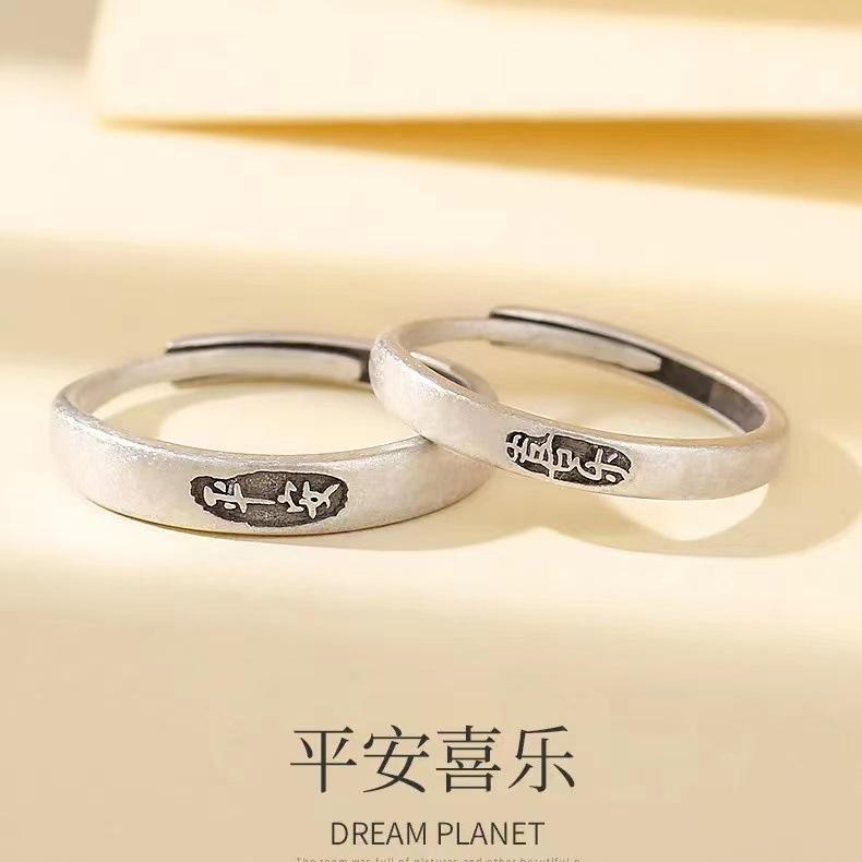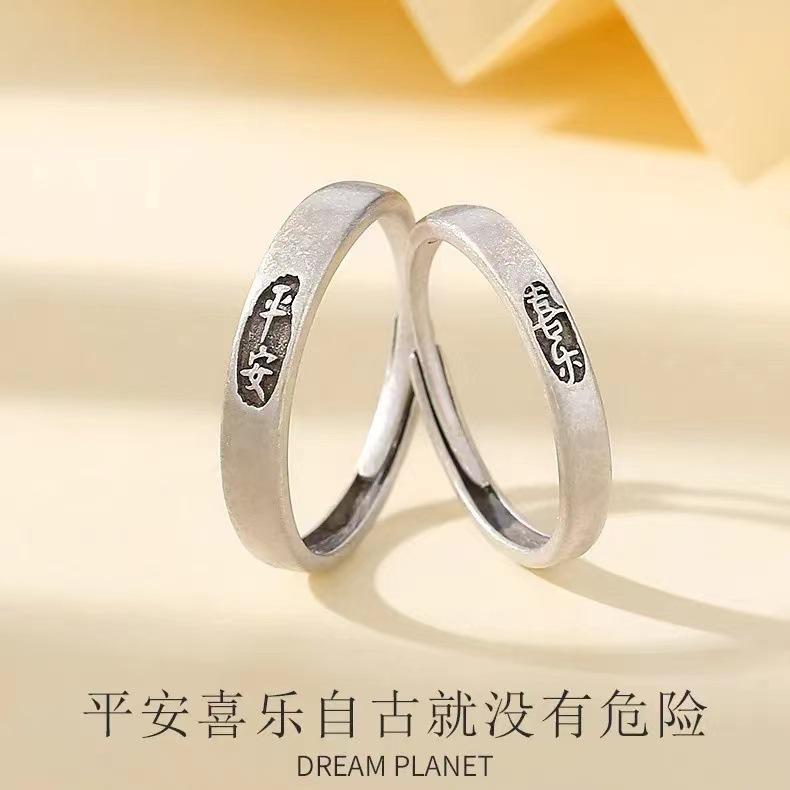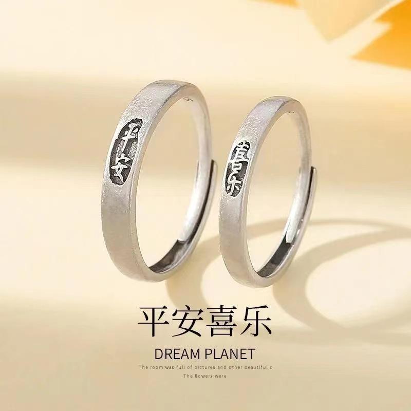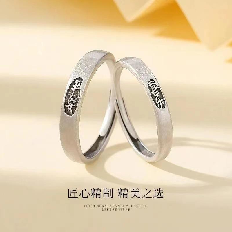 Anillo de Pareja Ping An Feliz Anillo Simple de Lujo Ligero para Estudiante Simple Elegante Regalo de Cumpleaños para Novia