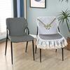 La imagen de abajo es una funda para silla gris en forma de arco de peonía abriéndose, funda para silla irregular