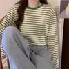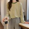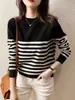 2025 Camiseta Delgada de Cuello Redondo y Manga Larga para Mujer Otoño Nuevo Suelta Slim Más Fácil de Combinar Camiseta Básica a Rayas Top para Mujer