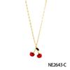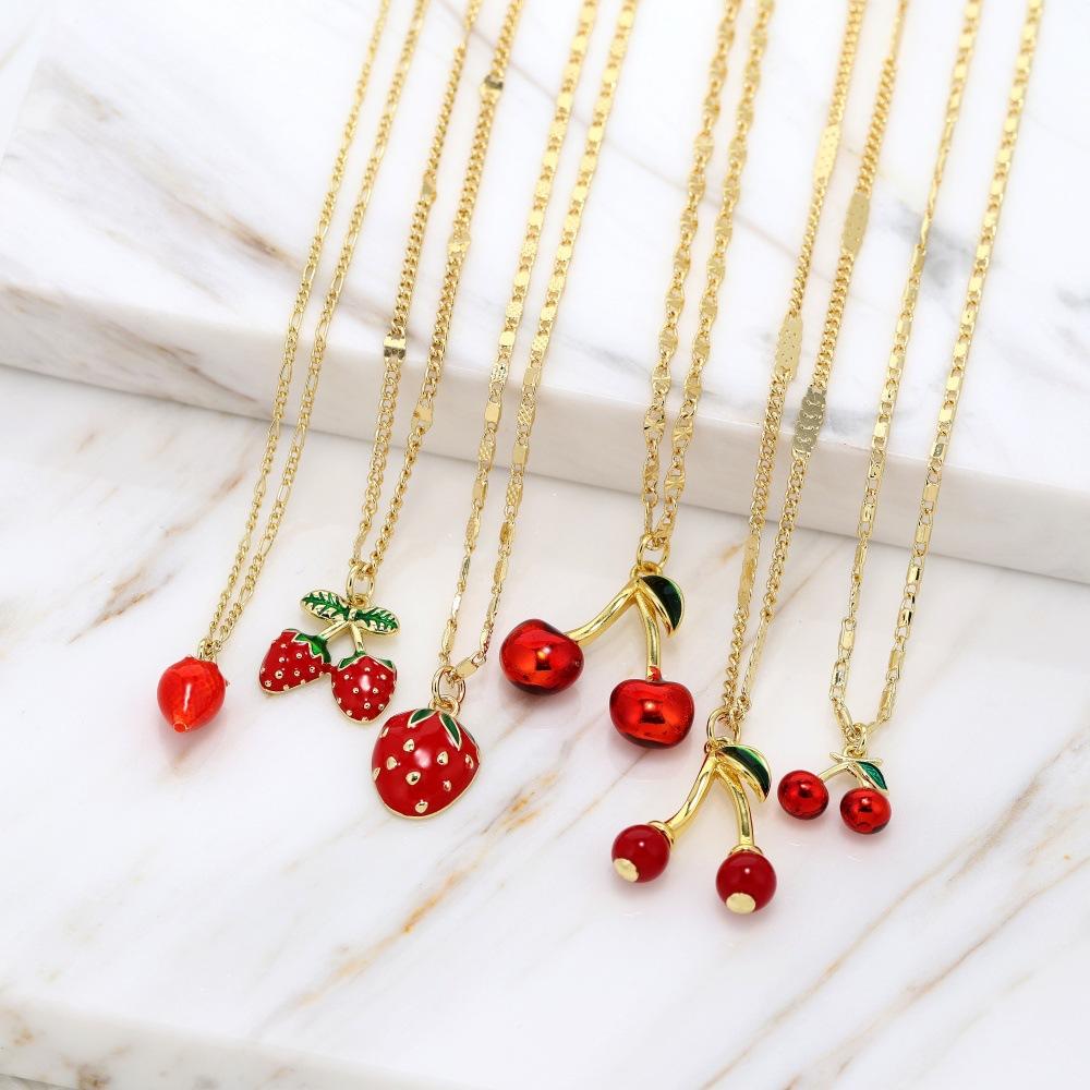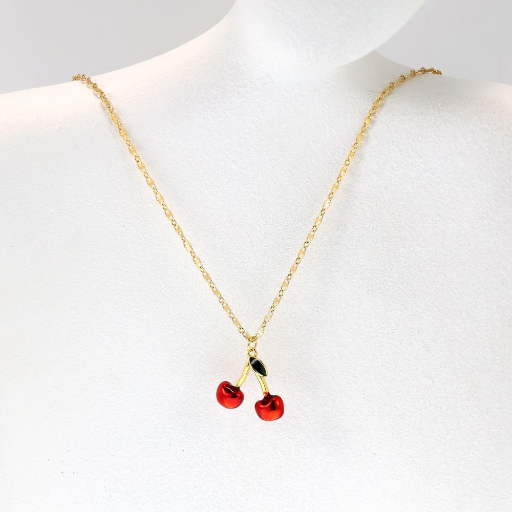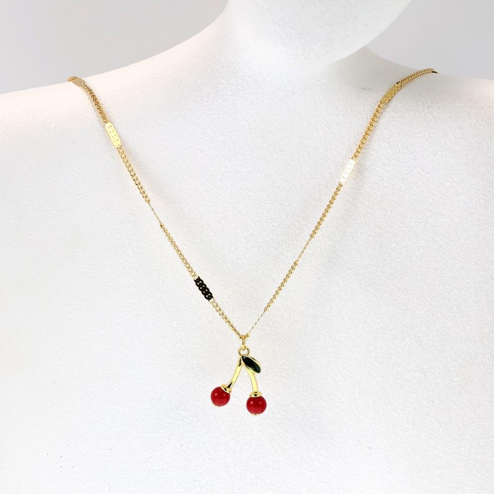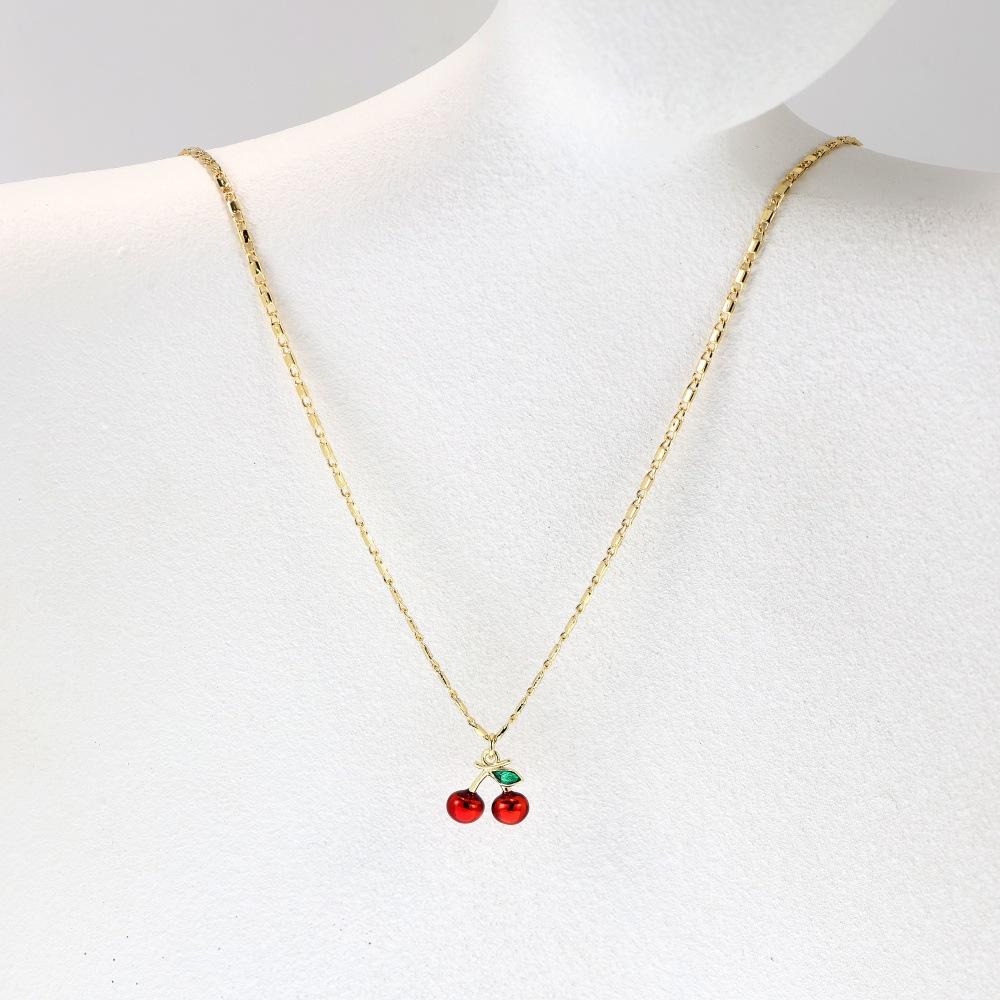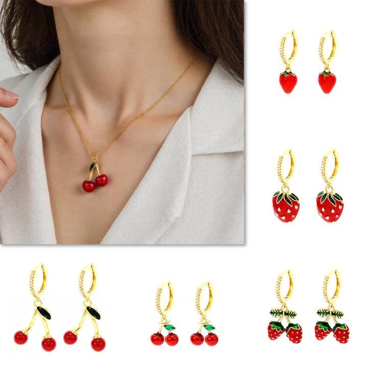 Compra Estilo Ins Cadena Clavicular Cereza Roja Set de Joyería Aretes Collar con Colgante de Cereza Hoja Verde Transfronterizo para Mujer Accesorios al por mayor en Joom.pro