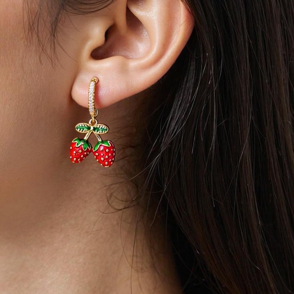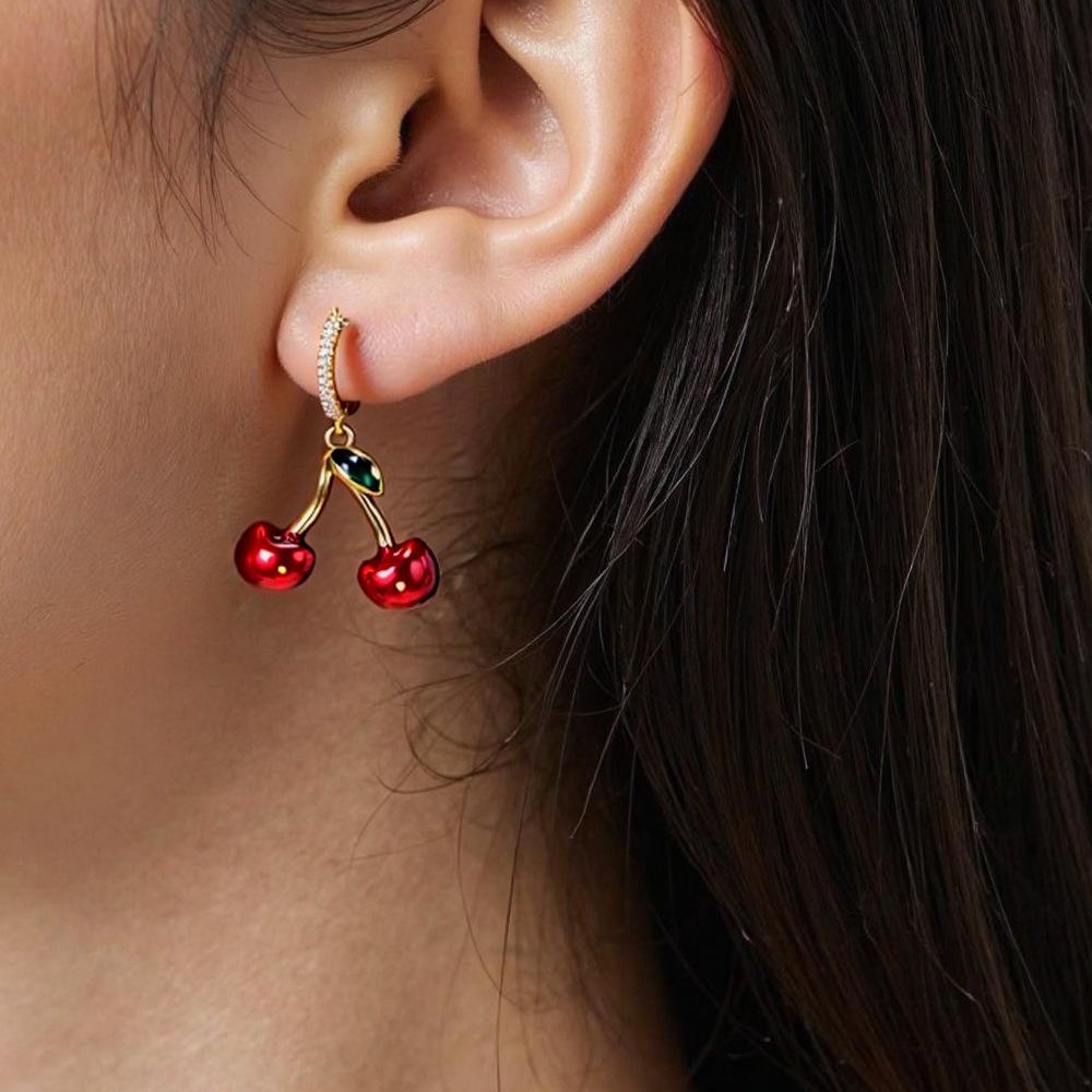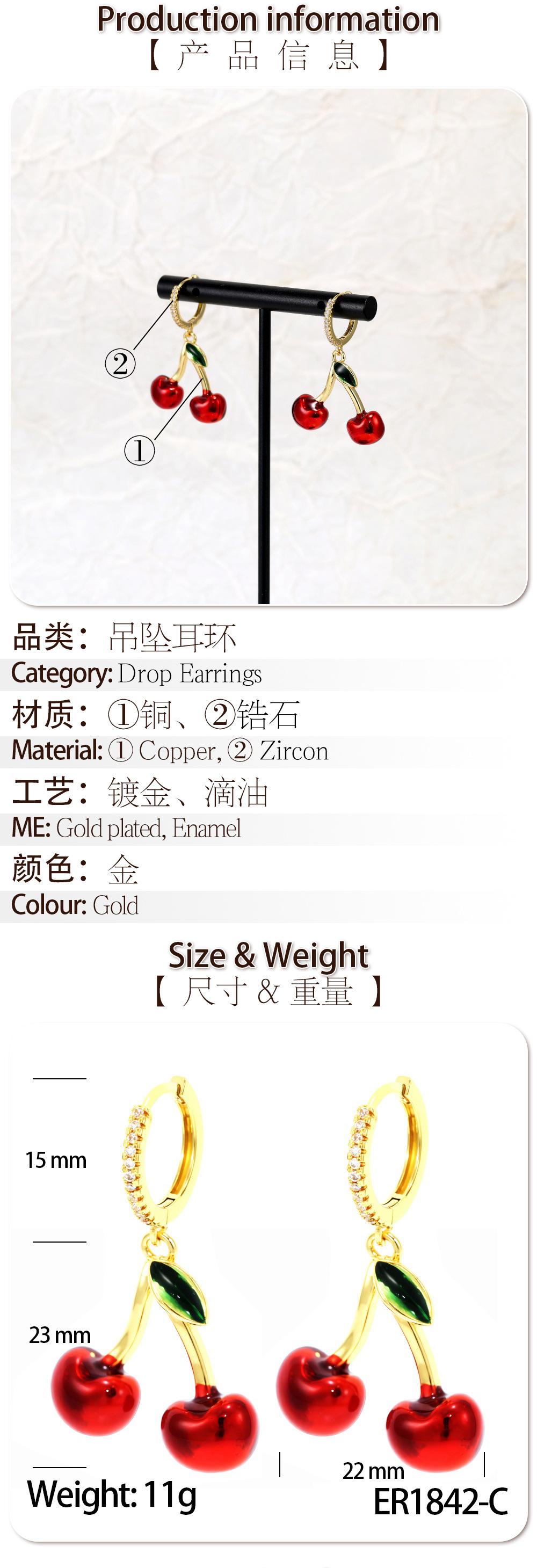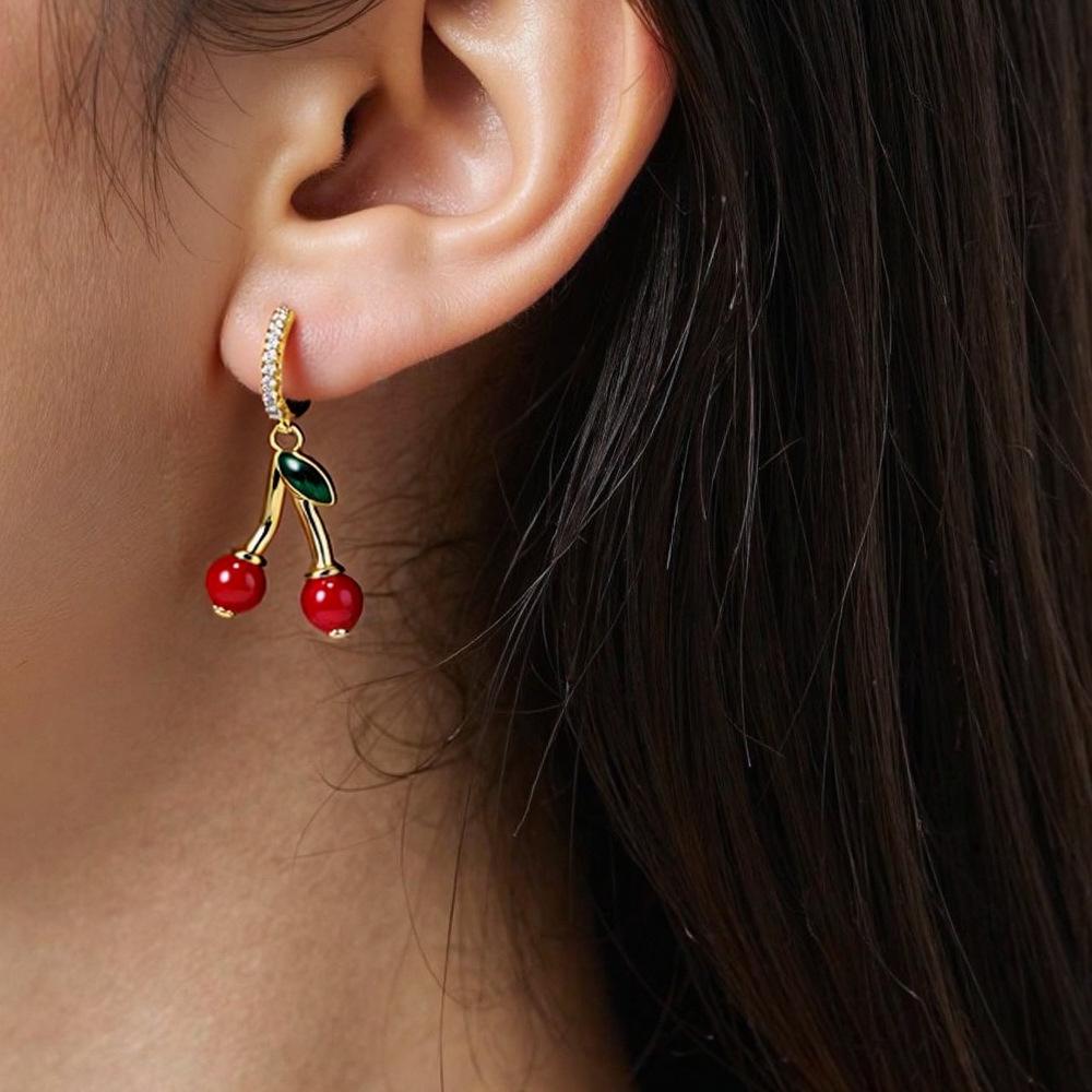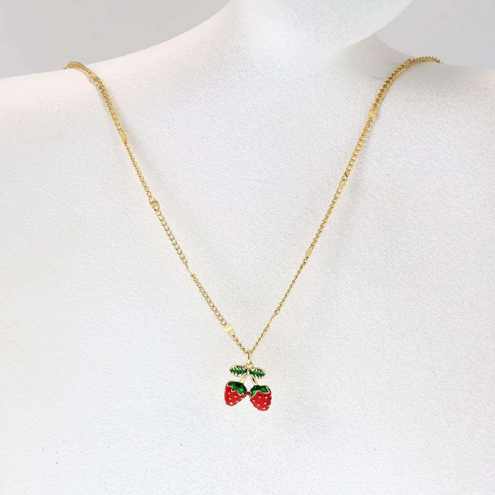 Compra Estilo Ins Cadena Clavicular Cereza Roja Set de Joyería Aretes Collar con Colgante de Cereza Hoja Verde Transfronterizo para Mujer Accesorios al por mayor en Joom.pro