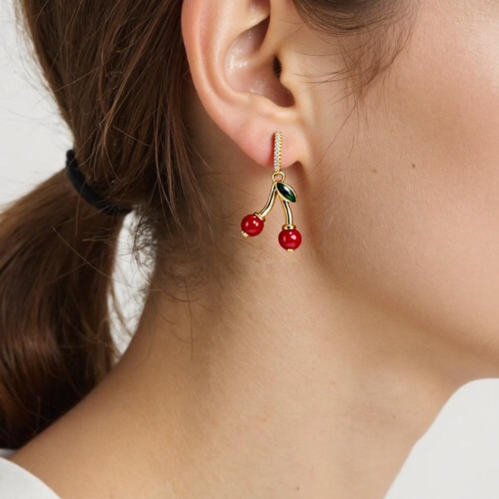 Estilo Ins Cadena Clavicular Cereza Roja Set de Joyería Aretes Collar con Colgante de Cereza Hoja Verde Transfronterizo para Mujer Accesorios