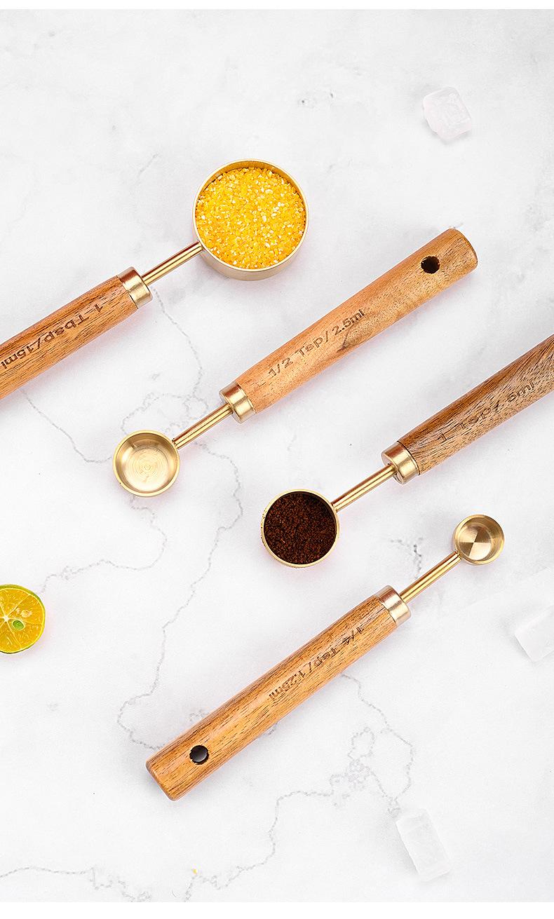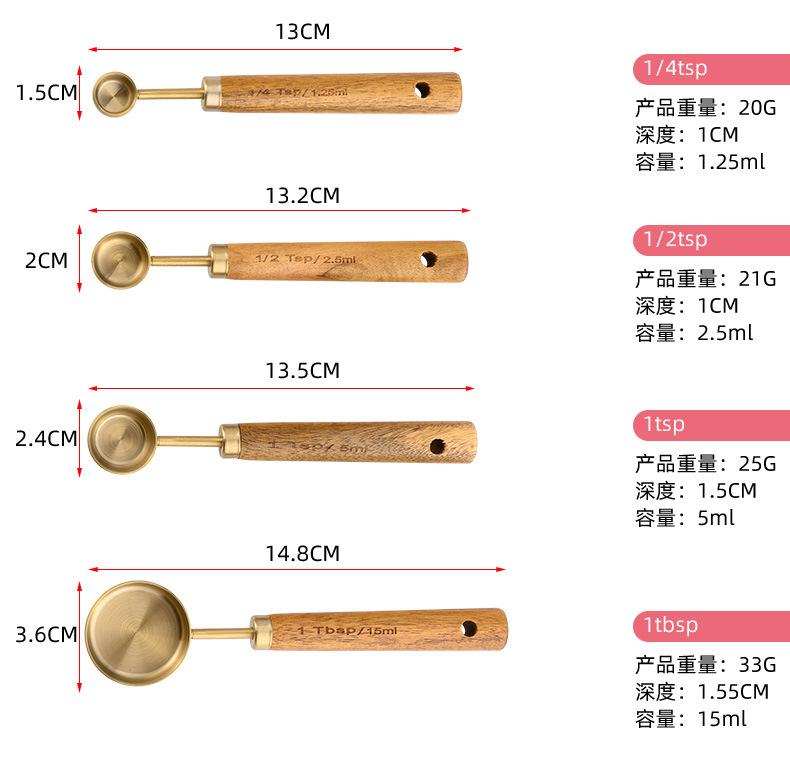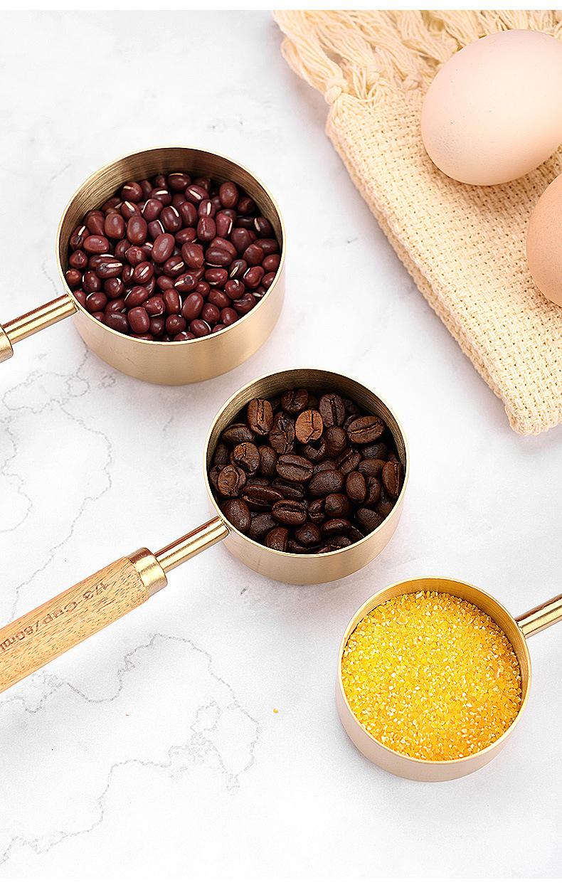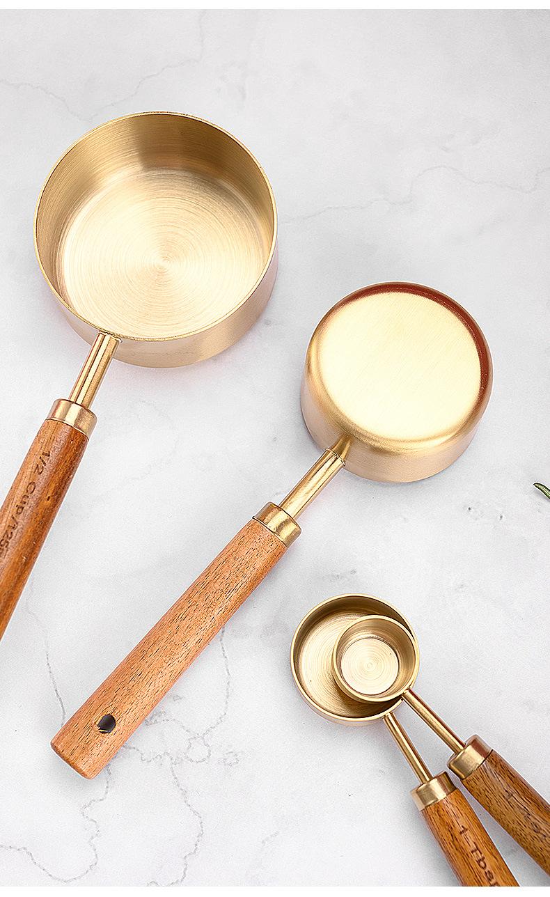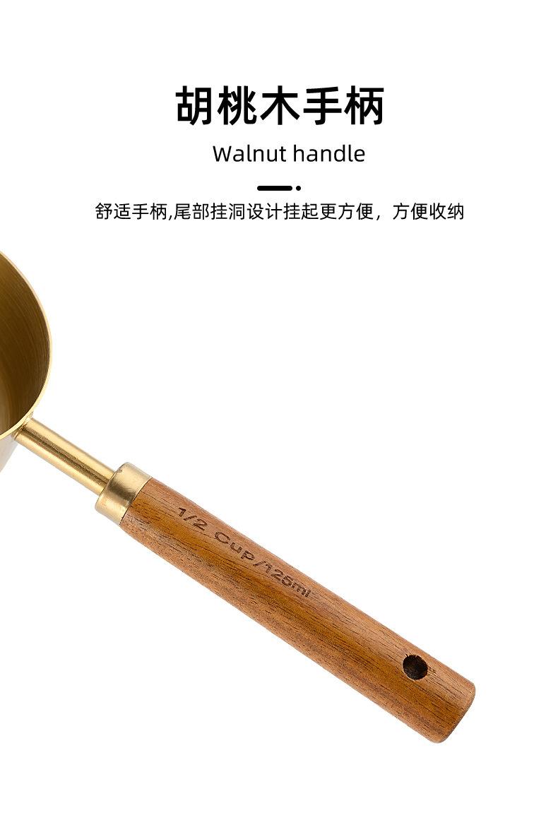 Taza Medidora de Acero Inoxidable Cuchara Medidora Juego de 8 Piezas Utensilios para Hornear con Cuchara Medidora Graduada Mango de Nogal Cuchara Medidora Oro Rosa