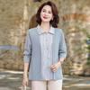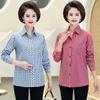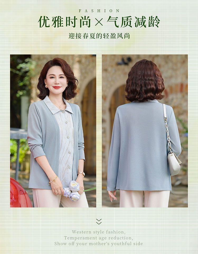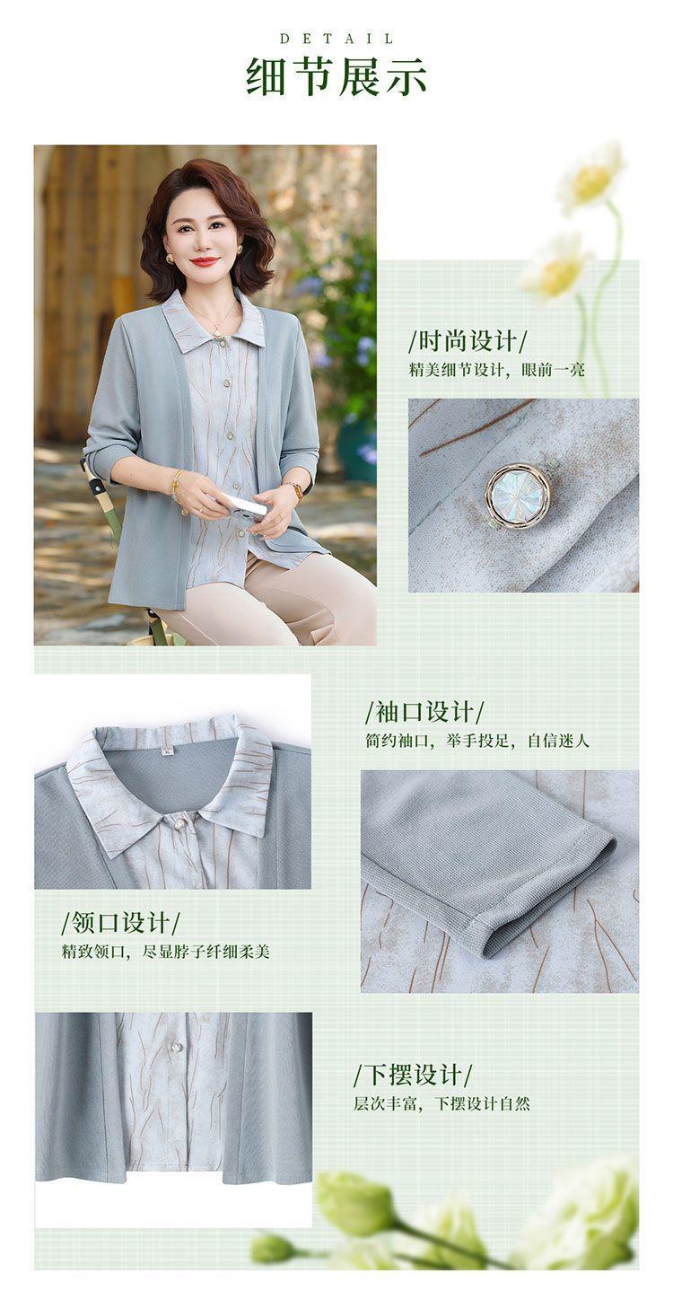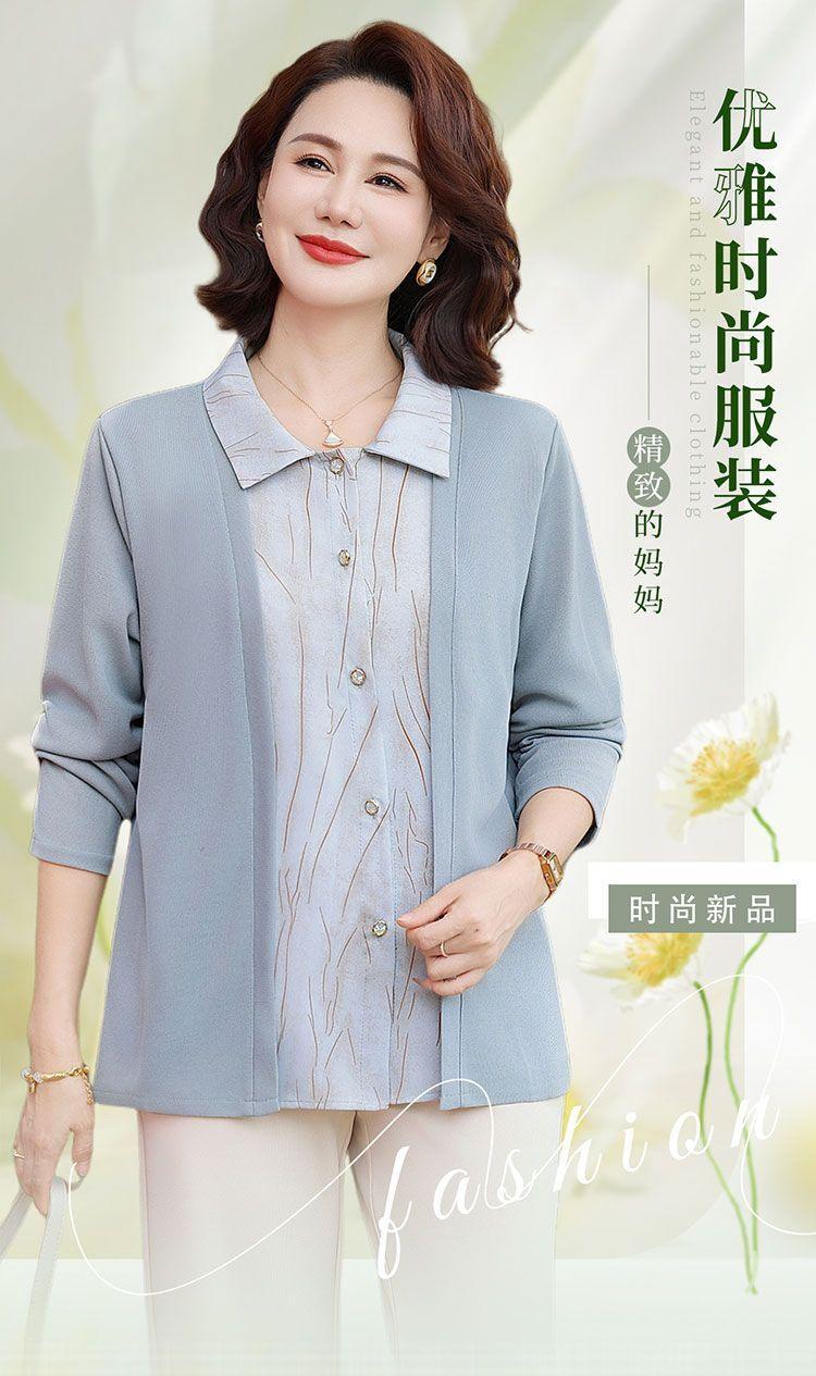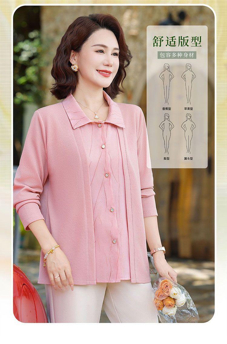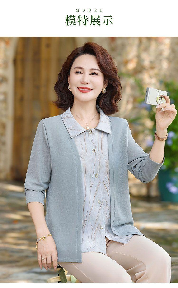 Tops de Otoño Cómodos a la Moda para Mediana Edad y Adultos Mayores Nuevo Versátil Casual Color Sólido Camisa de Mamá Falsa de Dos Piezas