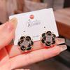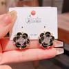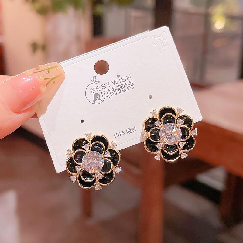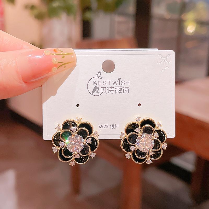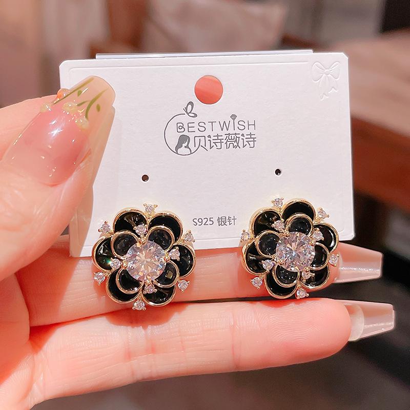 Pendientes de Aro Elegantes de Aguja de Plata con Flor de Zirconio Esmalte Geométrico para Mujer Estilo Coreano de Alta Gama Elegantes Pendientes de Estilo Lujoso Ligero