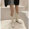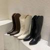 Botas Cowboy para Mujer Tacón Alto Tacón Ancho Versátiles Nuevo Otoño Punta Afilada Botas Altas Occidentales Hasta la Rodilla Vintage
