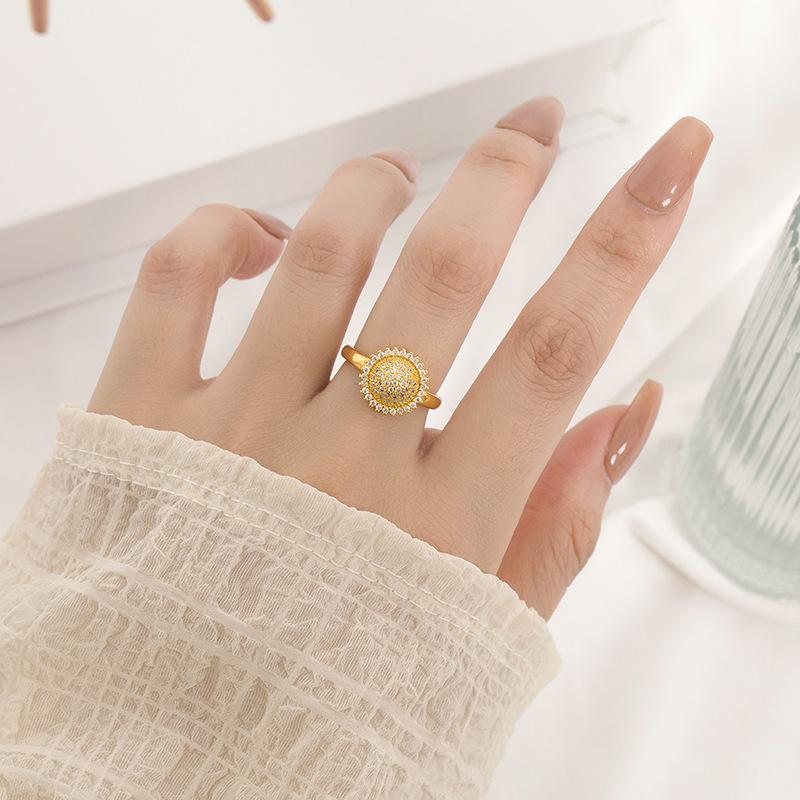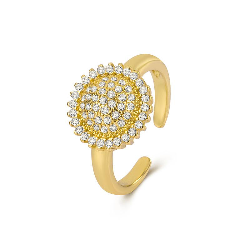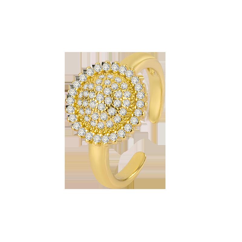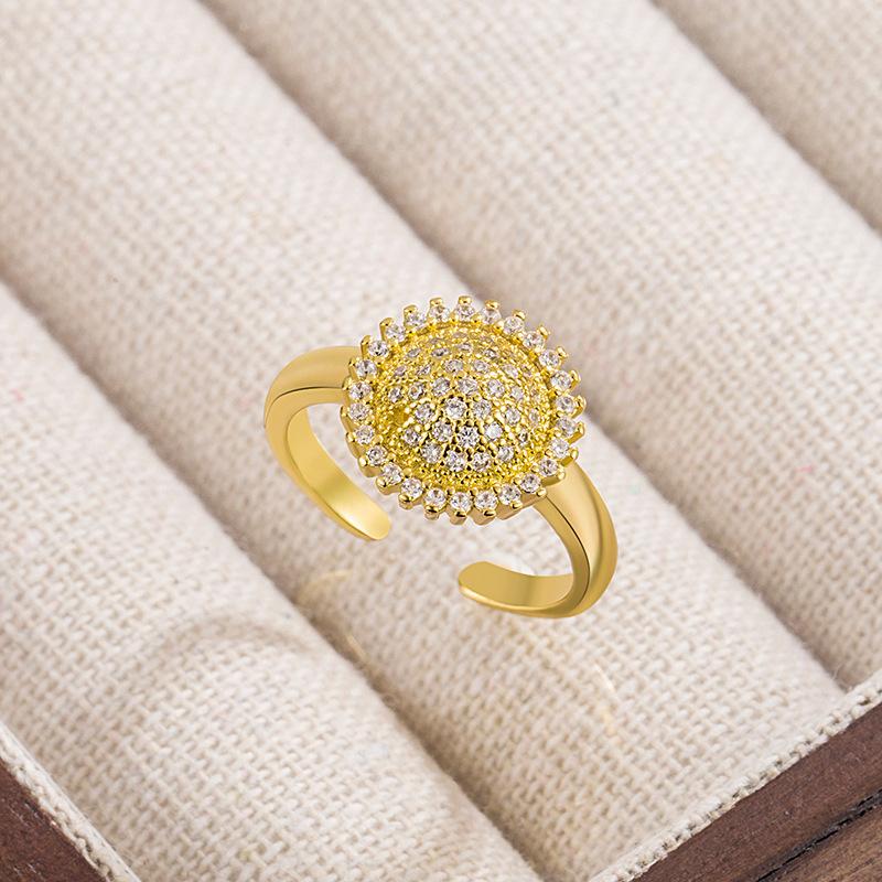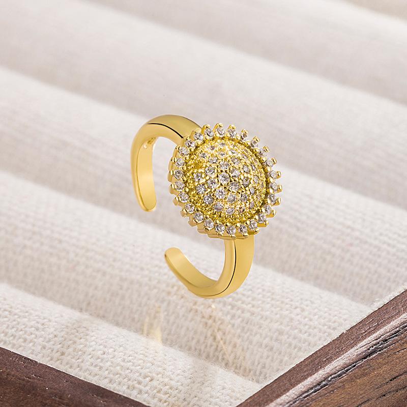 Anillo de girasol patrón femenino micro incrustado circón cobre chapado oro color retenedor de color anillo femenino abierto ajustable venta al por mayor
