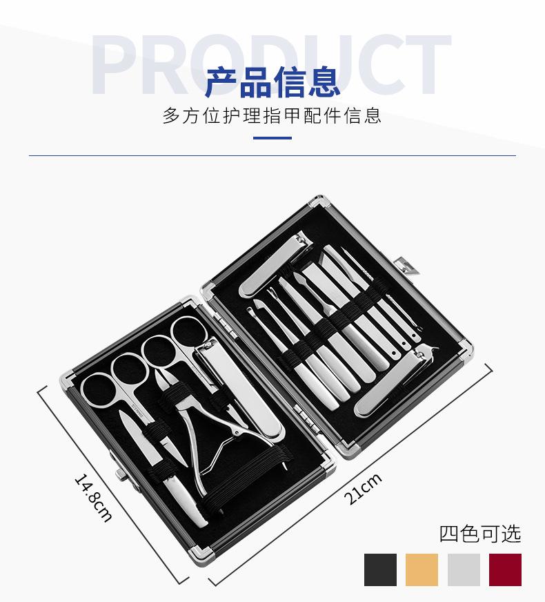 Estuche de aluminio con 16 cortaúñas, herramientas para manicura, cortaúñas con logotipo personalizado, set de belleza