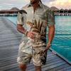CP12723A29 Comercio Exterior Transfronterizo Nuevo Cárdigan Casual para Hombre Verano Manga Corta Camisa con Bolsillo Pantalón de Playa