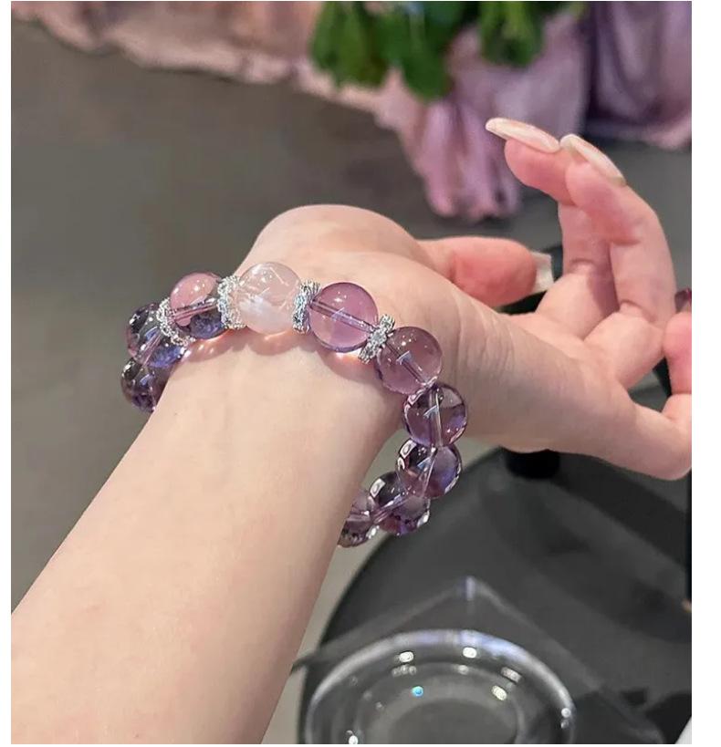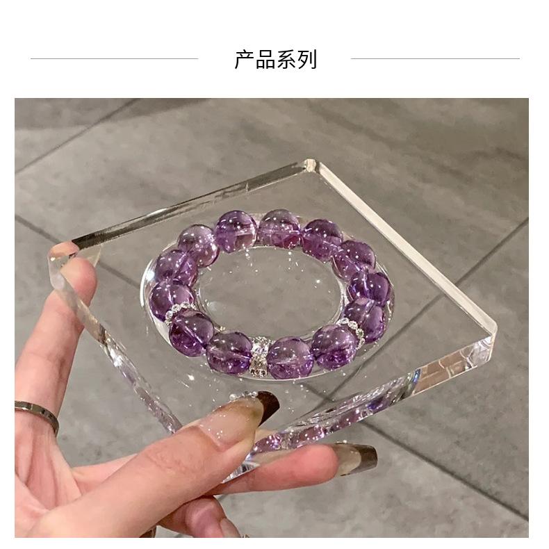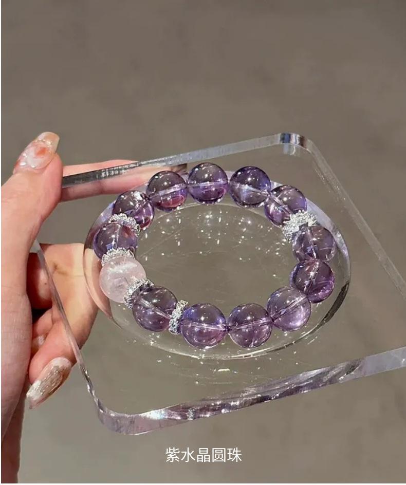 Pulsera de Cuentas Redondas de Amatista Brasileña Natural de 12 mm para Mujer Cristal Púrpura Pulsera de Cuentas Estilo Simple Moda Atmosférico