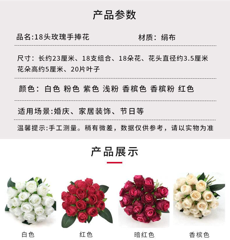 Simulación 18 Cabezas Rosa Flor Artificial Flor Falsa Ramo de Mano Nupcial Boda Hogar Adornos de Fotografía Decoración