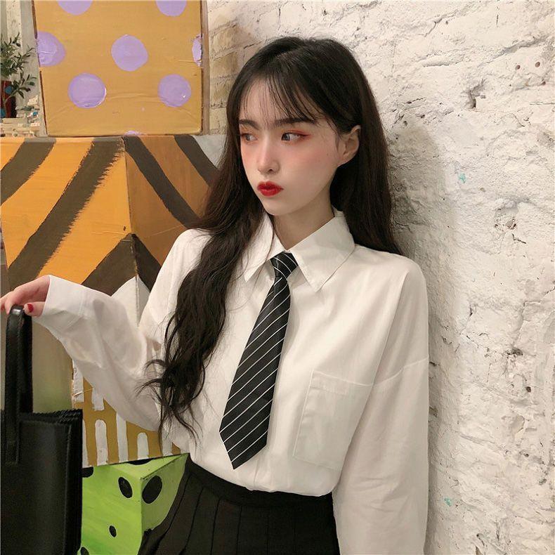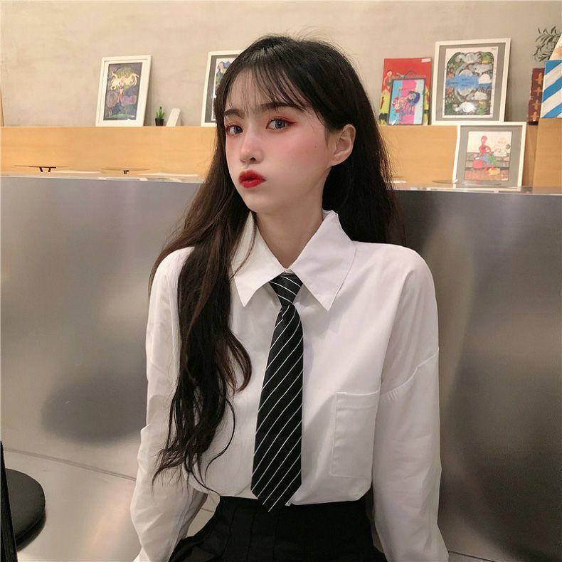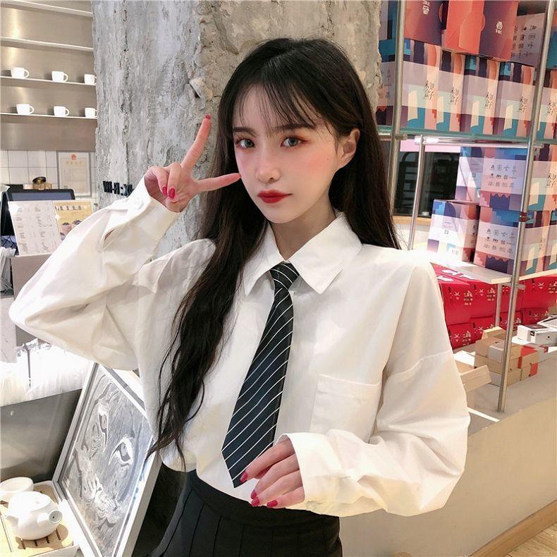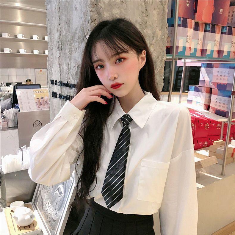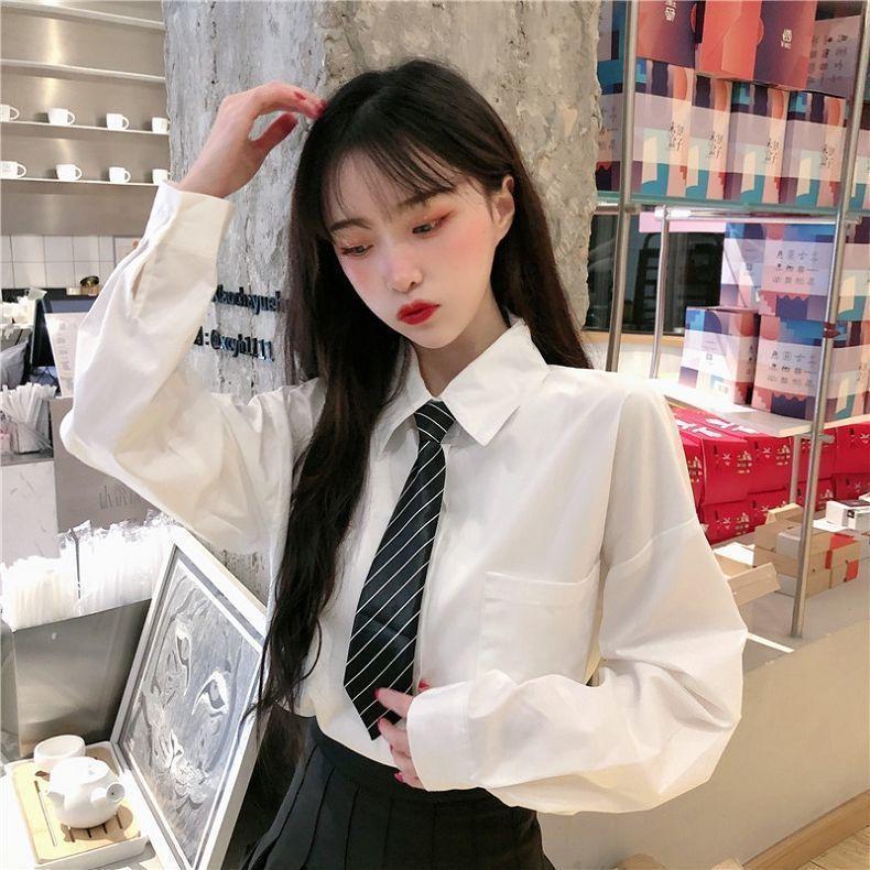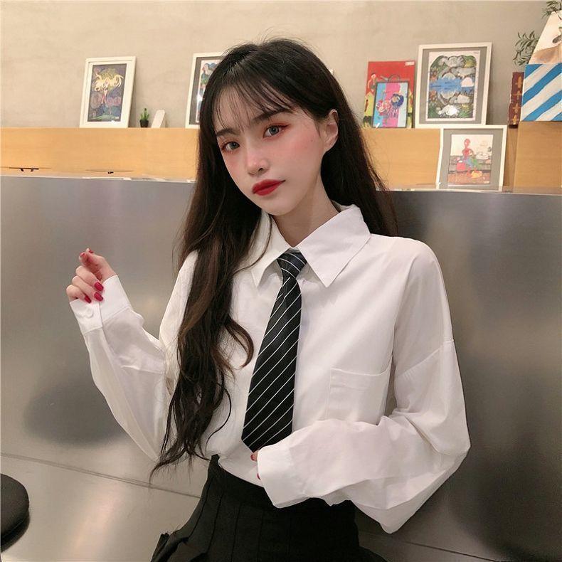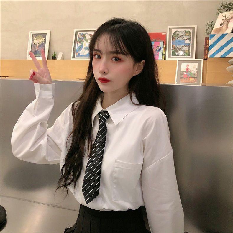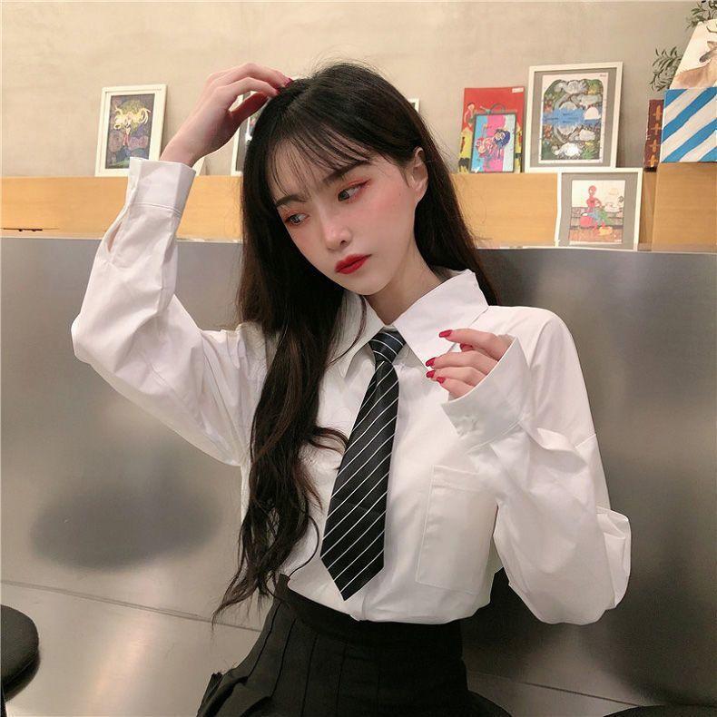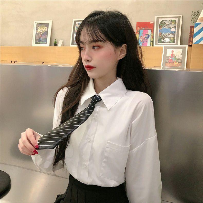 Otoño 2024 Nuevo Estilo Coreano Camisa Blanca para Mujer Diseño Nicho Top Versátil Holgada Estudiante Camisa con Corbata