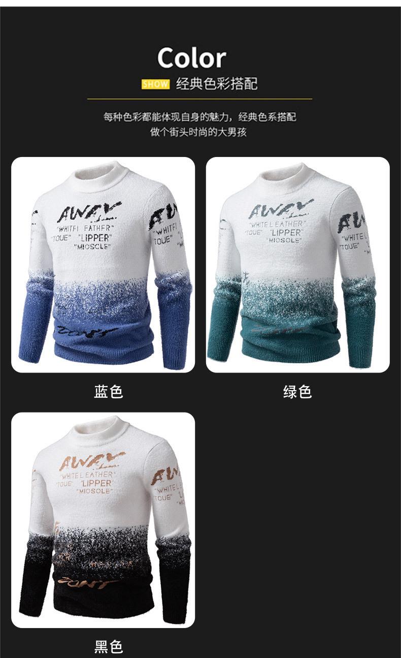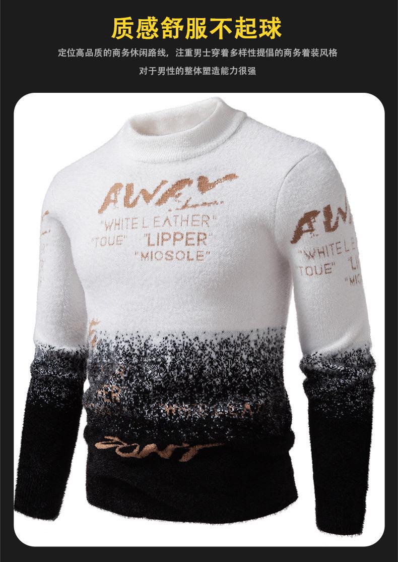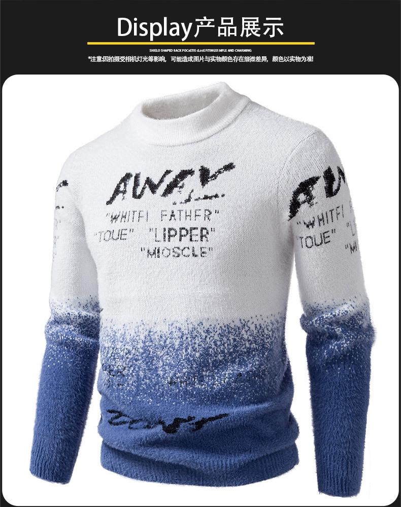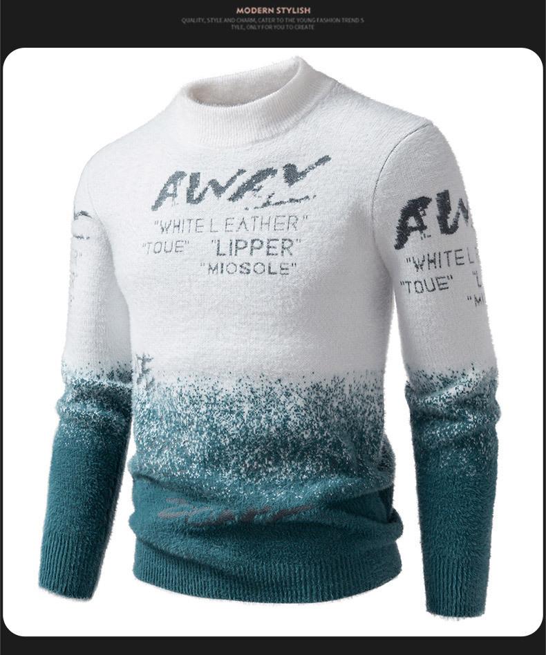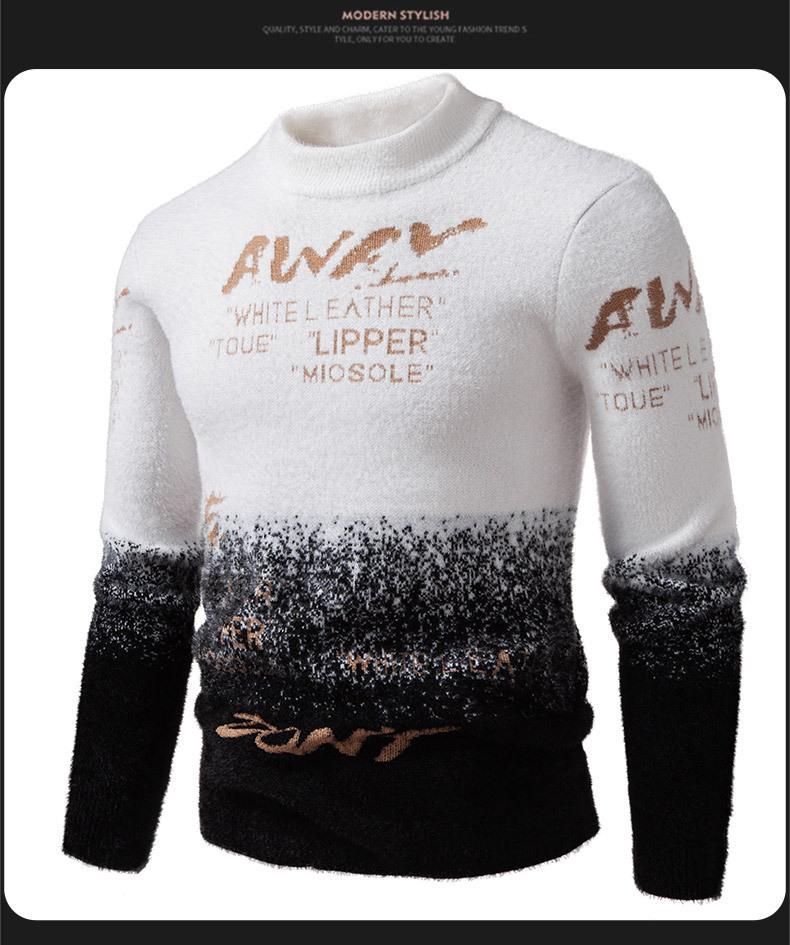 Otoño/Invierno 2025 Nuevo Suéter de Hombre Degradado Suelto Moderno Cálido de Visón Sintético Tejido Base Cuello Medio Alto