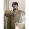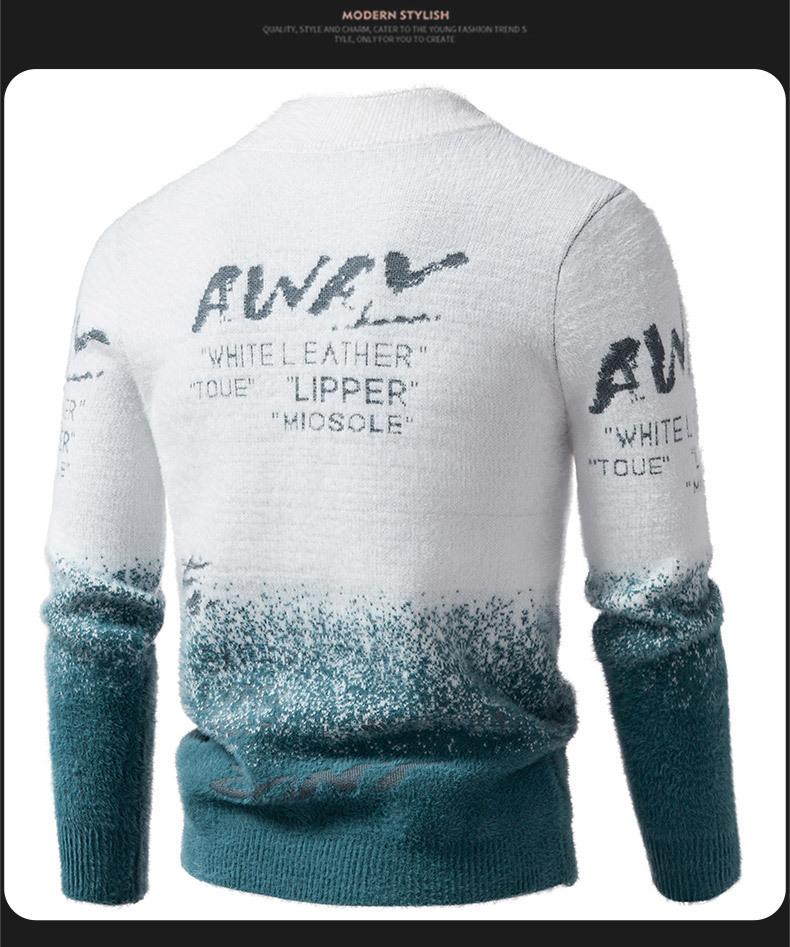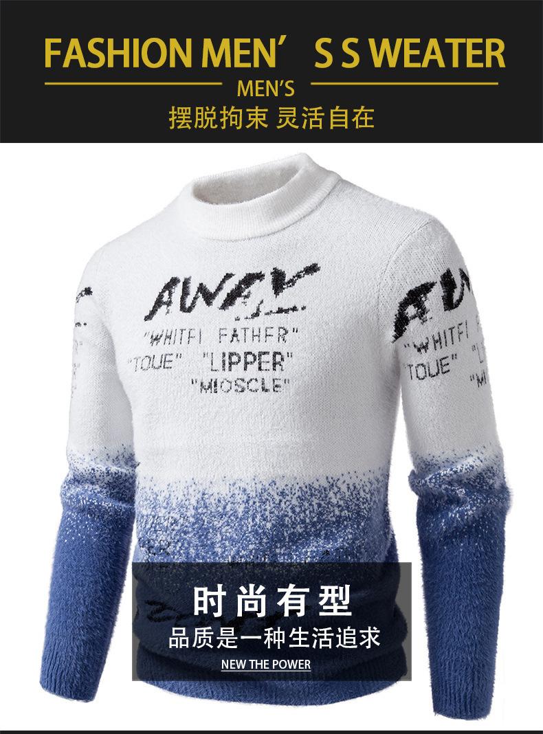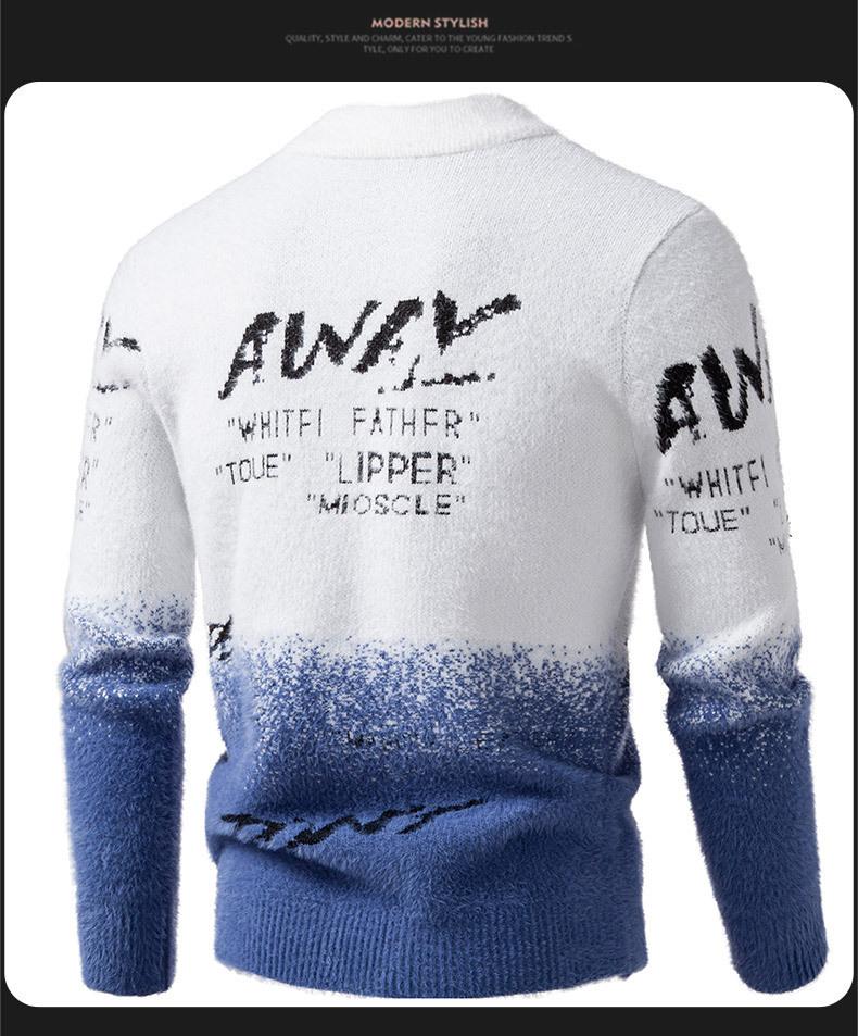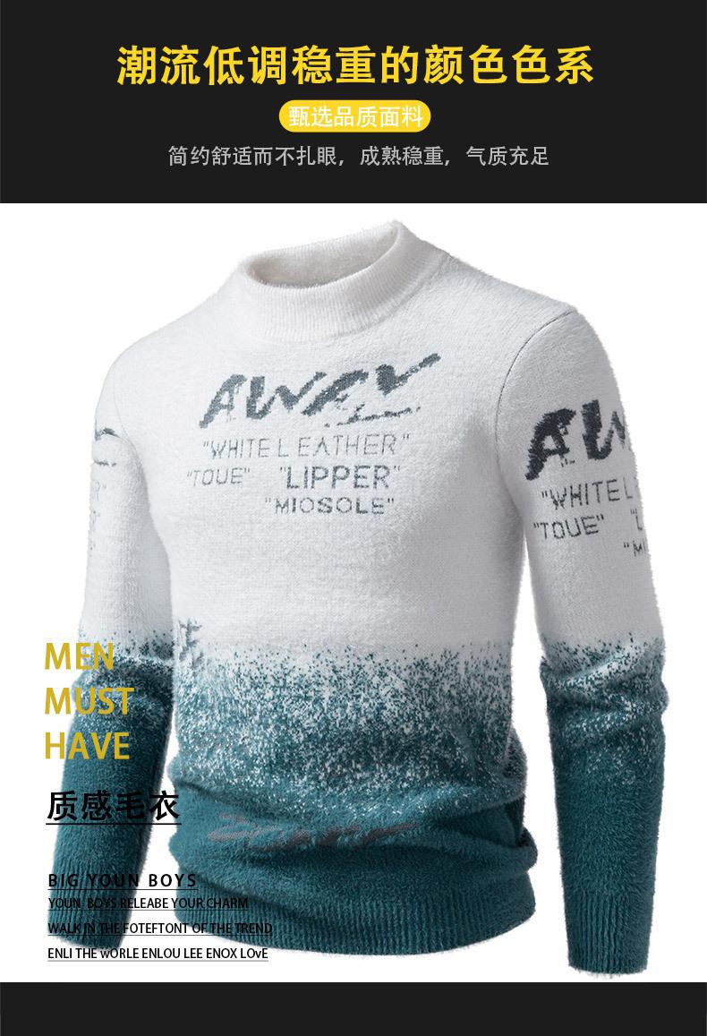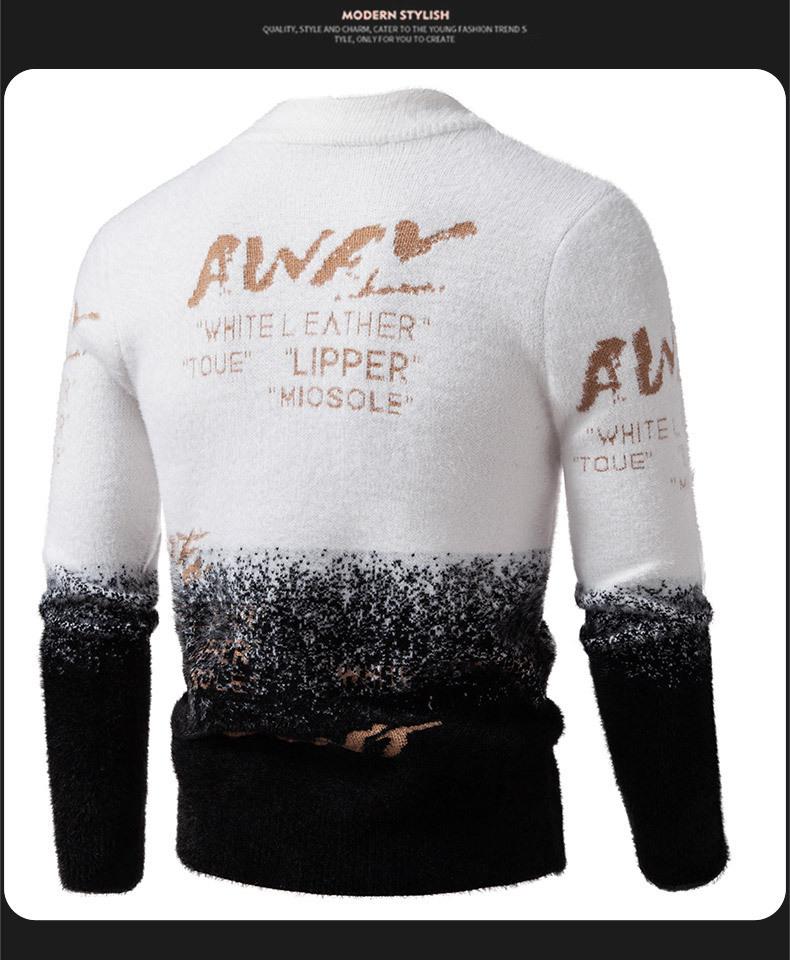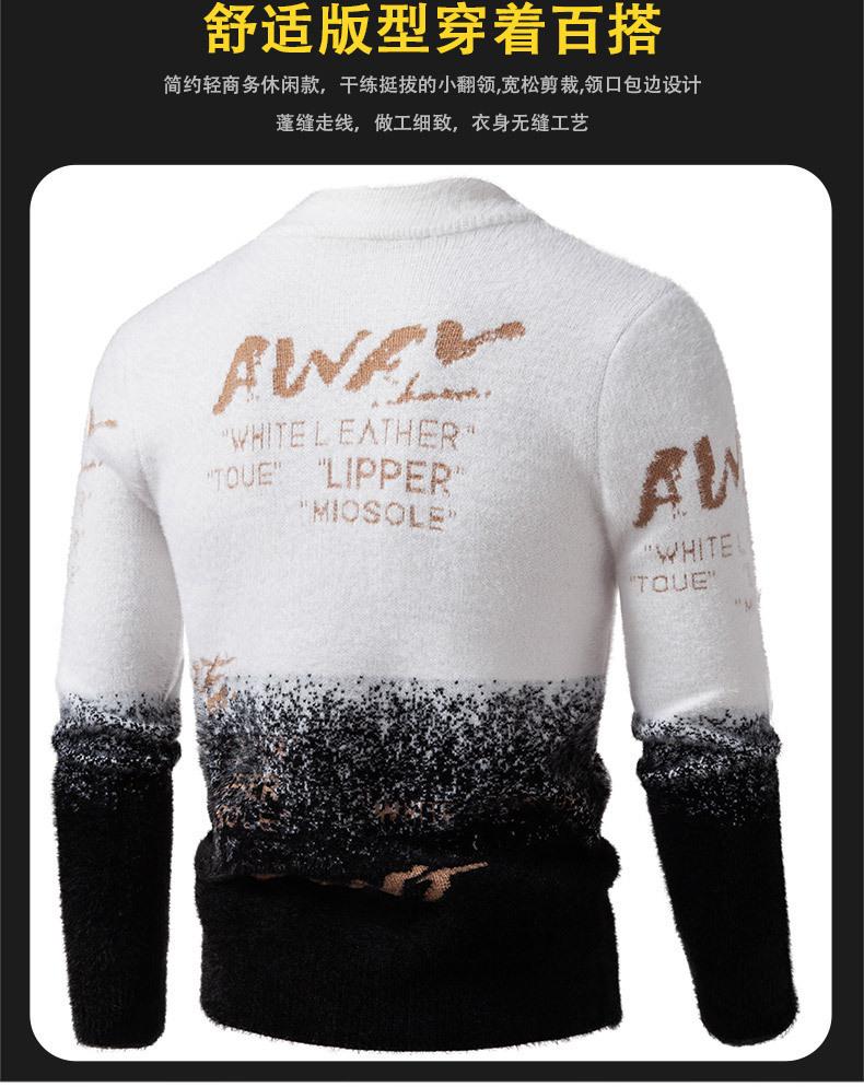 Otoño/Invierno 2025 Nuevo Suéter de Hombre Degradado Suelto Moderno Cálido de Visón Sintético Tejido Base Cuello Medio Alto