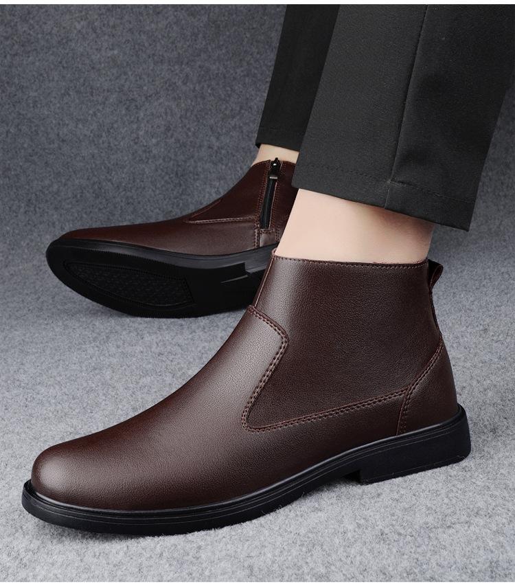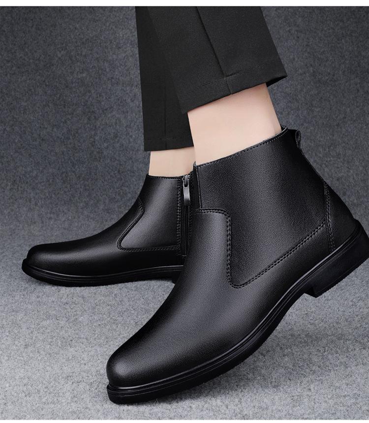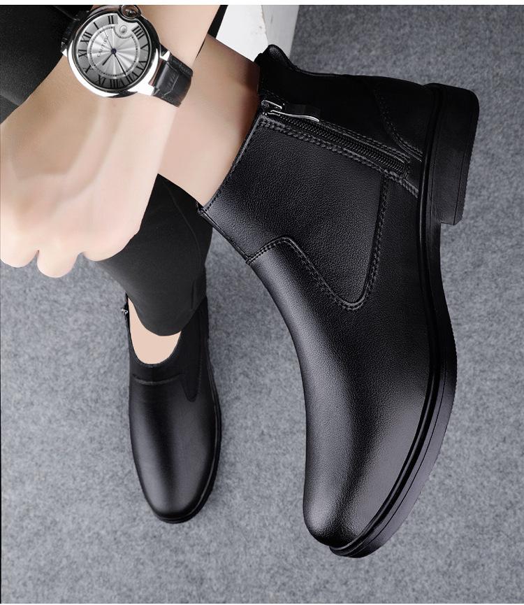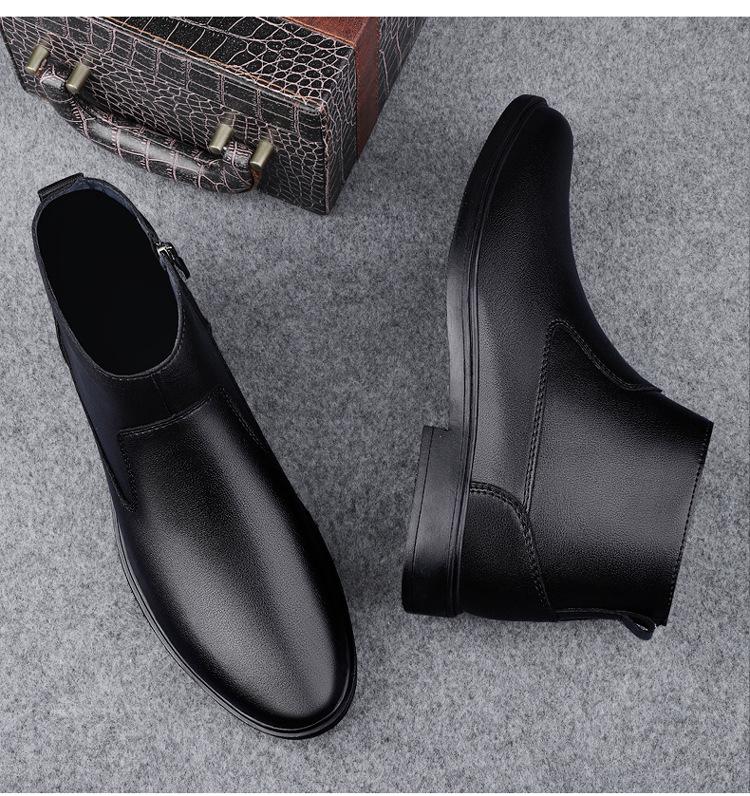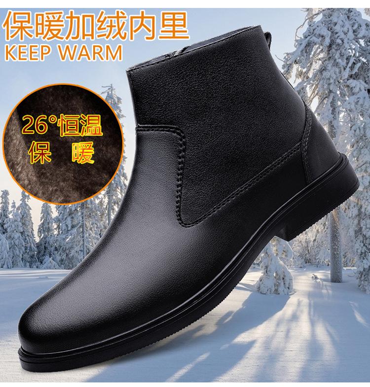 Botas Chelsea de invierno 2023 con forro polar, moda para mediana edad, para exteriores, de caña alta, para nieve, de piel de capa superior, forro de terciopelo y algodón