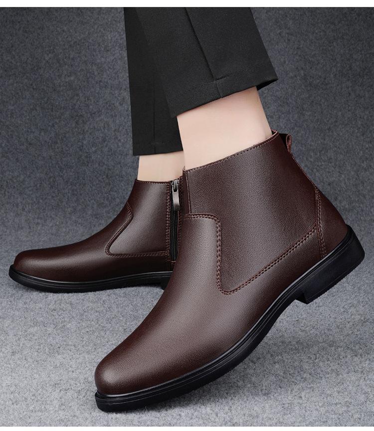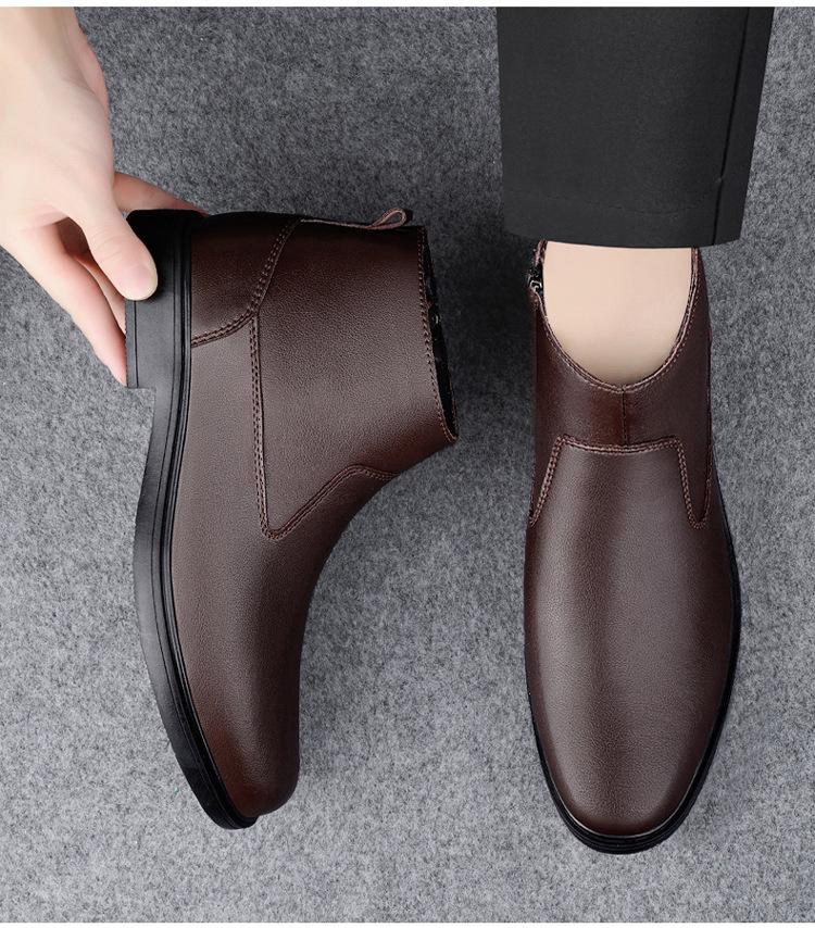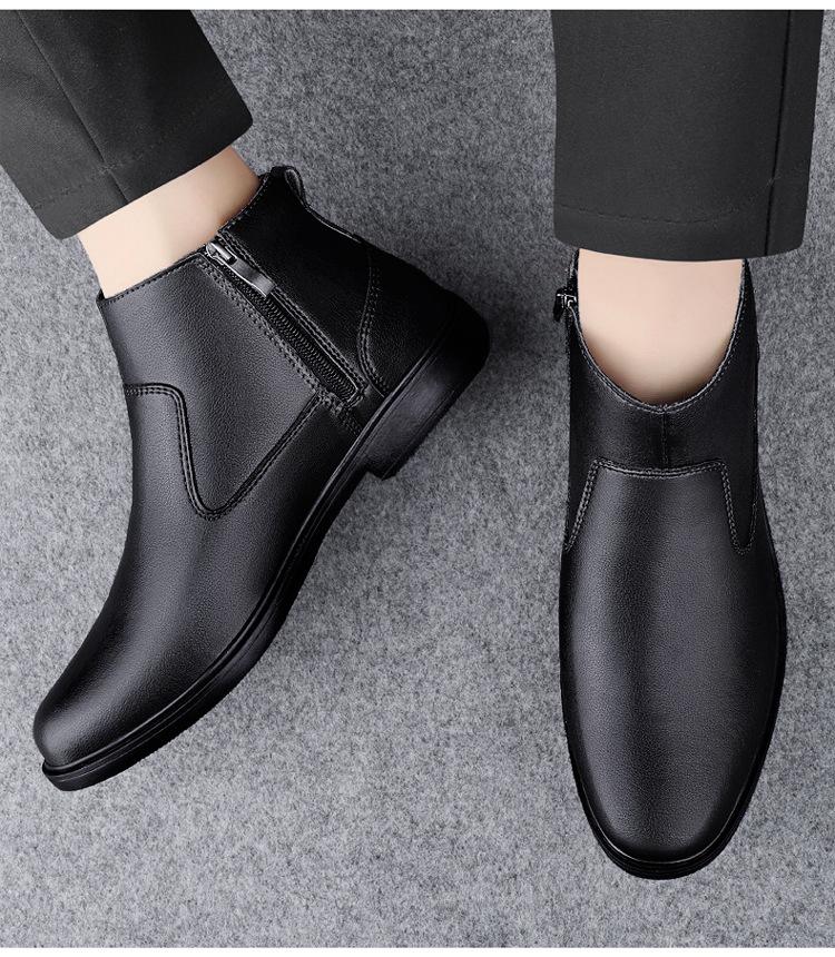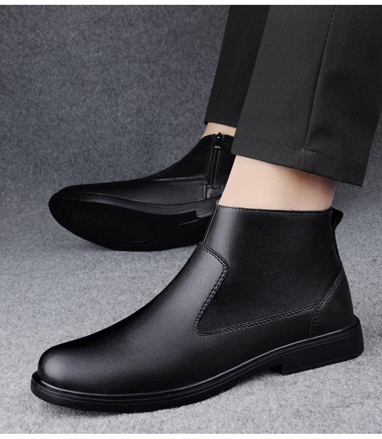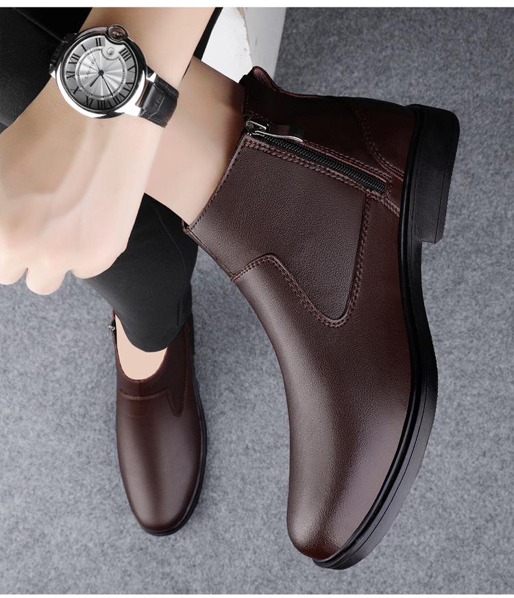 Botas Chelsea de invierno 2023 con forro polar, moda para mediana edad, para exteriores, de caña alta, para nieve, de piel de capa superior, forro de terciopelo y algodón