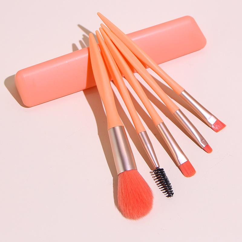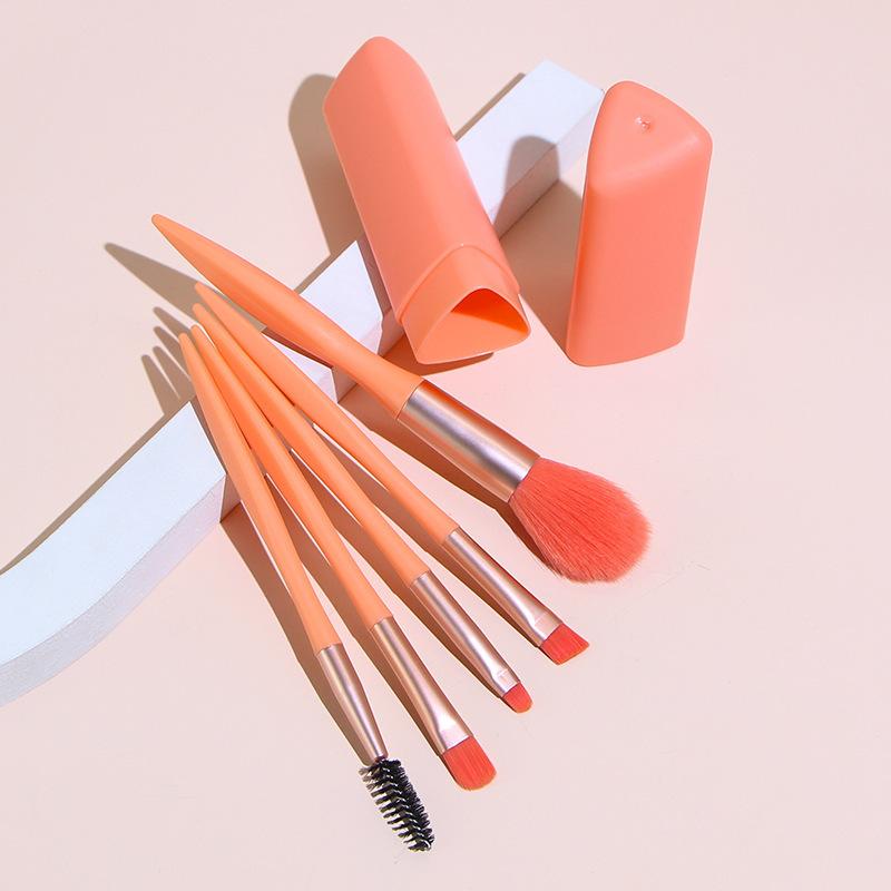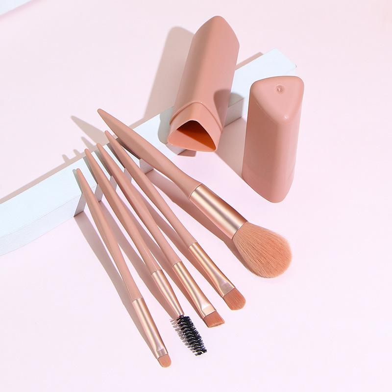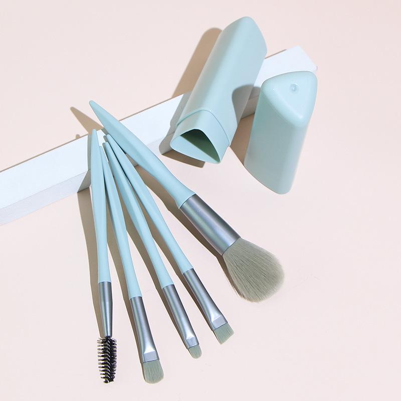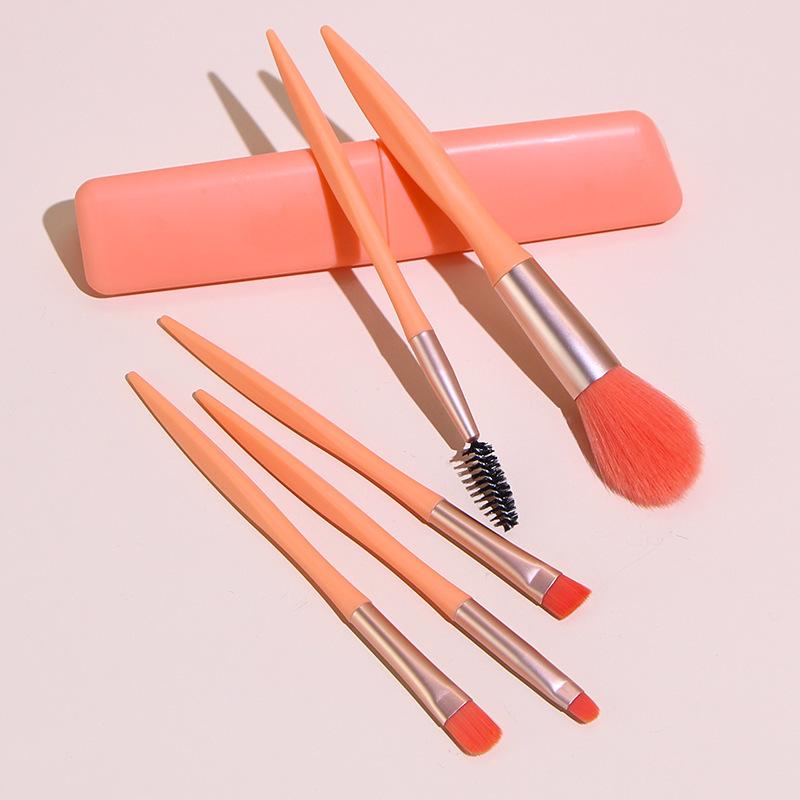 Nuevo juego de brochas de maquillaje con 5 brochas triangulares de fibra de pelo, portátiles, para polvos sueltos, sombras de ojos, juego de brochas de maquillaje, belleza profesional