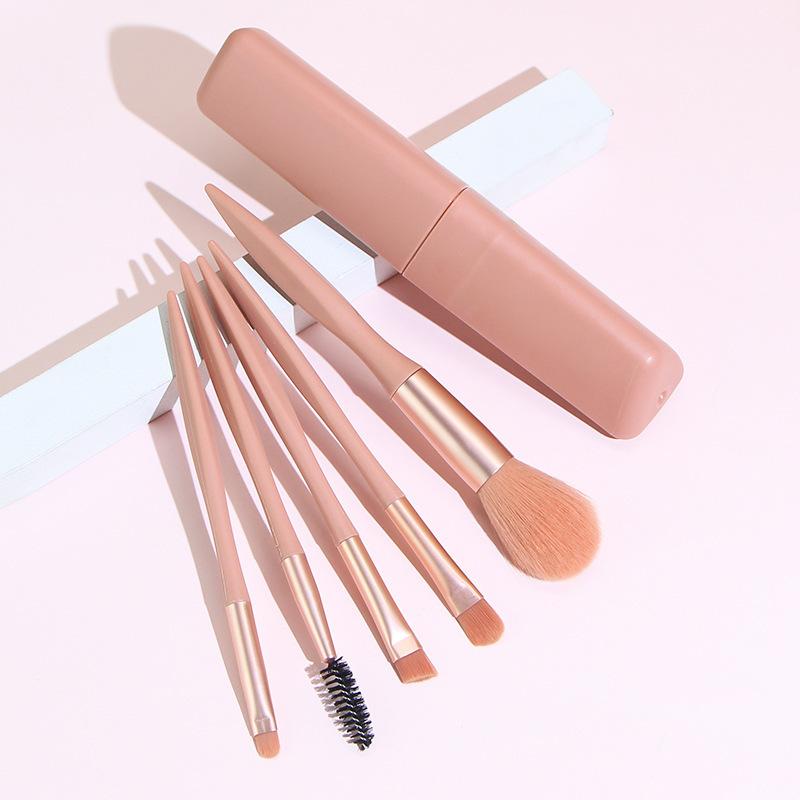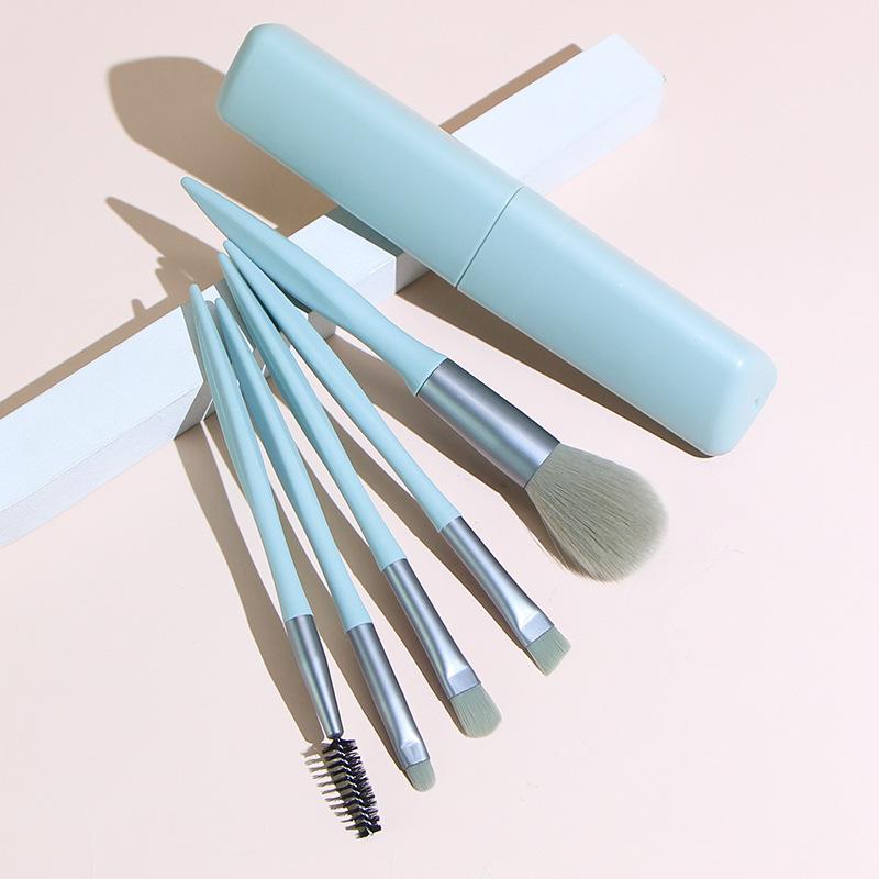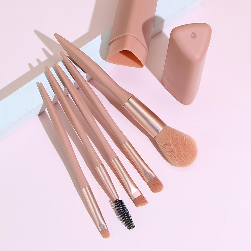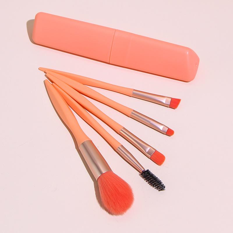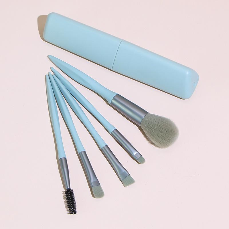 Nuevo juego de brochas de maquillaje con 5 brochas triangulares de fibra de pelo, portátiles, para polvos sueltos, sombras de ojos, juego de brochas de maquillaje, belleza profesional