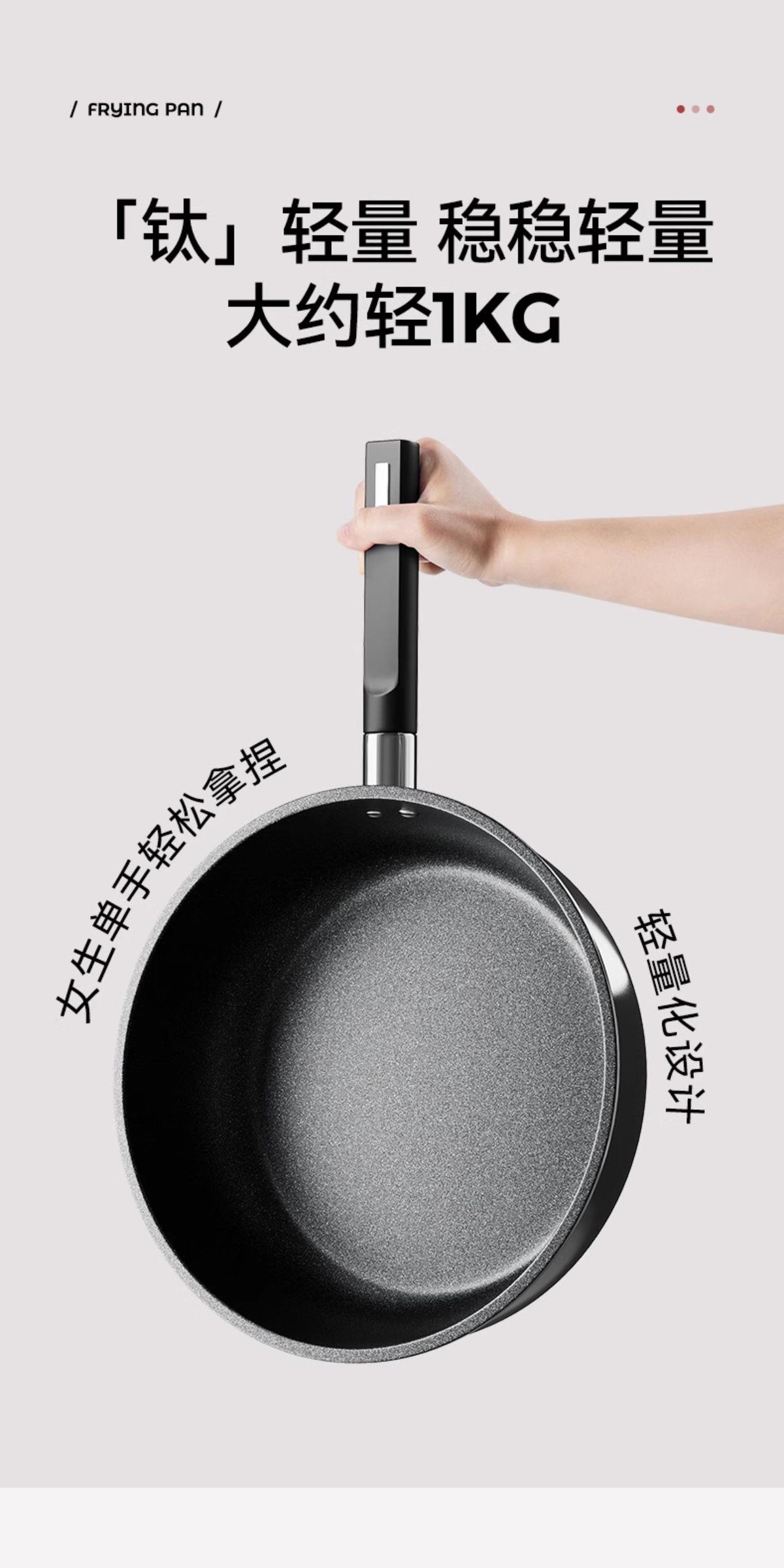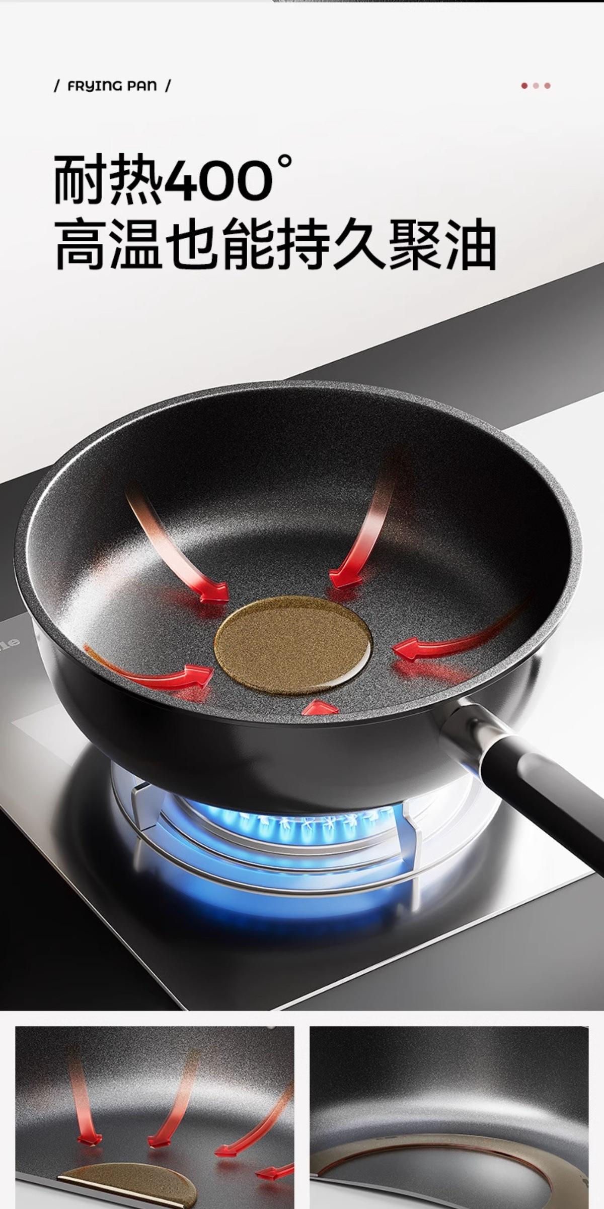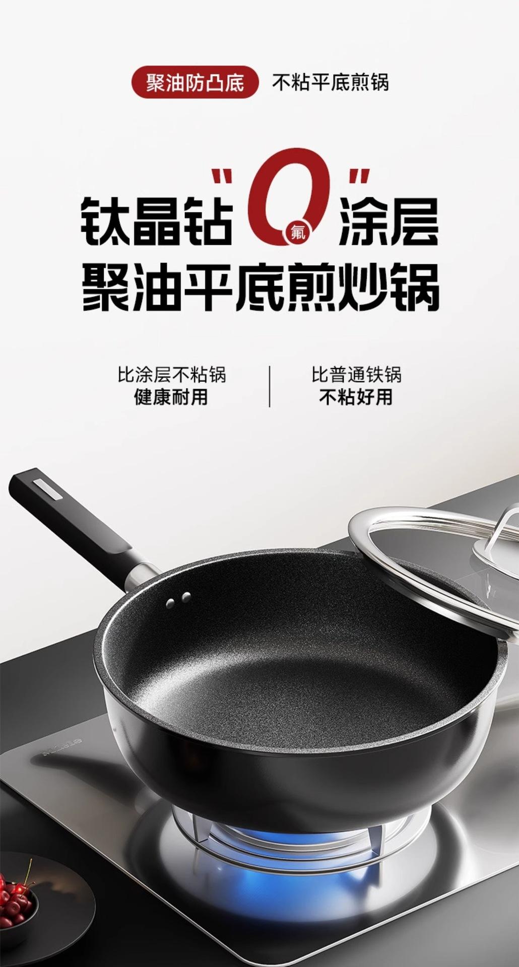 【Frying and Stir-frying Dual-use/Oil-gathering and Non-stick】24cm Titanium Ceramic Deepened Flat-bottom Wok, 【...