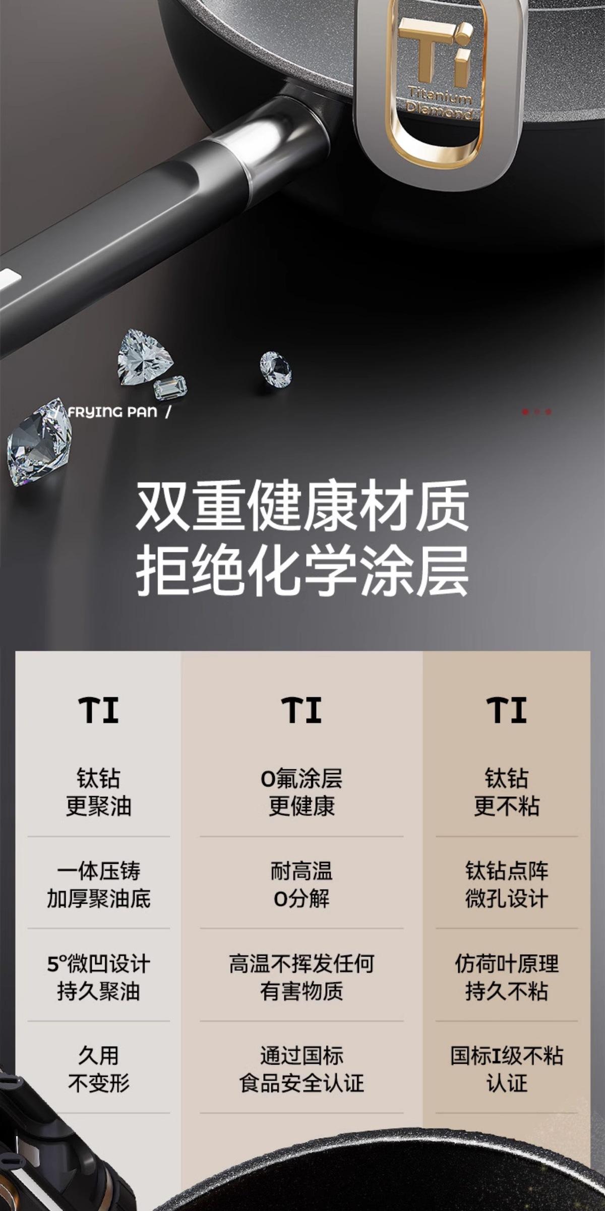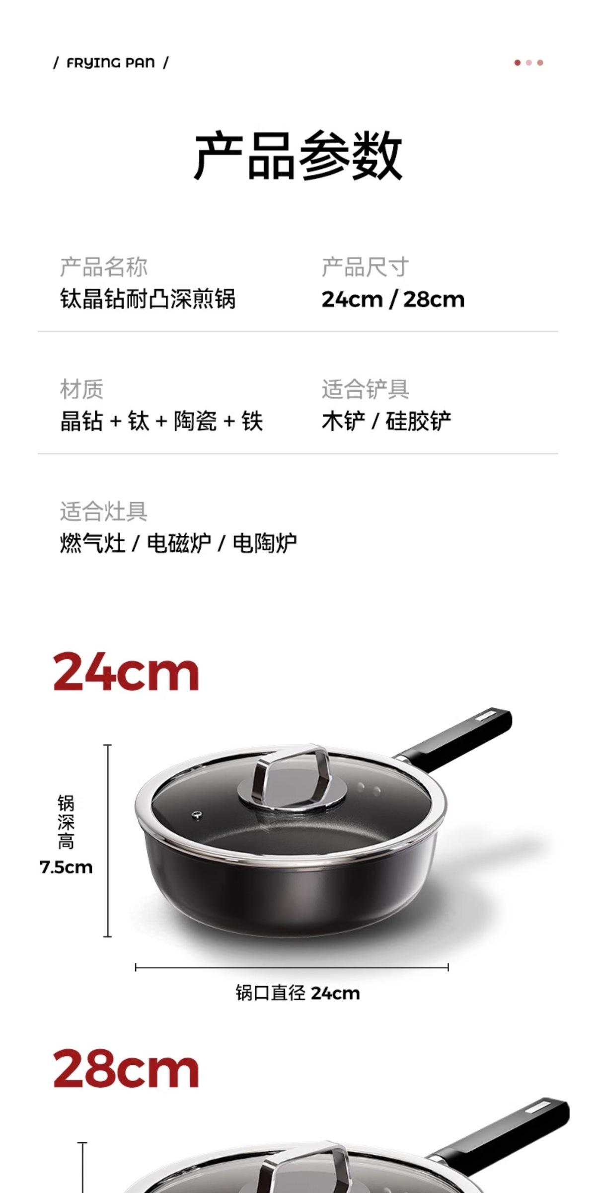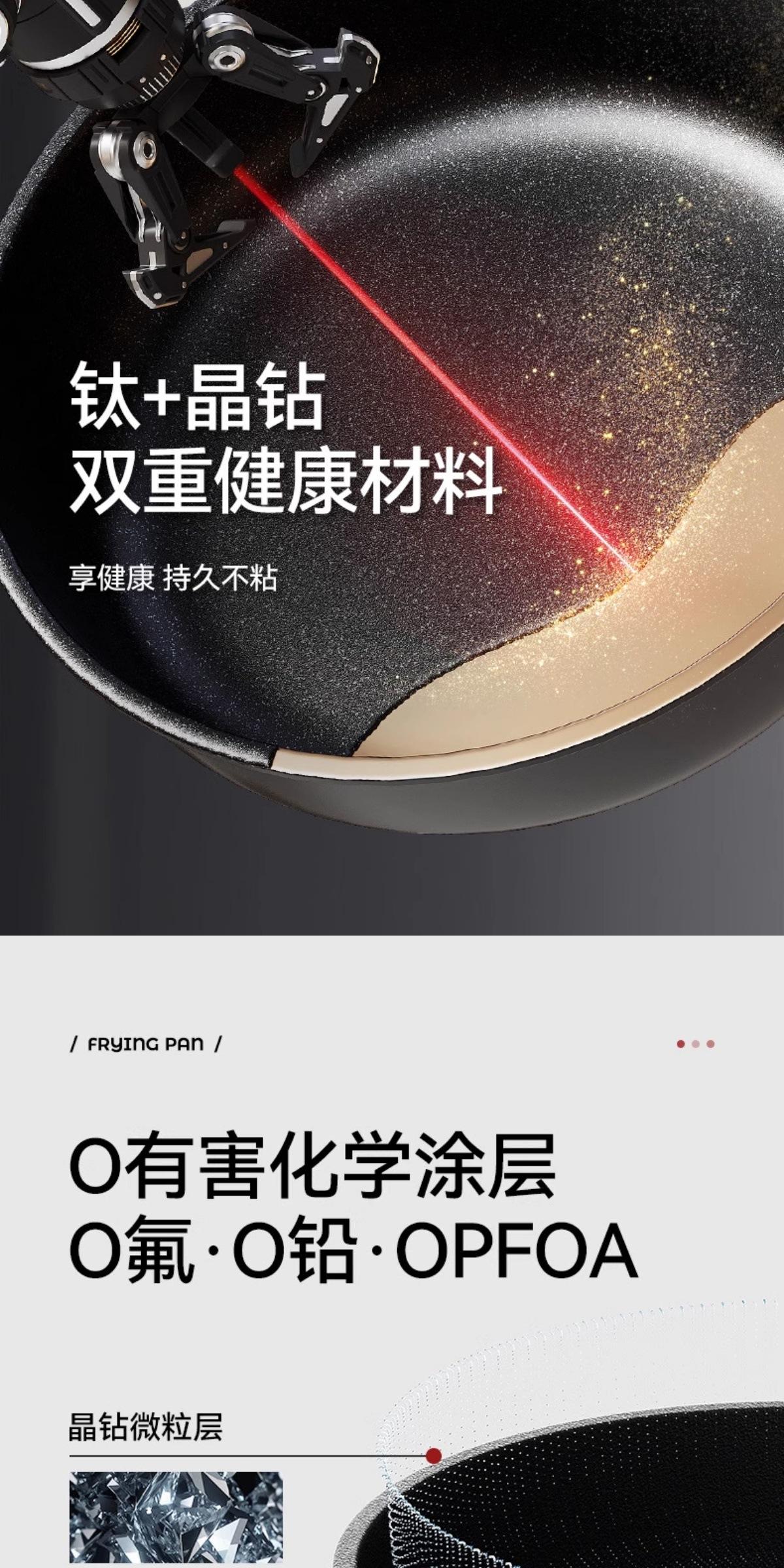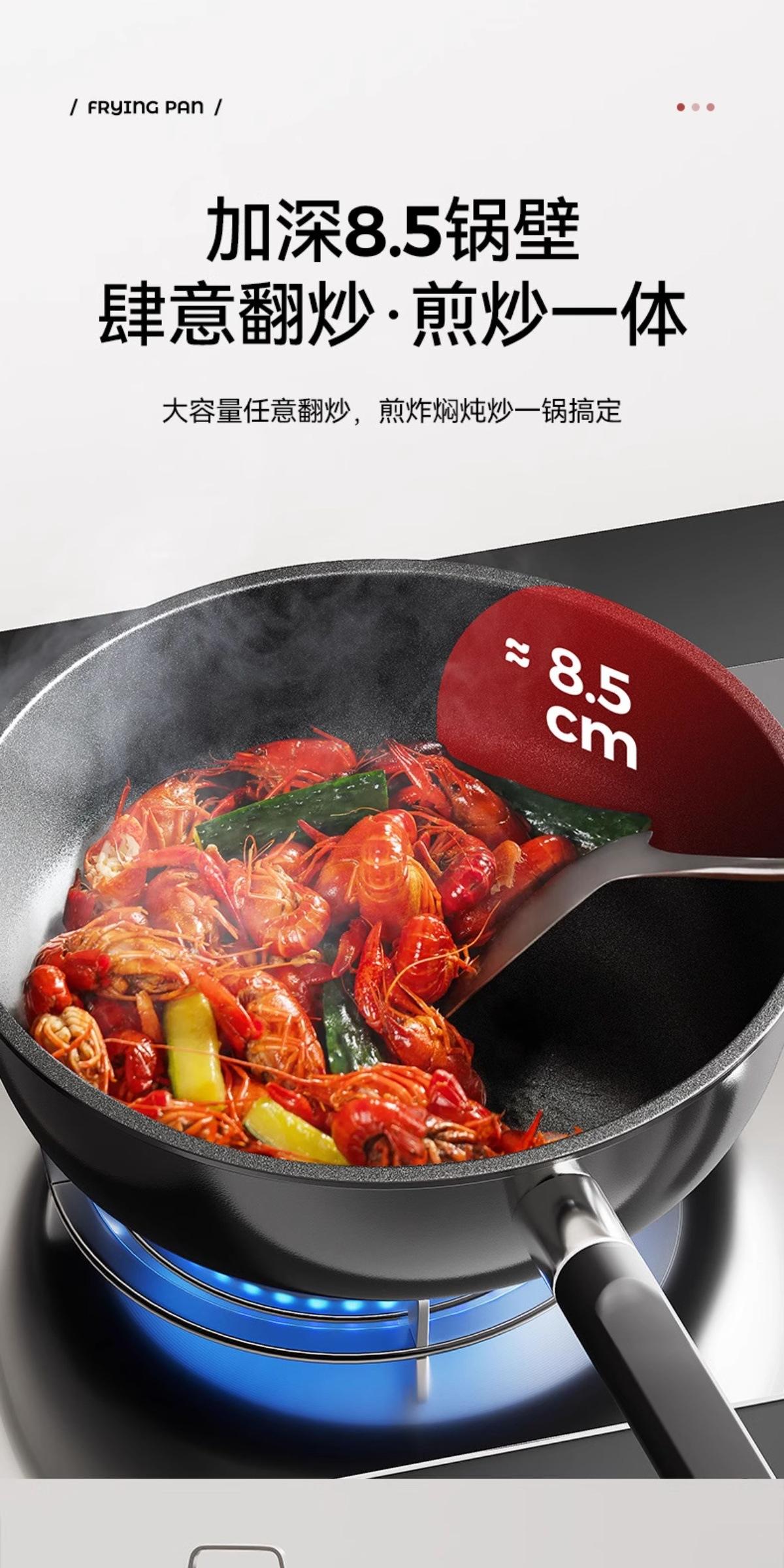 【Frying and Stir-frying Dual-use/Oil-gathering and Non-stick】24cm Titanium Ceramic Deepened Flat-bottom Wok, 【...