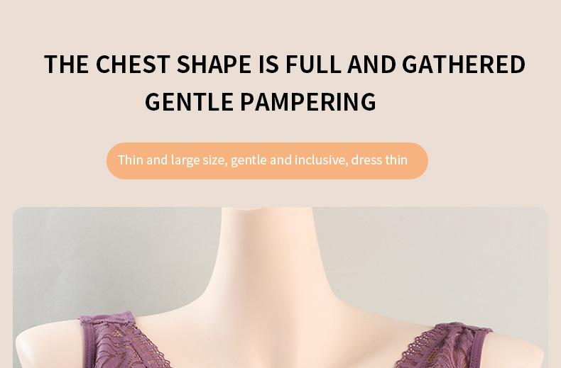 Ropa Interior Europea y Americana Transfronteriza para Mujer con Pecho Grande Minimizador Recolector Talla Grande Encaje Lencería Fina Sin Varilla Verano