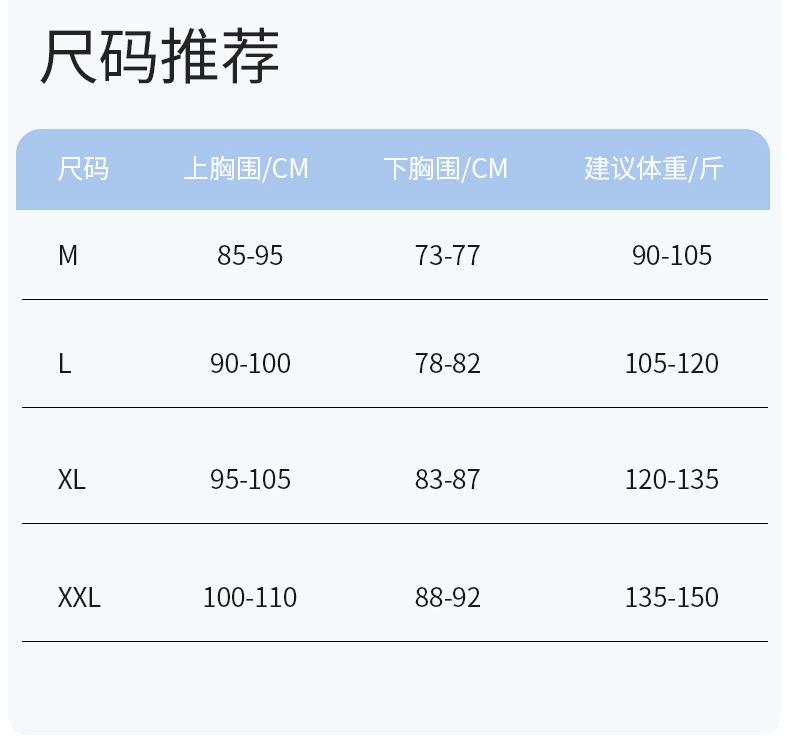 M code = 34/75ABC, L code = 36/80ABC, XL = 38/85ABC, 2XL = 40/90ABC