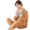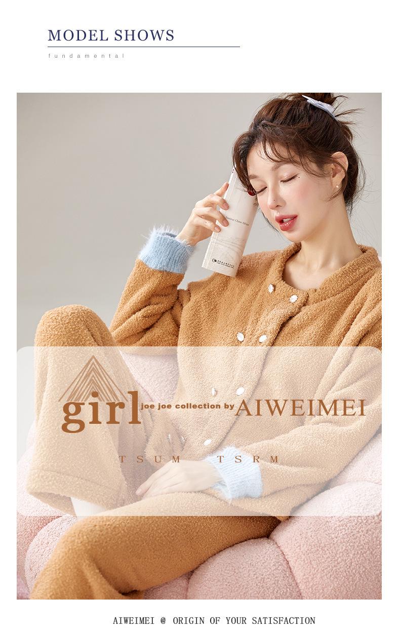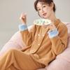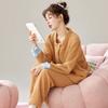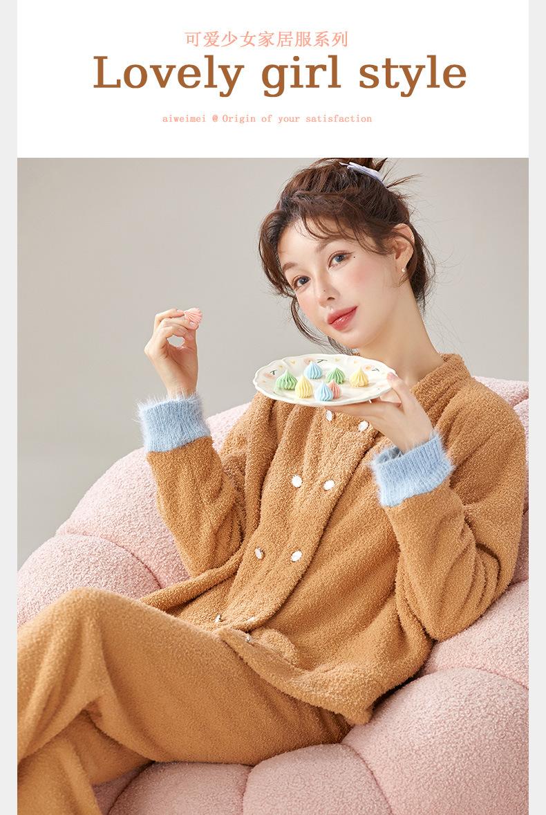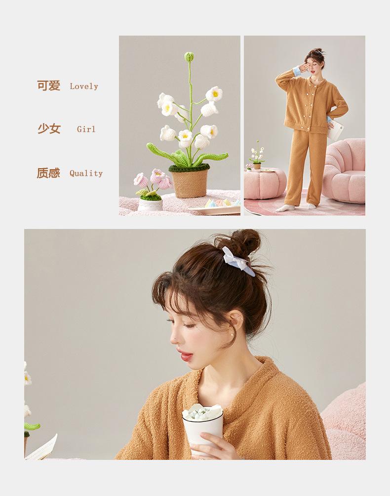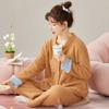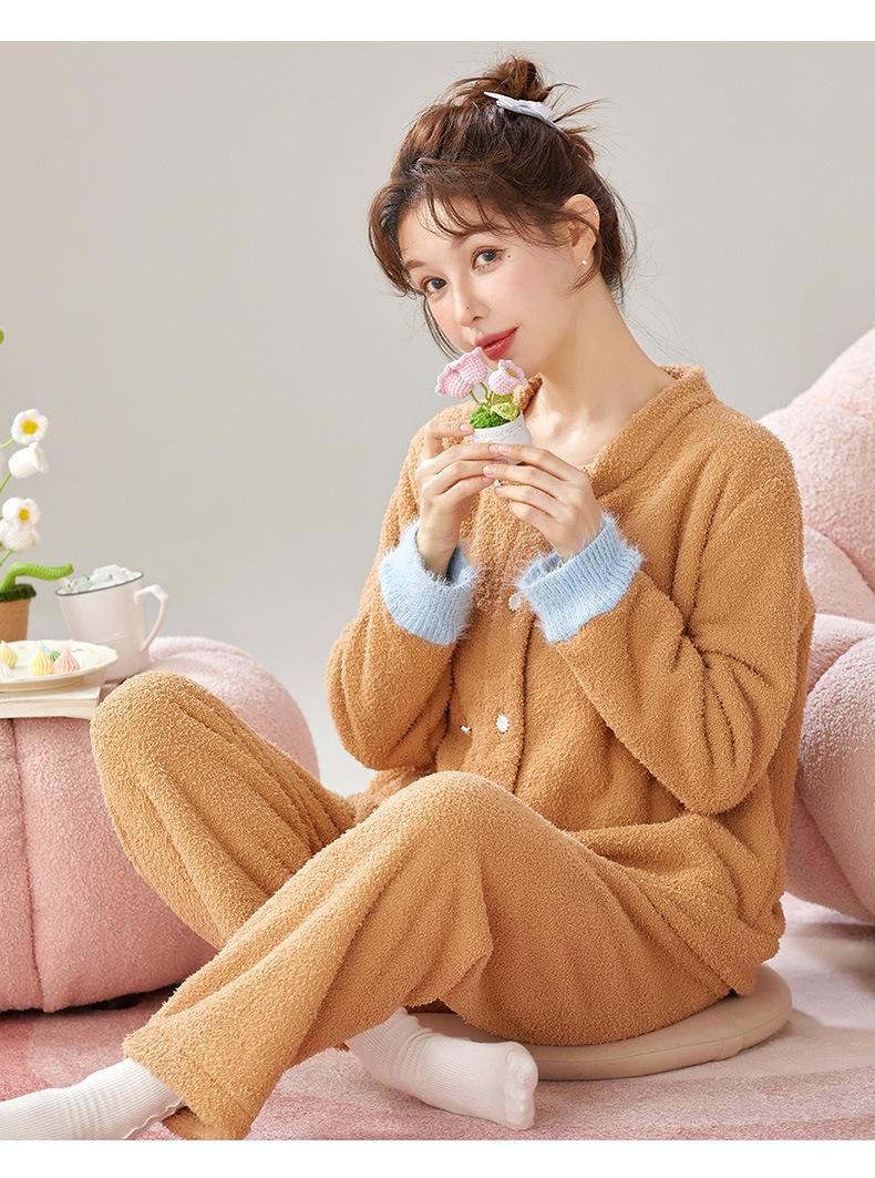 Pijama de Terciopelo Medio para Mujer Otoño e Invierno Doble Botonadura Forrado de Felpa Camello Grueso Terciopelo Coral Cálido Traje de Ropa para el Hogar