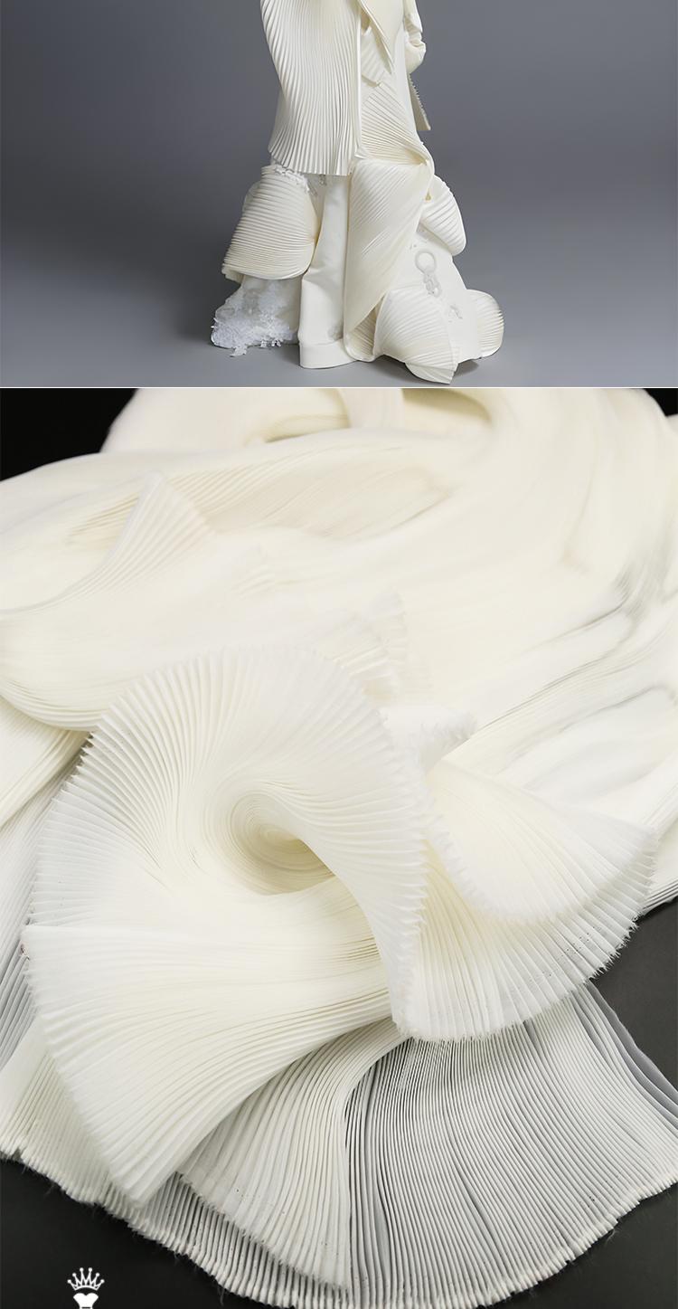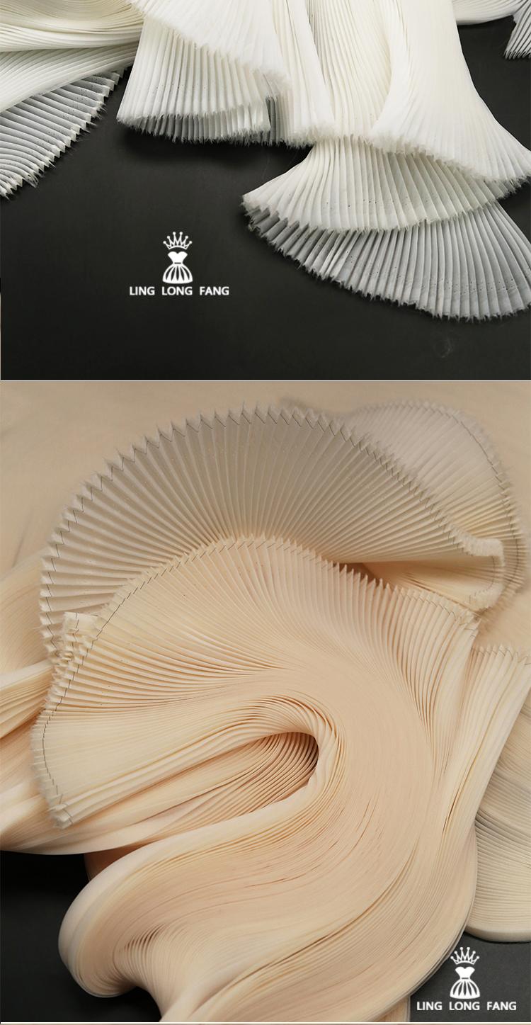 Organza Plisada Blanca Organza Pequeña Arruga Tela Forma Ancha Dura Decorativa Escenario Hecho a Mano Vestido Tela de Diseñador
