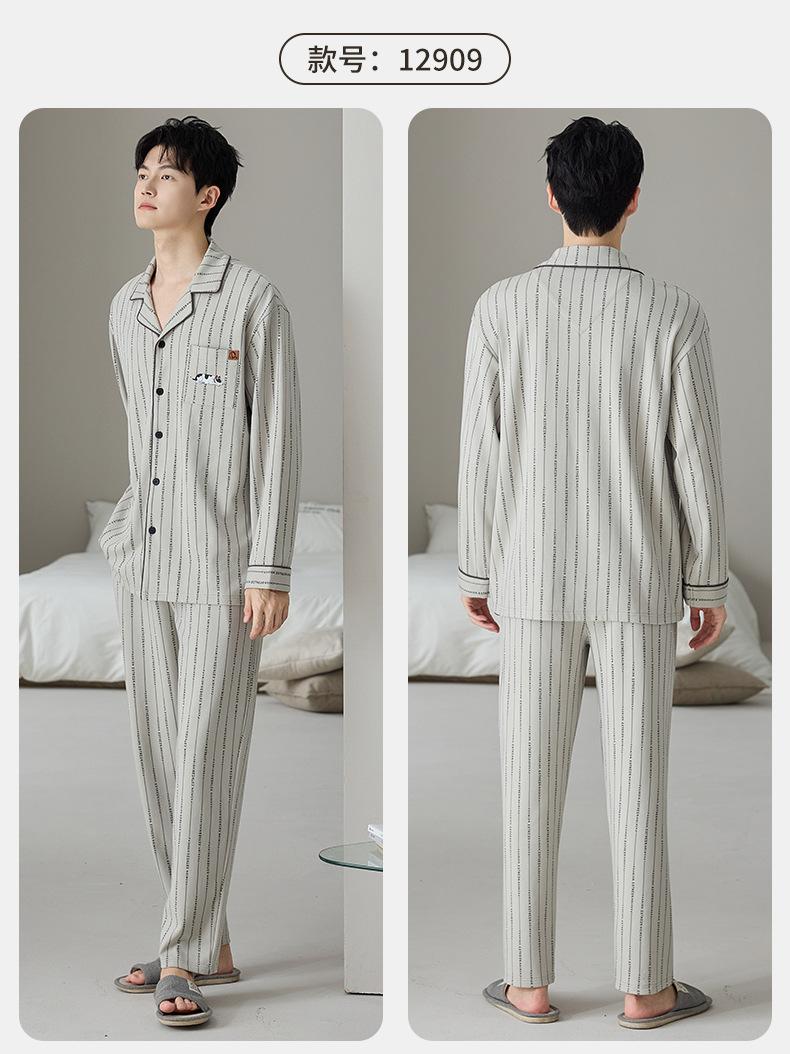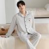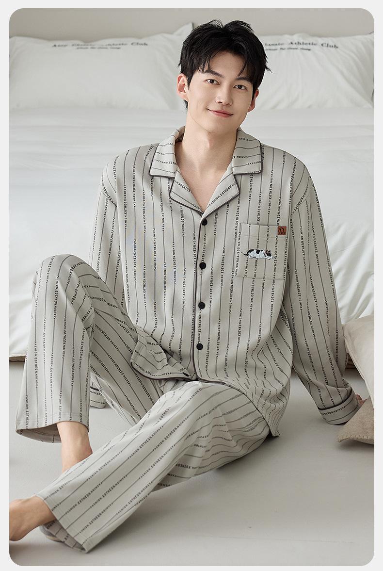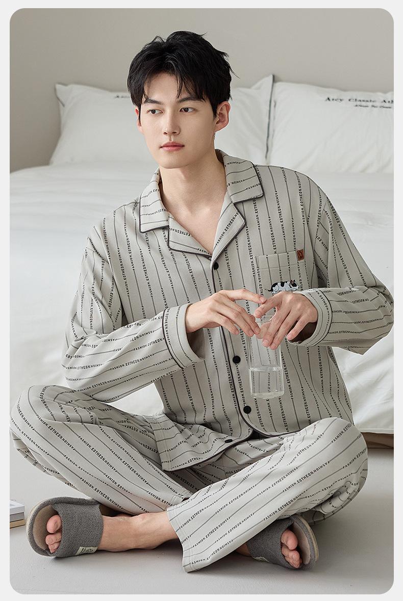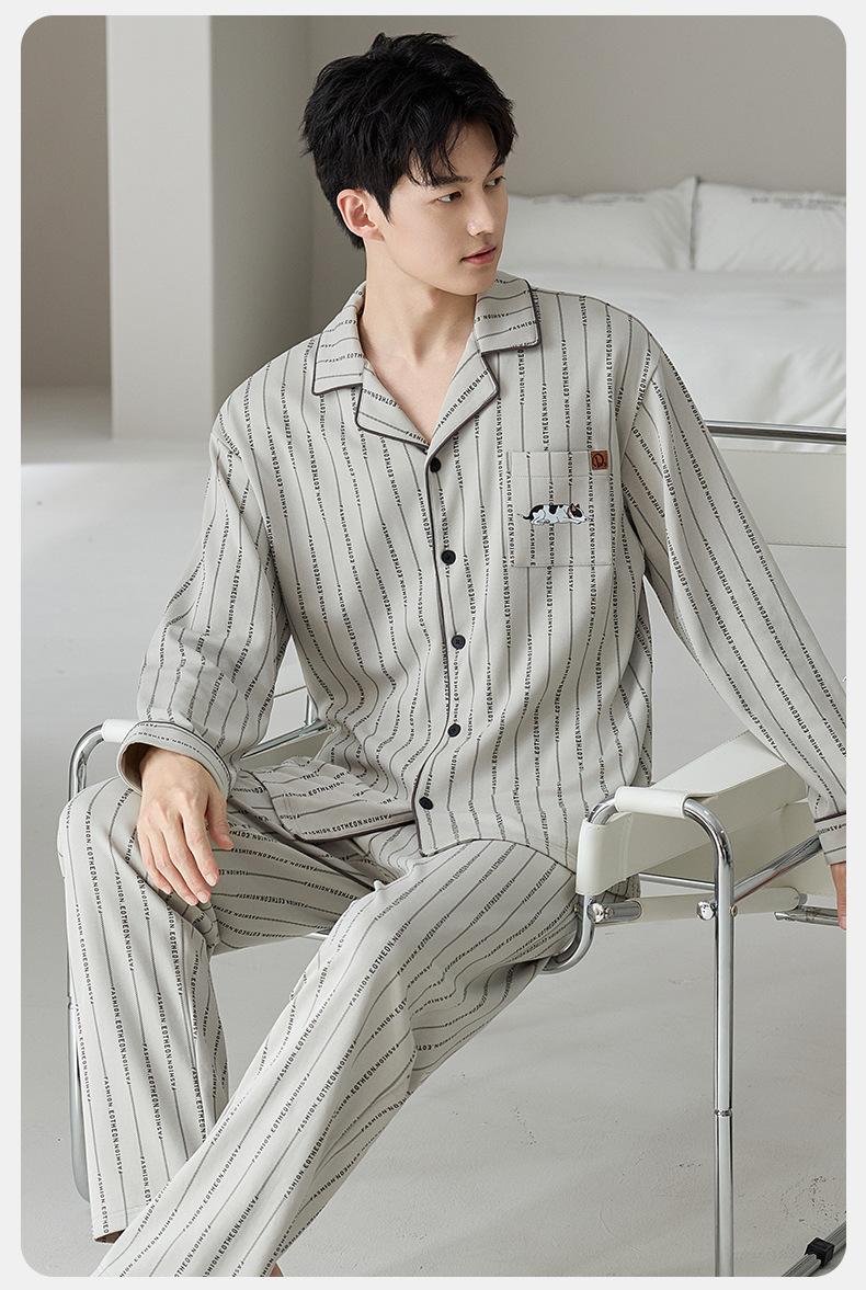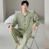 Pijama de Algodón Puro para Hombre Primavera Otoño Rayado Cuadros Talla Grande Se Puede Usar para Salir Ropa de Casa Manga Larga Pantalón Largo Cárdigan Solapa Conjunto