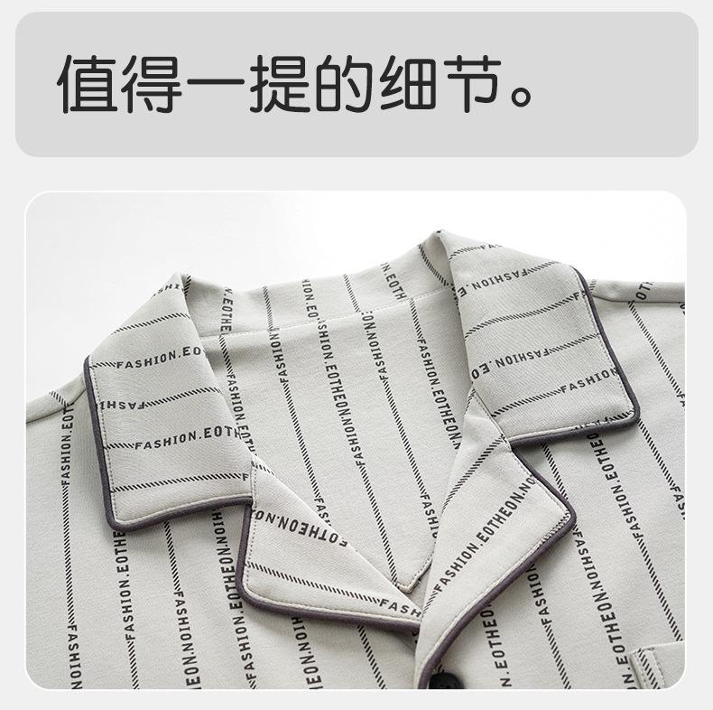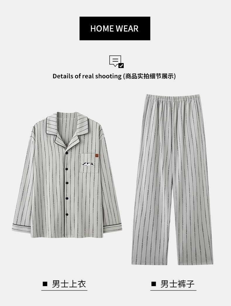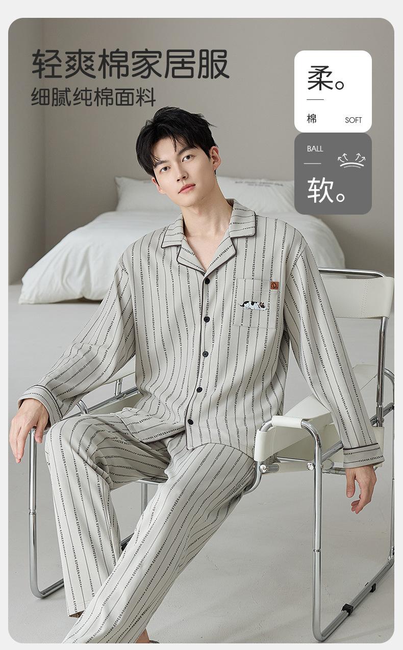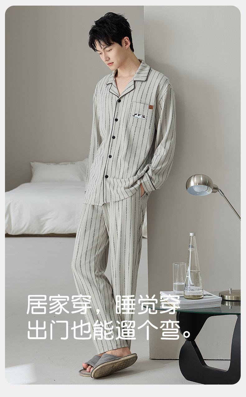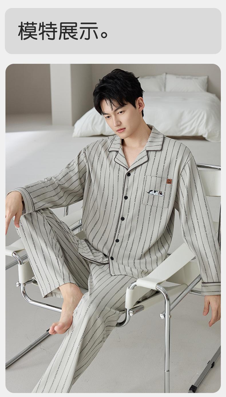 Pijama de Algodón Puro para Hombre Primavera Otoño Rayado Cuadros Talla Grande Se Puede Usar para Salir Ropa de Casa Manga Larga Pantalón Largo Cárdigan Solapa Conjunto