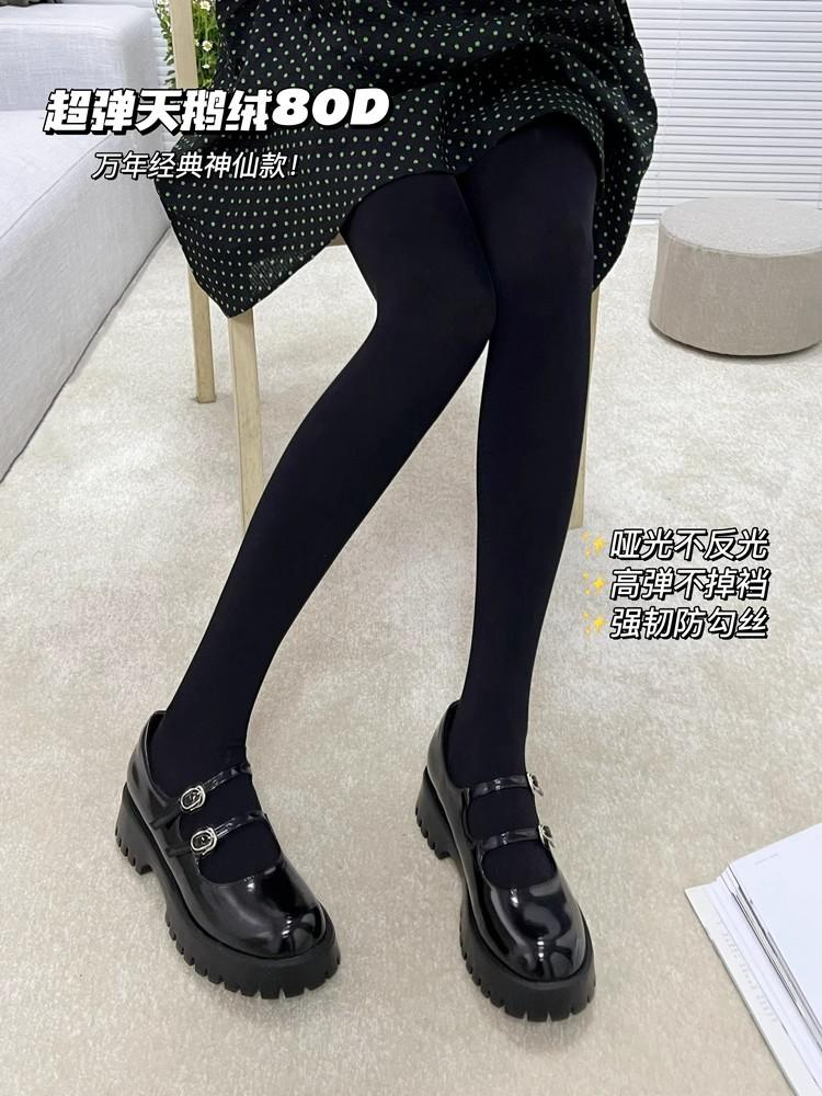 Pantis para Mujer Super Elásticas de Terciopelo 80D Mate Estilo Japonés Medias Primavera Otoño Invierno Grosor Medio Leggings Extra Largos Vellón Fino