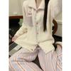 Pijama de Franela de Leopardo Coreano Lindo de Dibujos Animados para Talla Grande para Mujer Estilo Otoño e Invierno Set de Ropa para el Hogar Grueso y Cálido para Mujer a la Moda