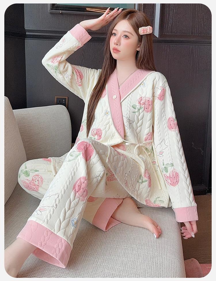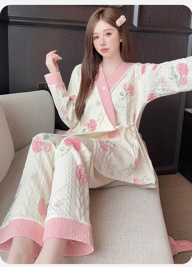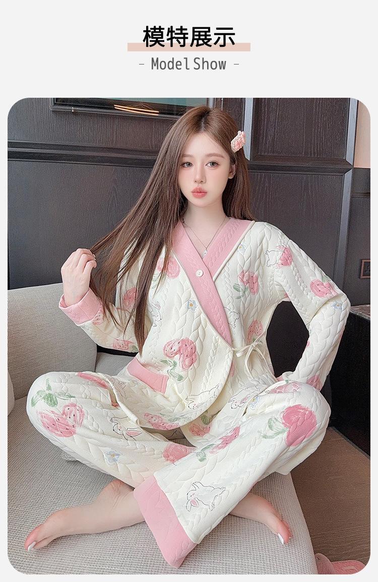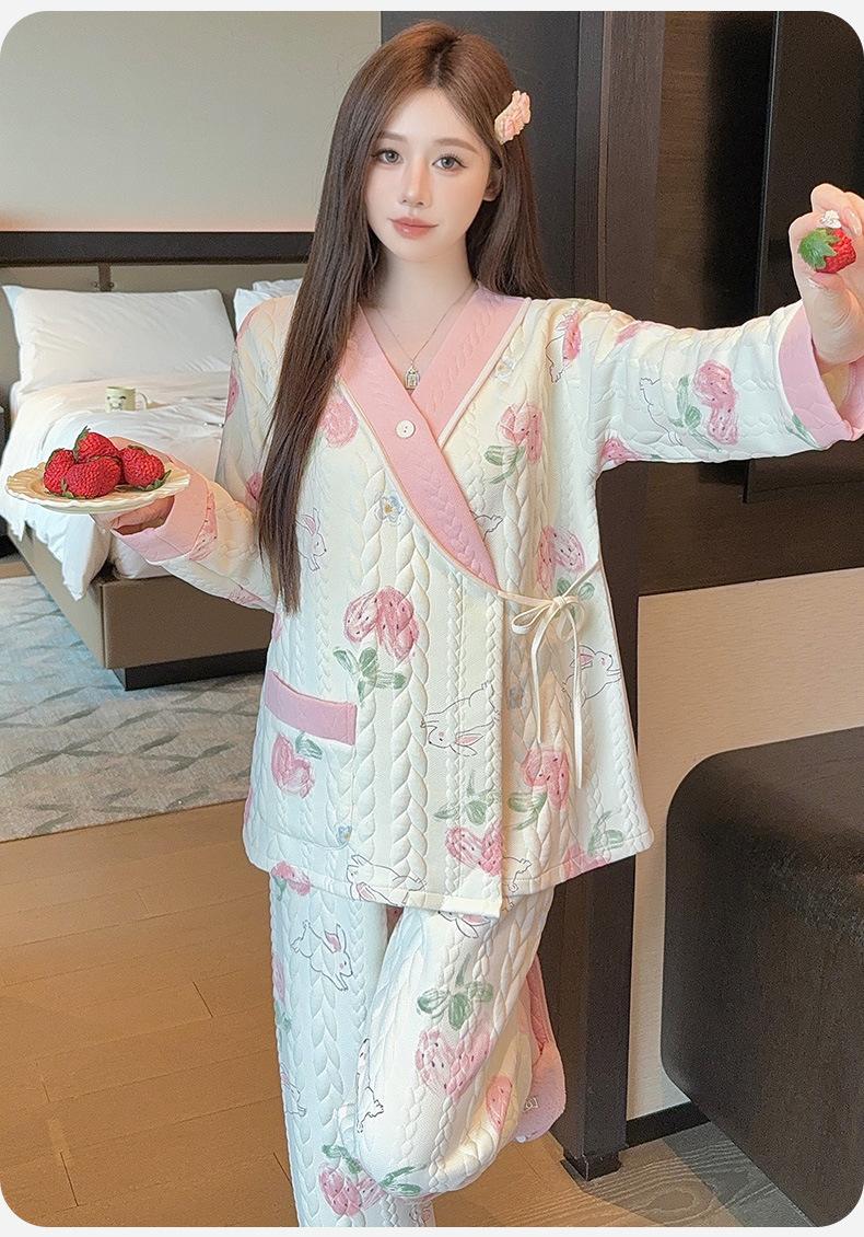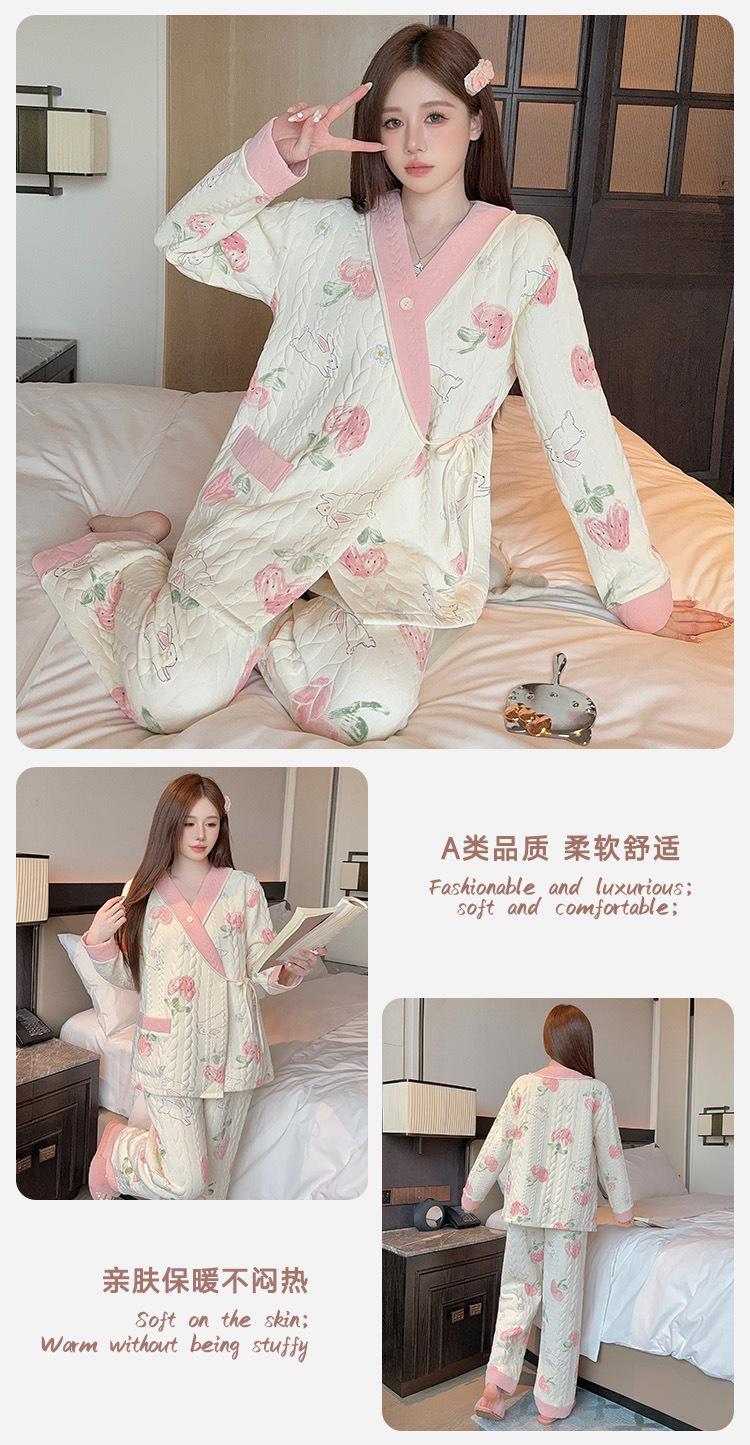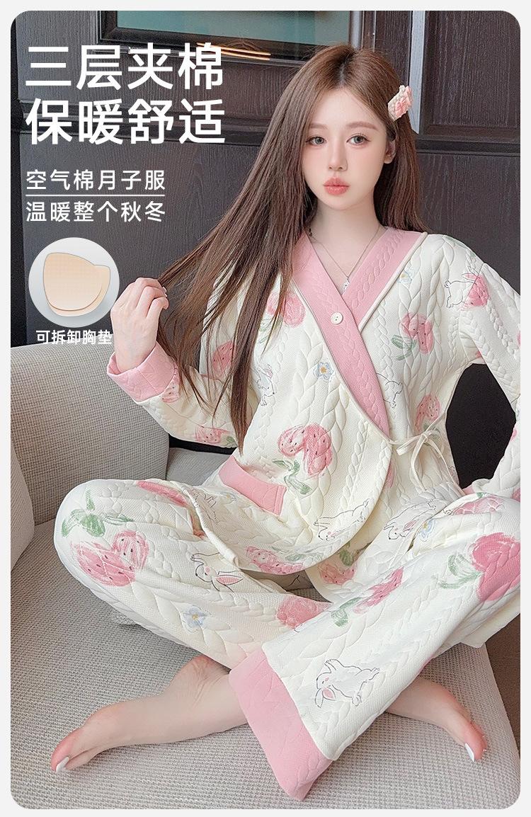 Xi Yue Invierno 7A Ropa de Maternidad Antibacterial Clase A Algodón Puro Algodón Aire con Almohadillas para el Busto Embarazo Postparto Lactancia Pijamas para Mujeres Embarazadas