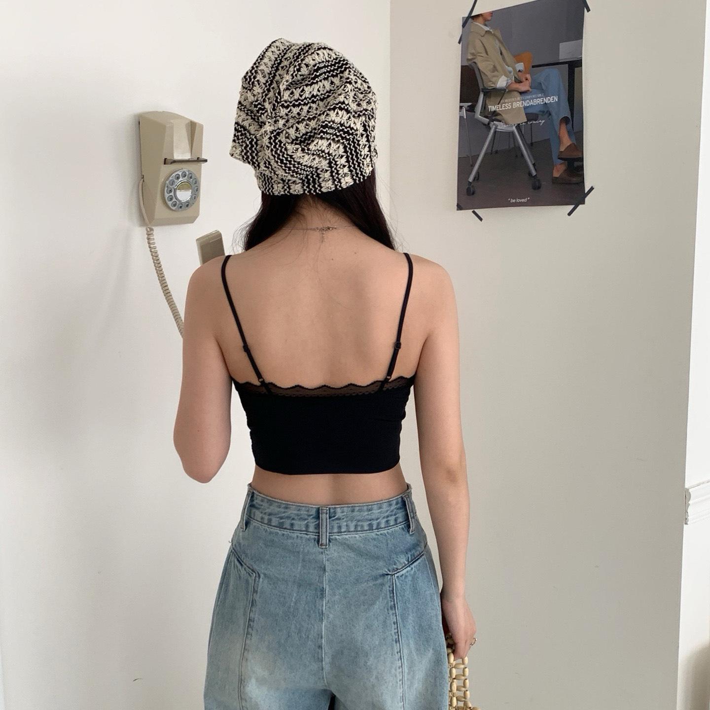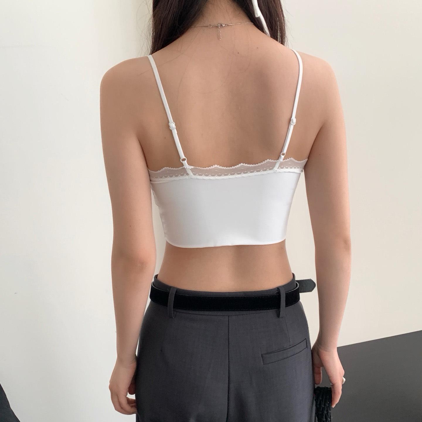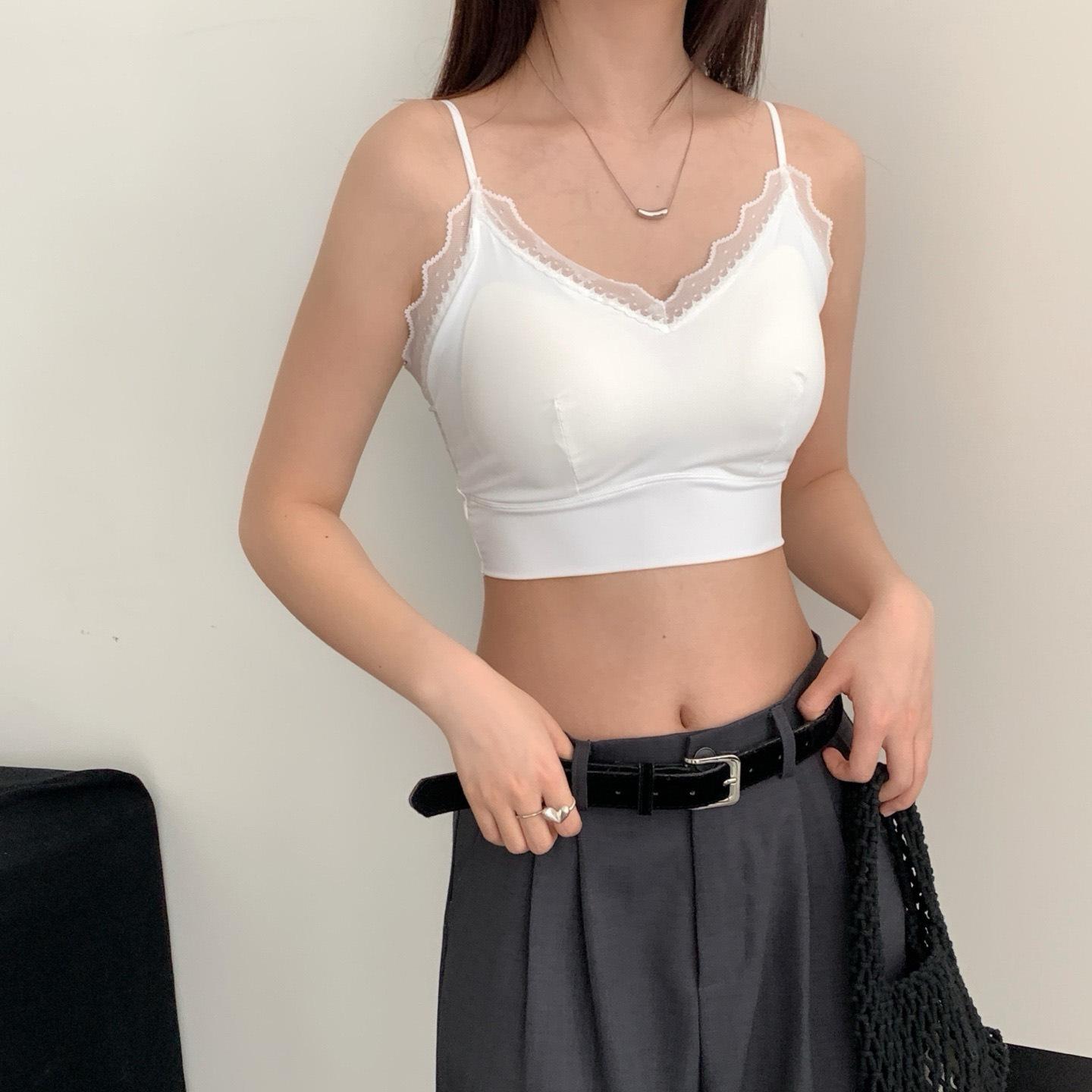 Seda de Hielo Copa Fija Encaje con Cómodo y Fresco Versátil Tirante Delgado Ajustado Envoltura de Pecho Íntimos Chaleco 8275
