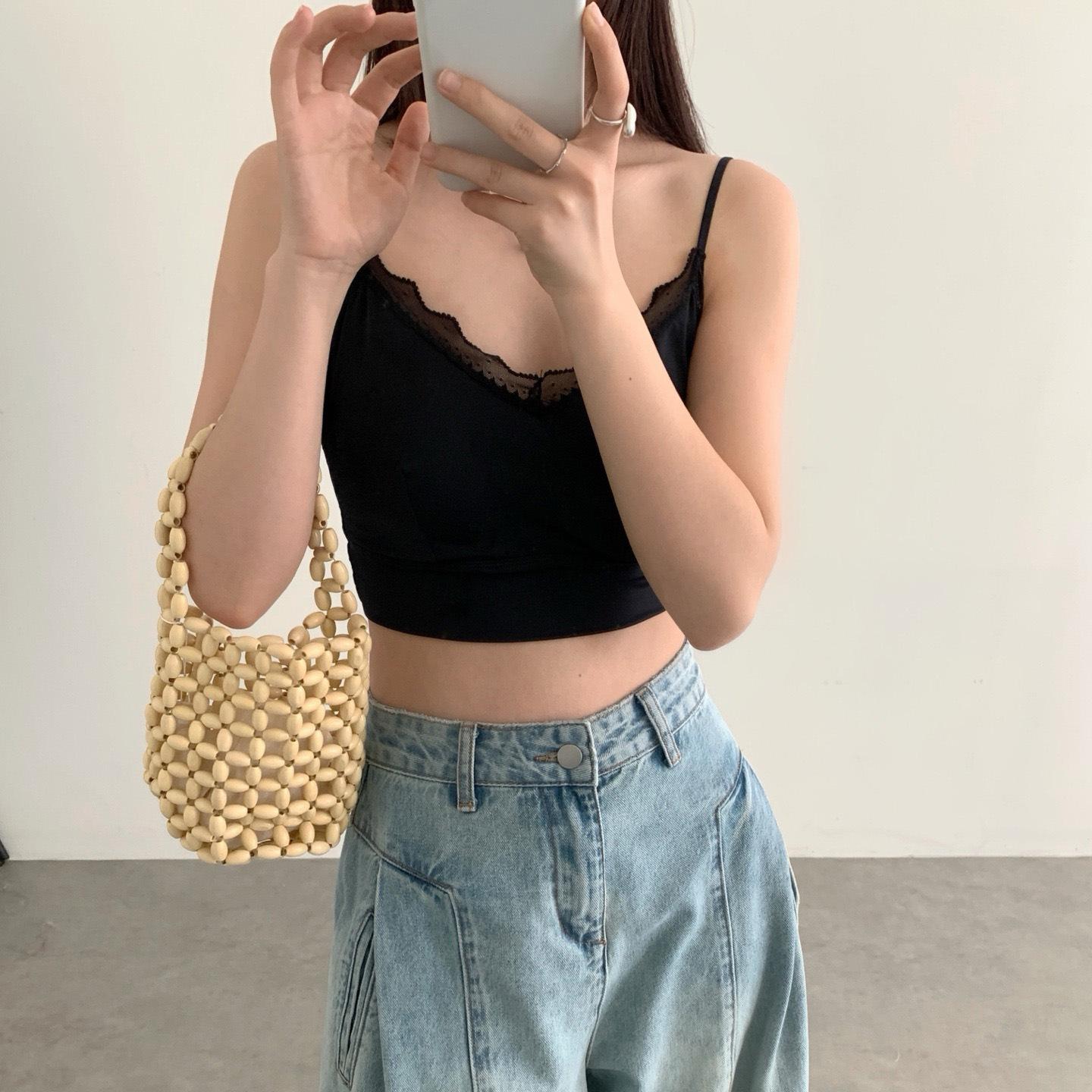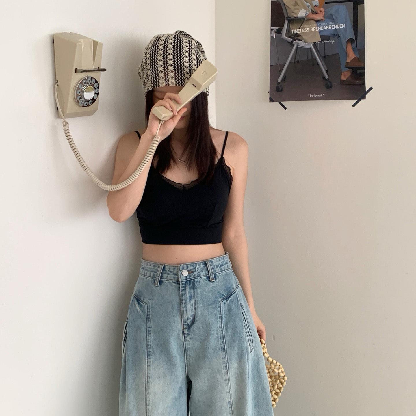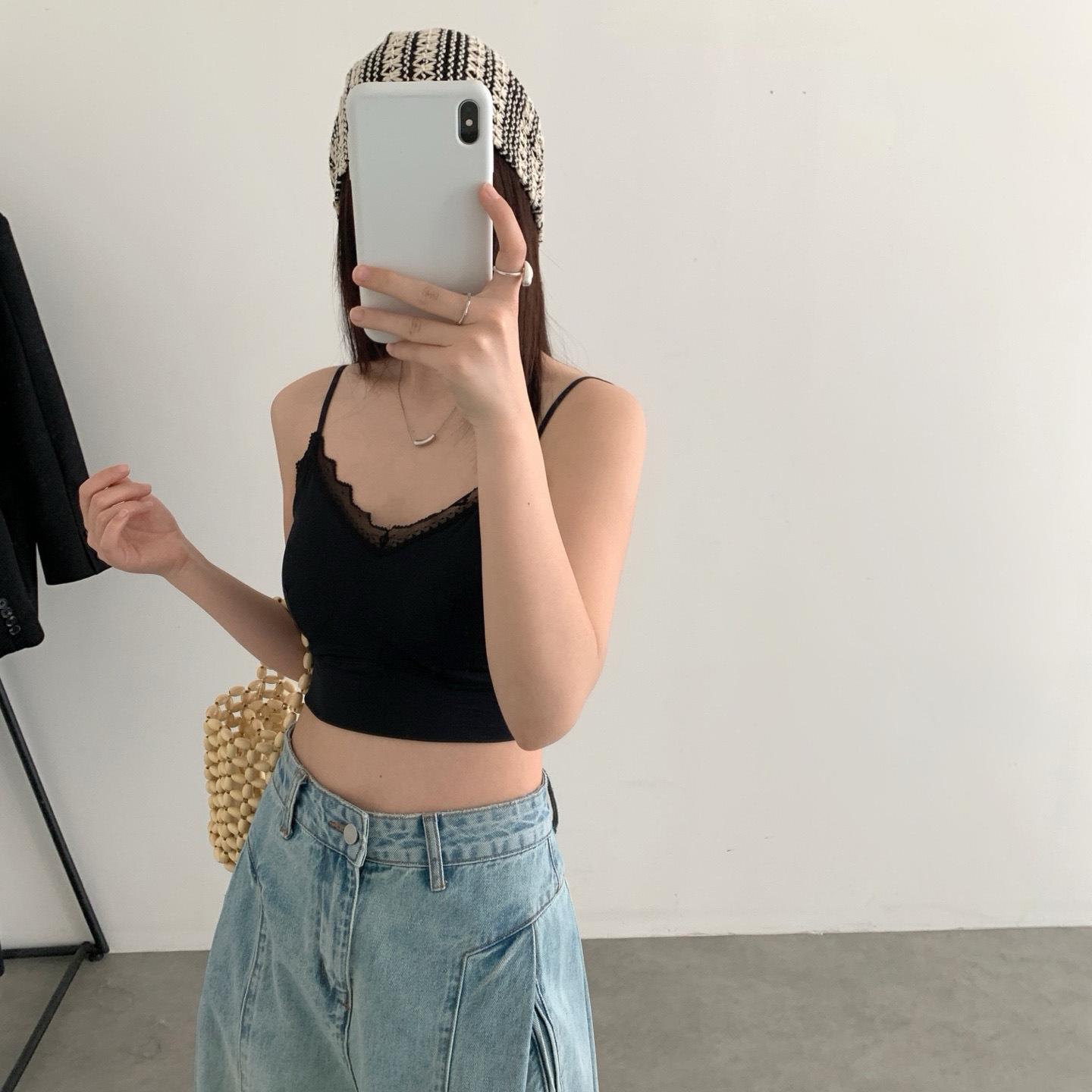Seda de Hielo Copa Fija Encaje con Cómodo y Fresco Versátil Tirante Delgado Ajustado Envoltura de Pecho Íntimos Chaleco 8275