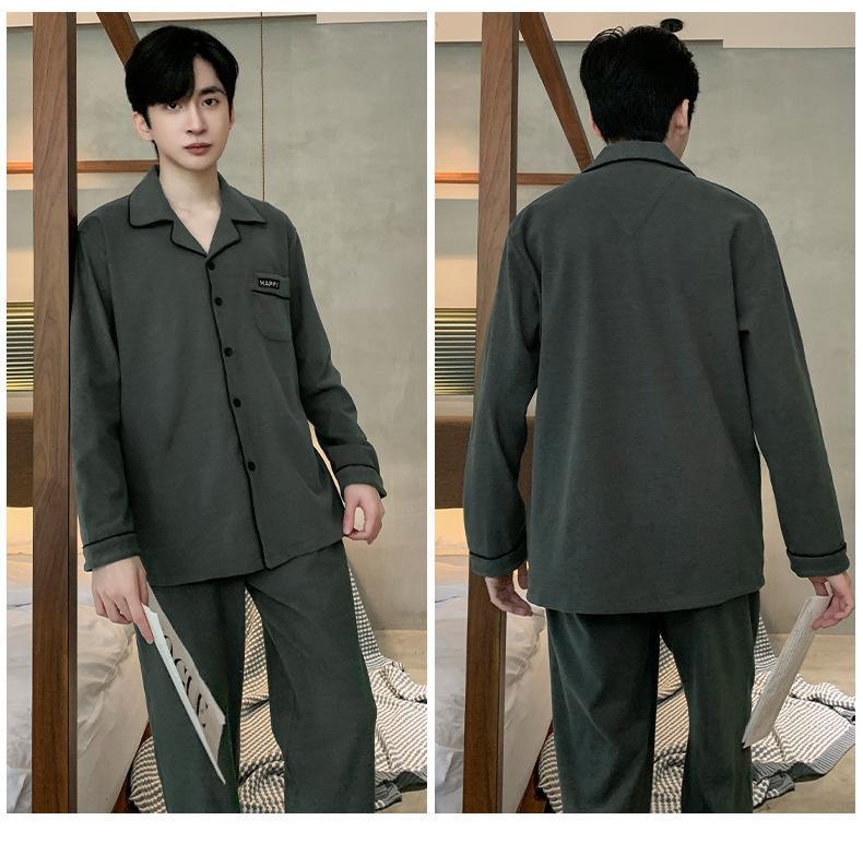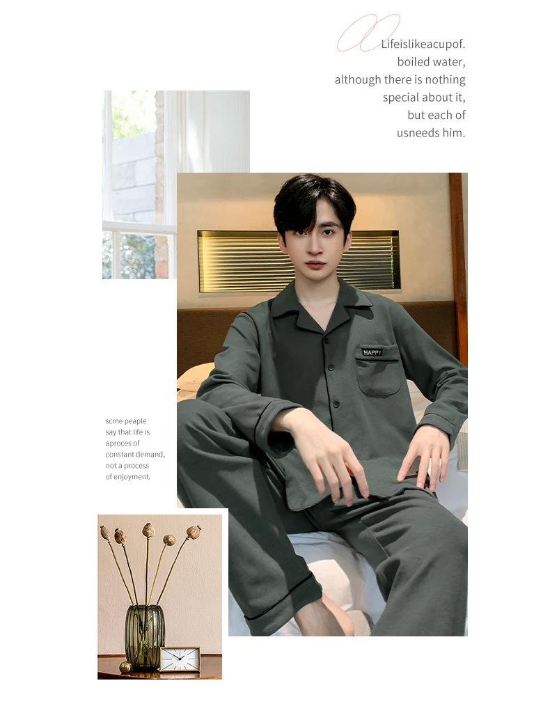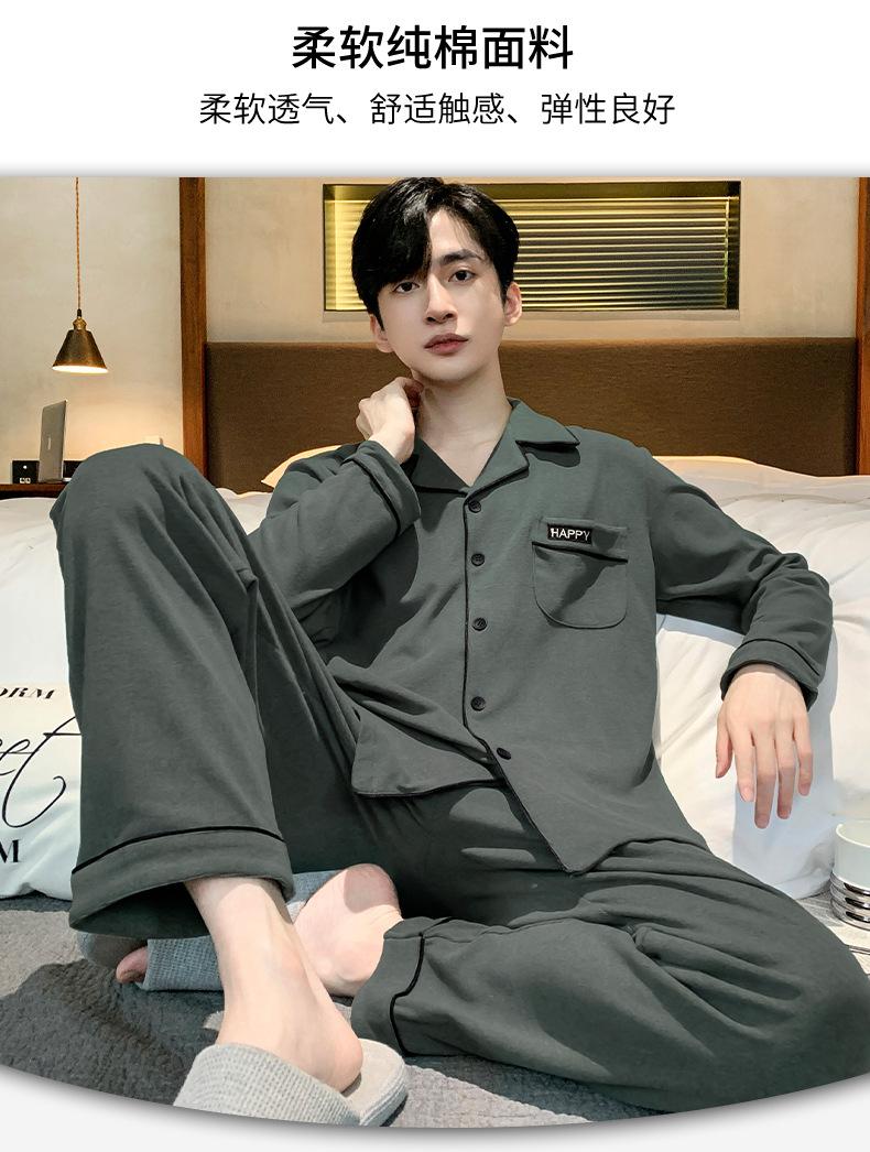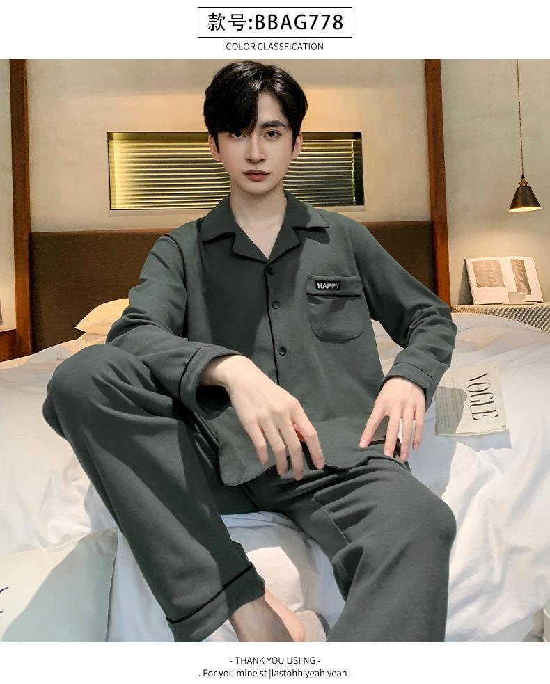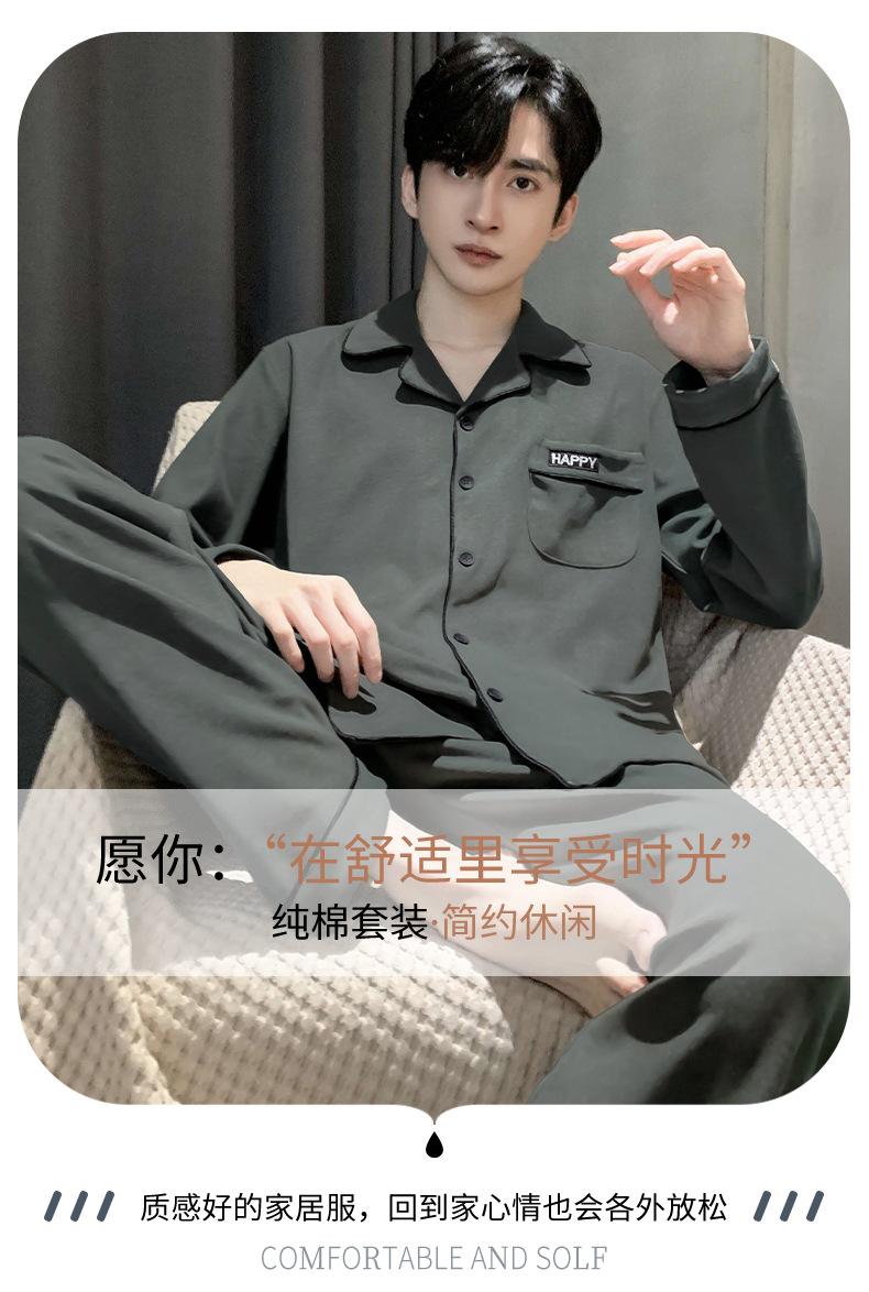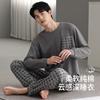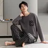 2025 Pijama Nuevo para Hombre Algodón Puro Manga Larga Pantalón Largo Estilo Delgado Niños Primavera Otoño Adolescentes Conjunto de Ropa de Casa