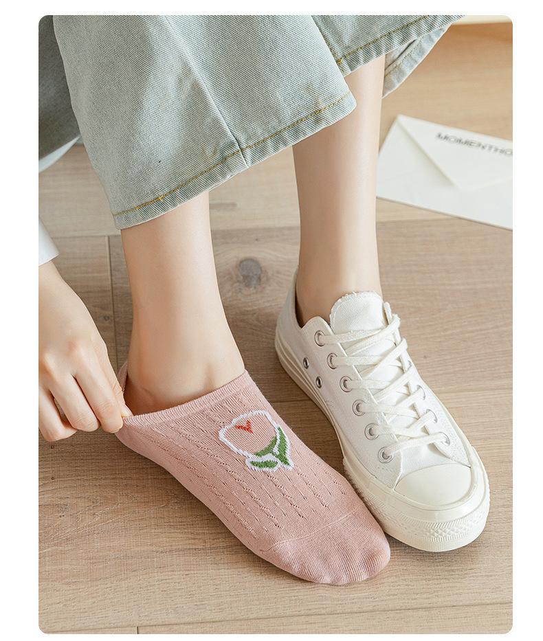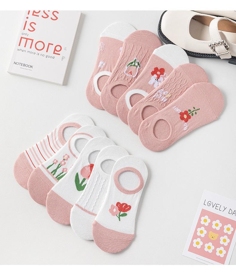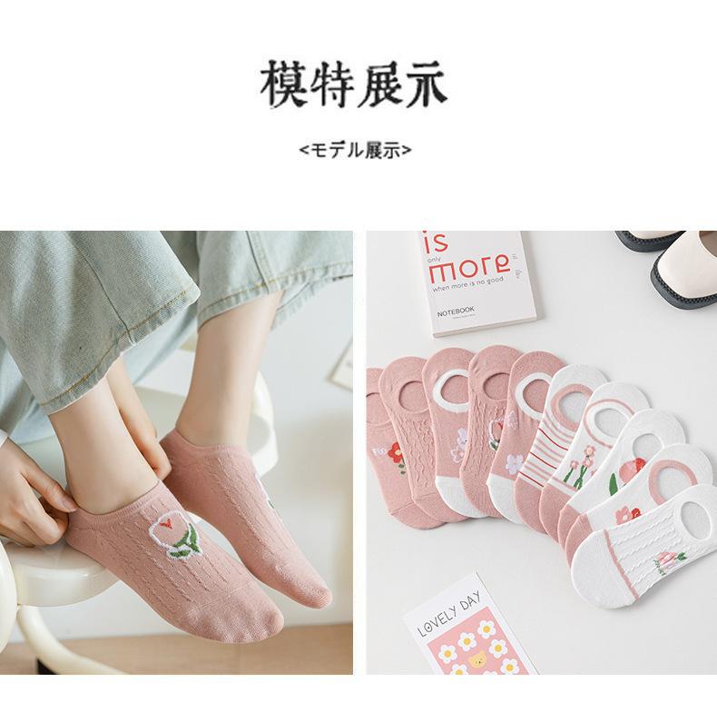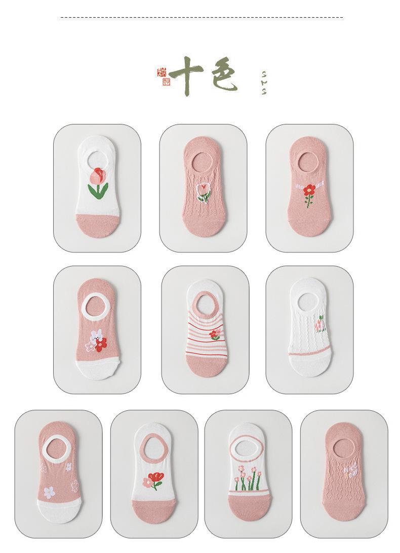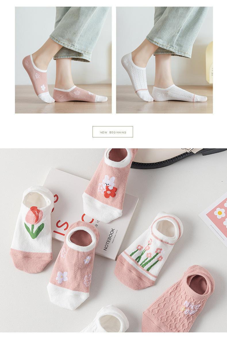 Calcetines Calcetines Cortos para Mujer Invisibles Transpirables Modernos Calcetines de Mujer Verano Flores Rosas Estilo Coreano Primavera y Verano Calcetines Cortos de Tubo Calcetines de Barco para Mujer