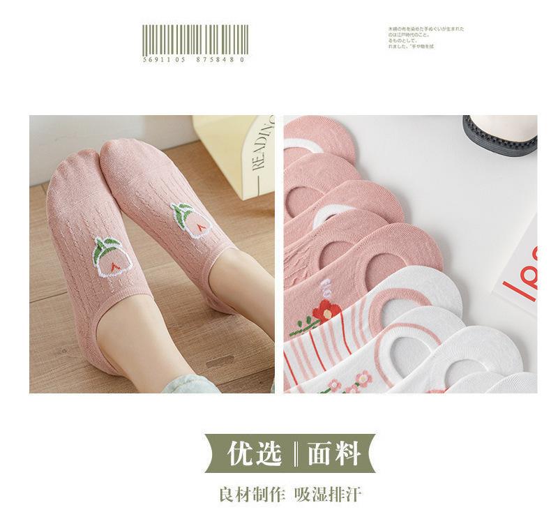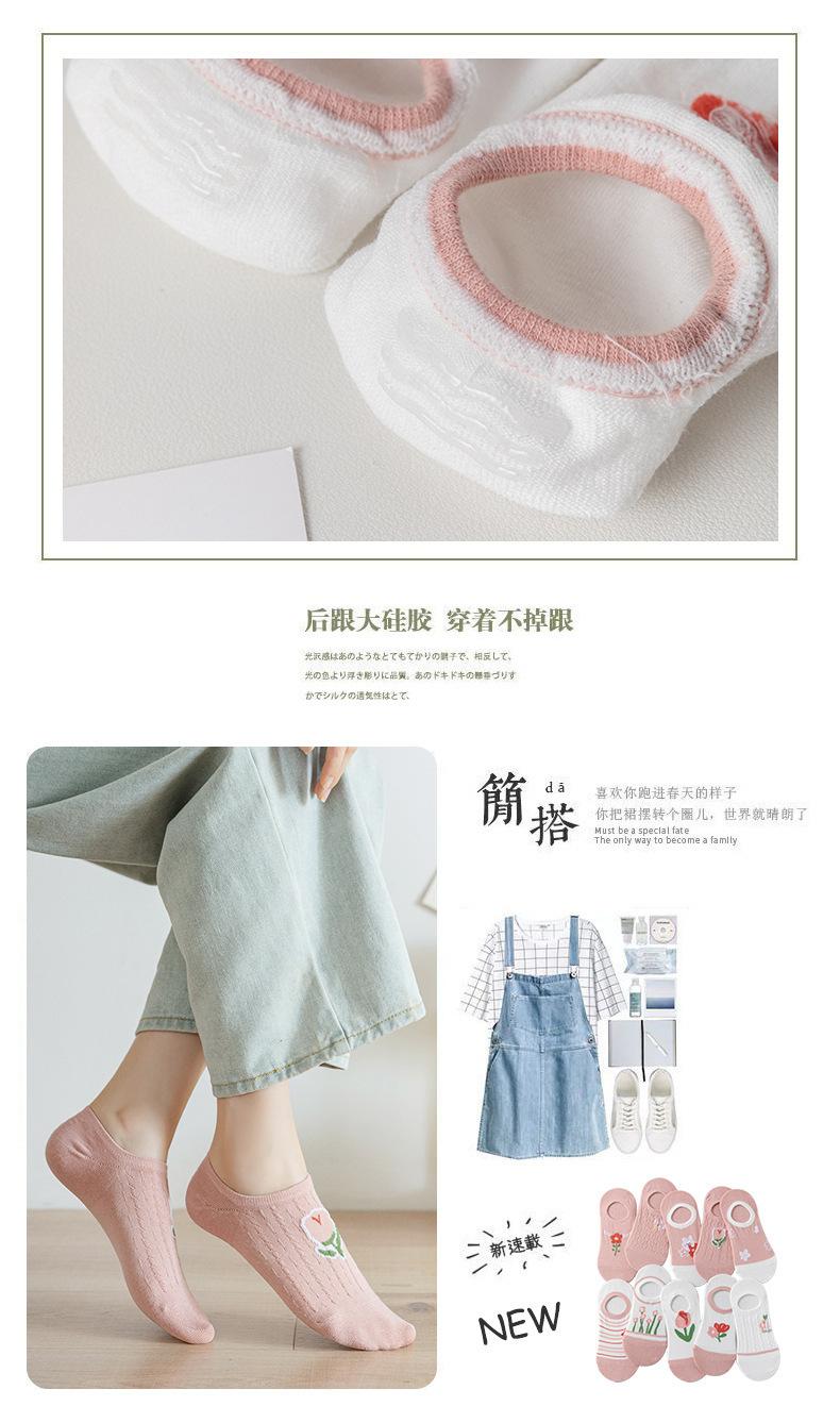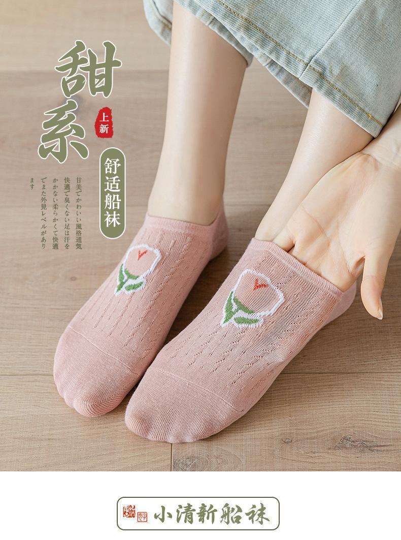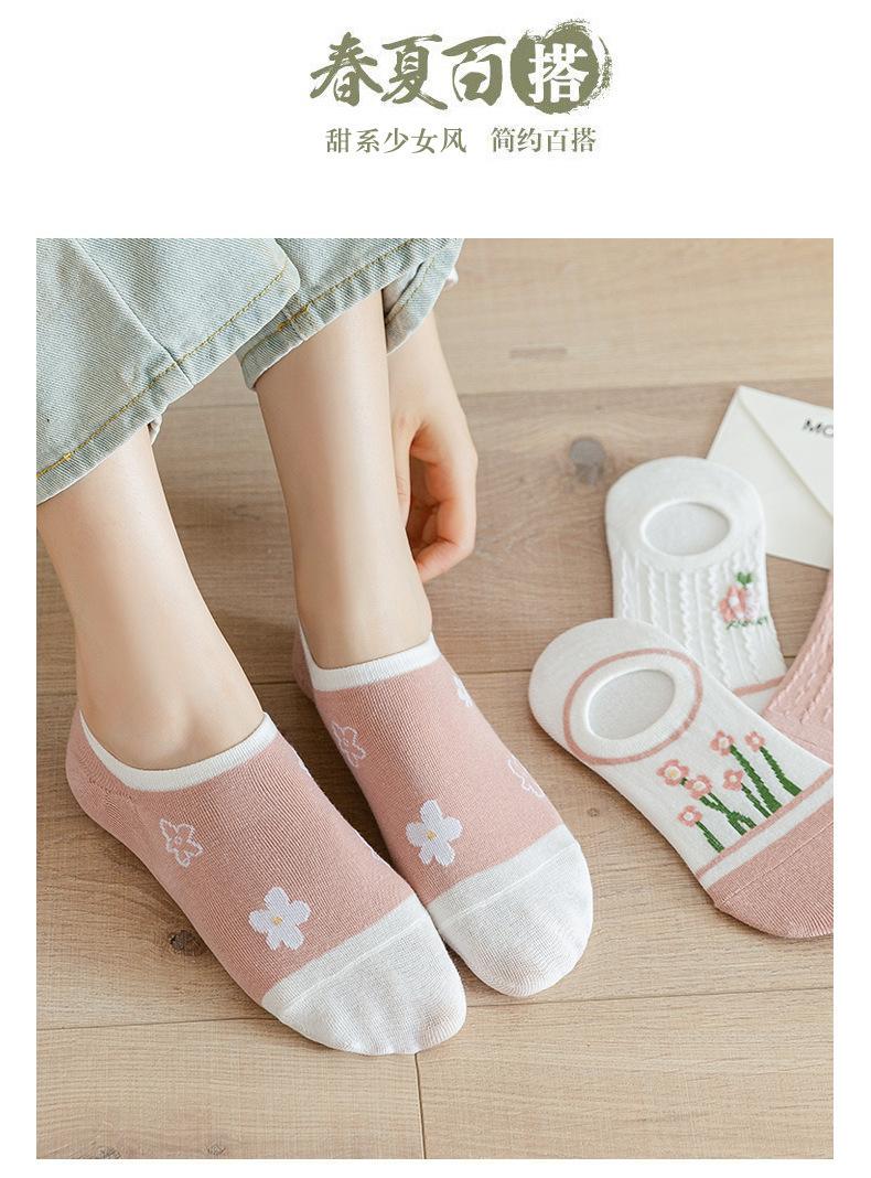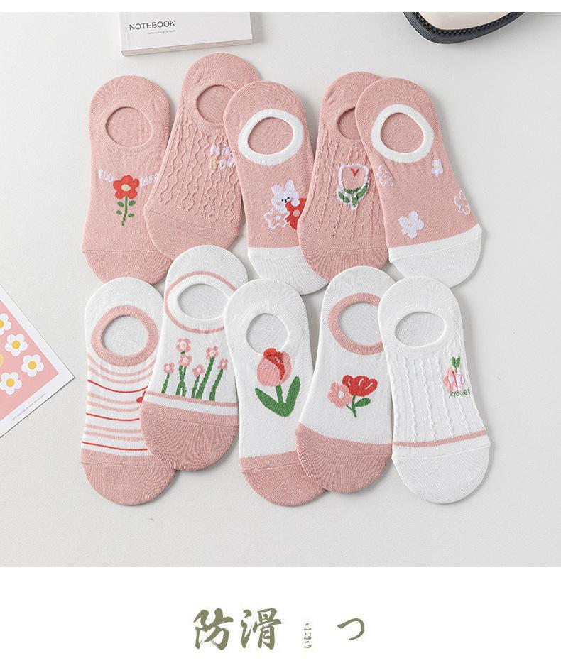 Calcetines Calcetines Cortos para Mujer Invisibles Transpirables Modernos Calcetines de Mujer Verano Flores Rosas Estilo Coreano Primavera y Verano Calcetines Cortos de Tubo Calcetines de Barco para Mujer