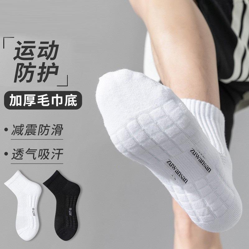 10A Grade Antibacterial - Terry Bottom Sports Socks Terry Loop Style 5-Pair Pack [3 Black + 2 White] Low-Cut S...