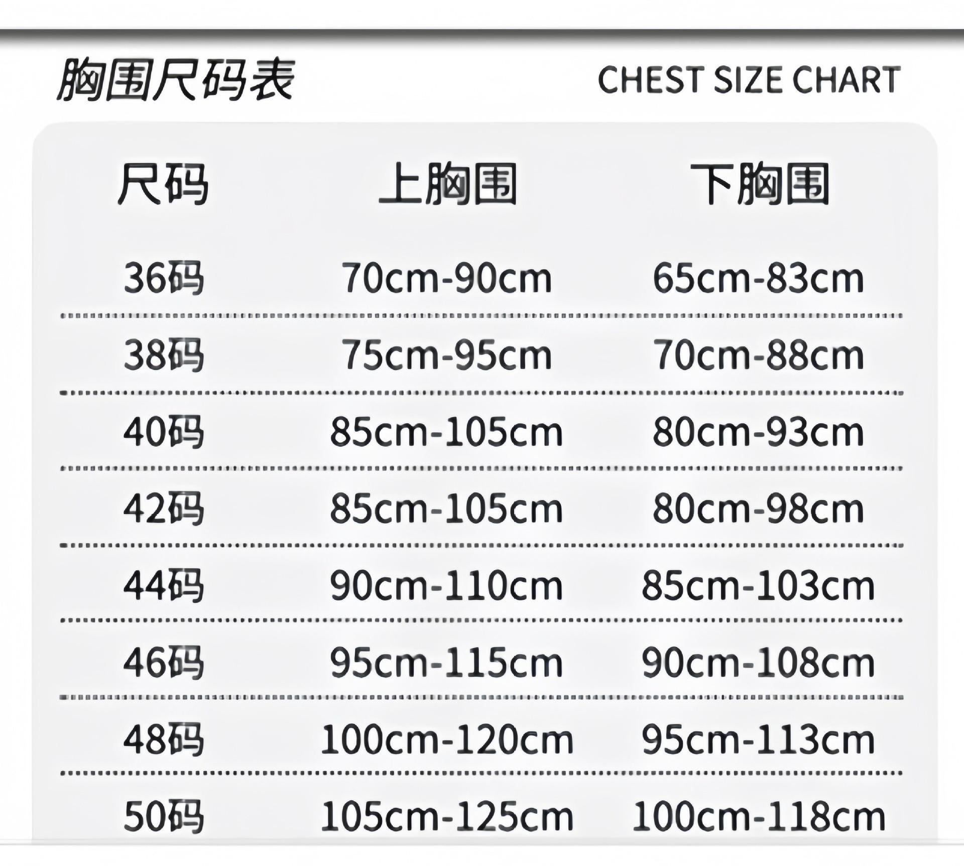 Size 36 recommended for [80-95 jin], Size 38 recommended [96-110 jin], Size 40 recommended for [111-125 lbs], ...