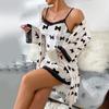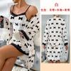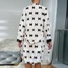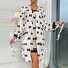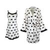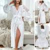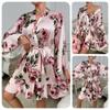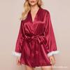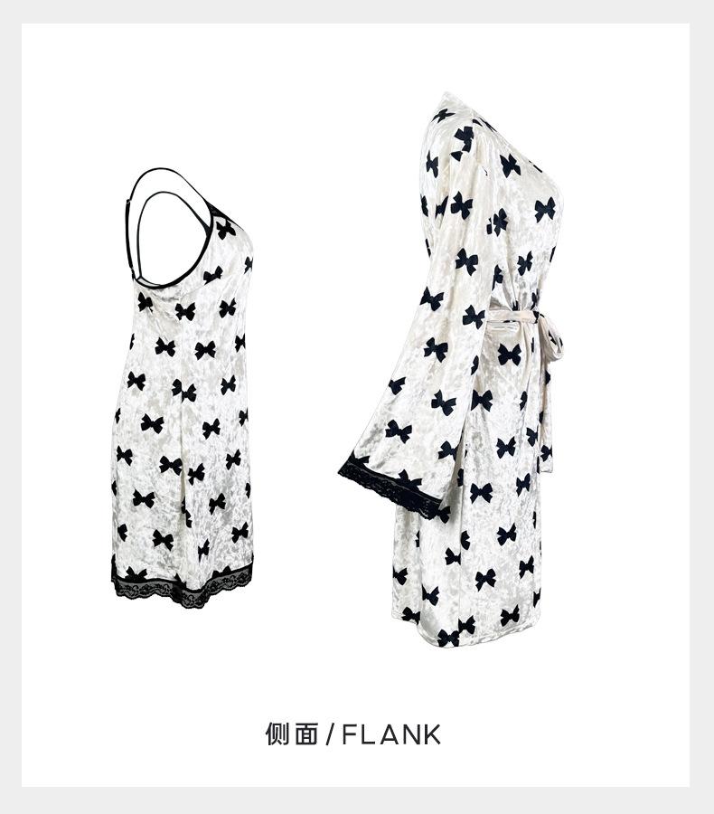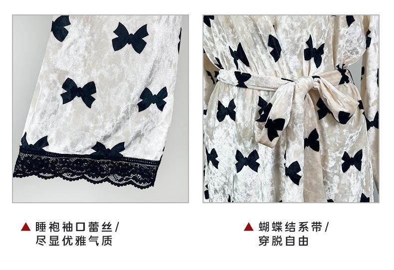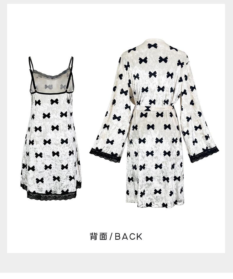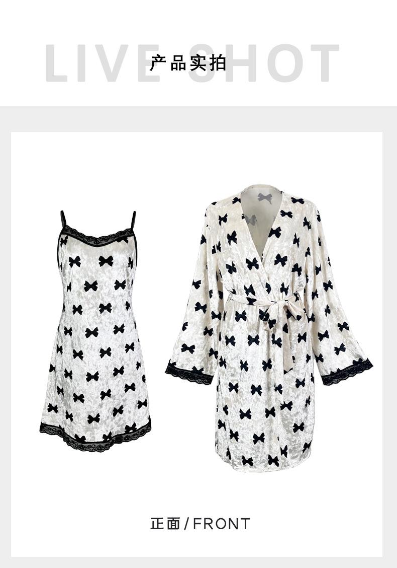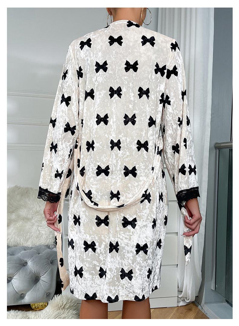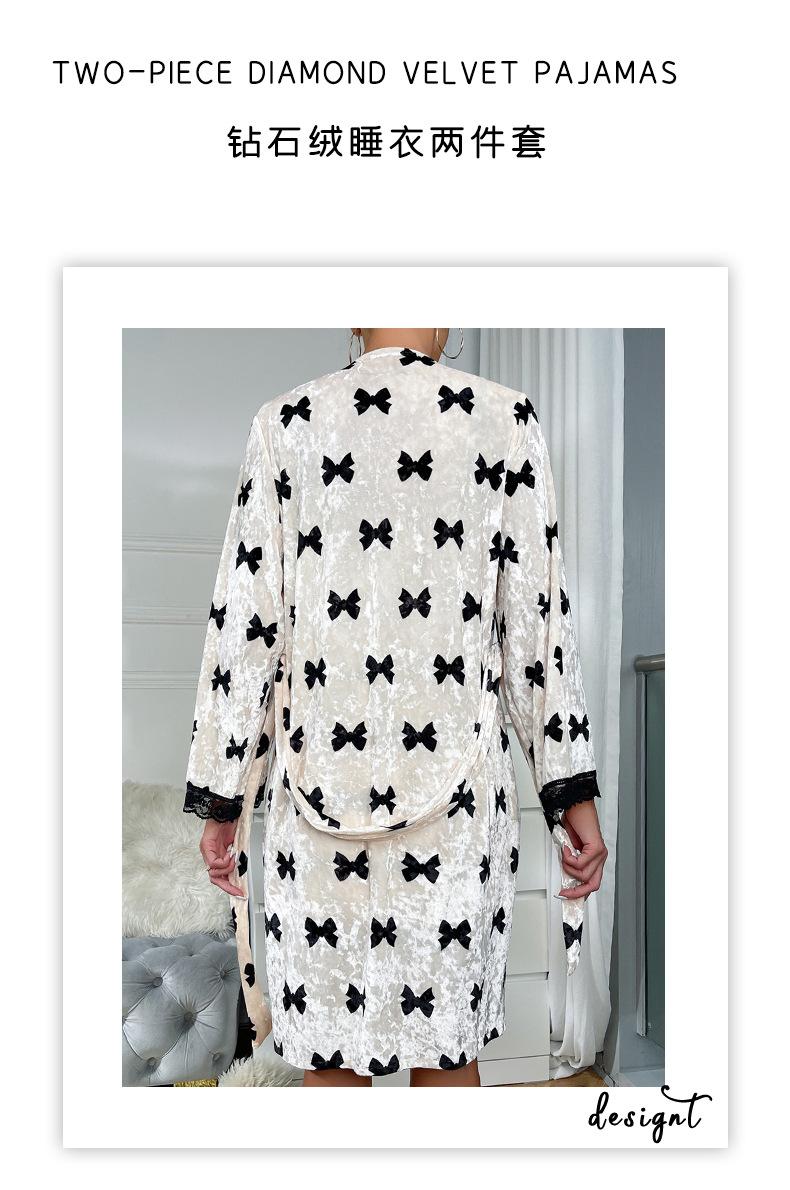 Bata Muffy Europea y Americana de Terciopelo con Estampado de Lazo, Empalme de Encaje, Anudar, Bata Exterior, Camisón, Conjunto de Dos Piezas 492