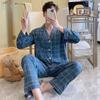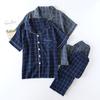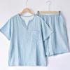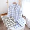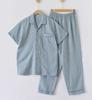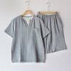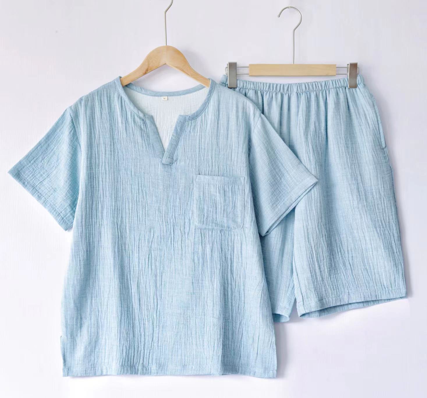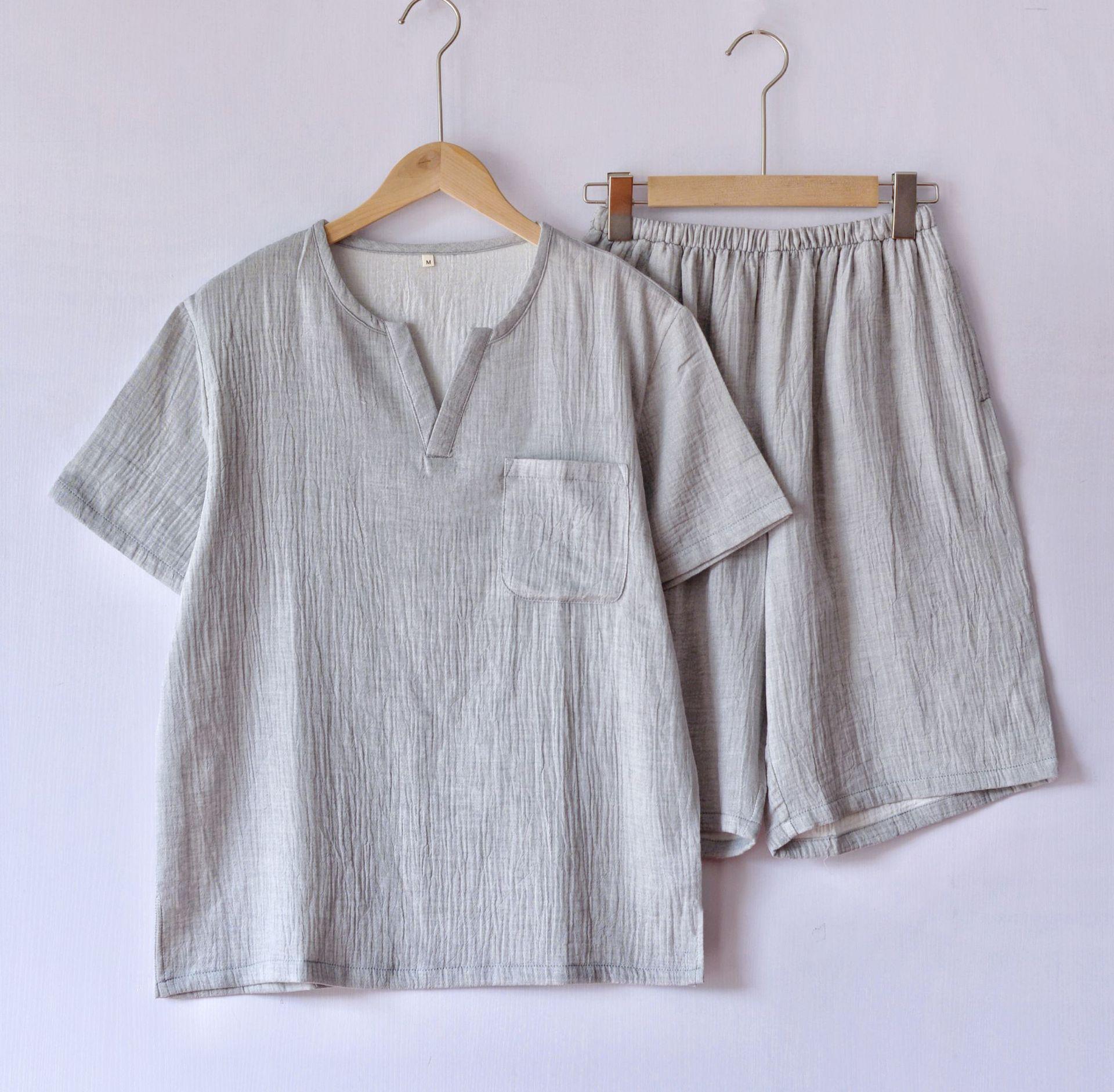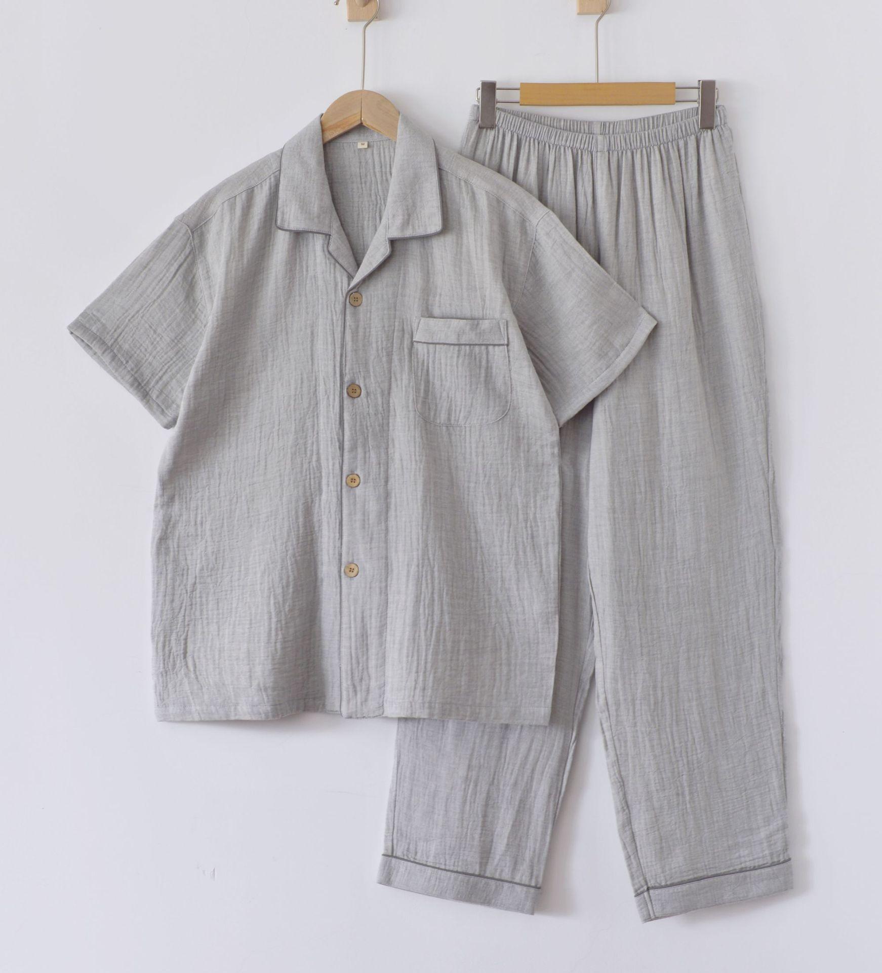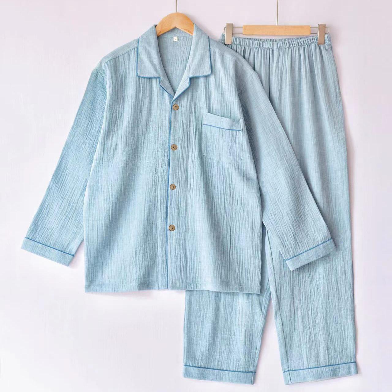 Pijama de Algodón de Gasa Crepé de Doble Capa para Primavera y Otoño, Estilo Japonés Simple para Hombre, de Manga Larga y Manga Corta, Conjunto de Algodón Puro para Estar en Casa