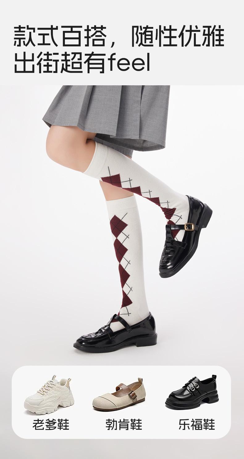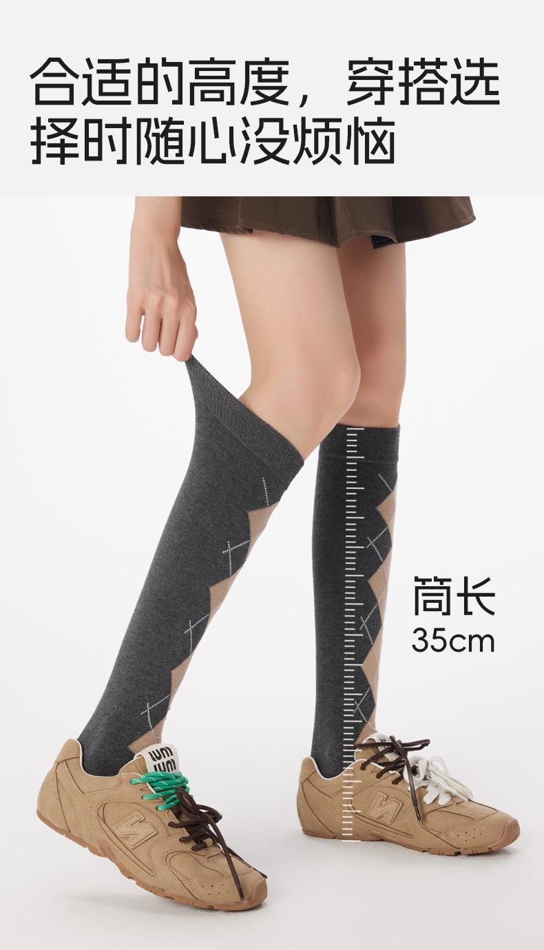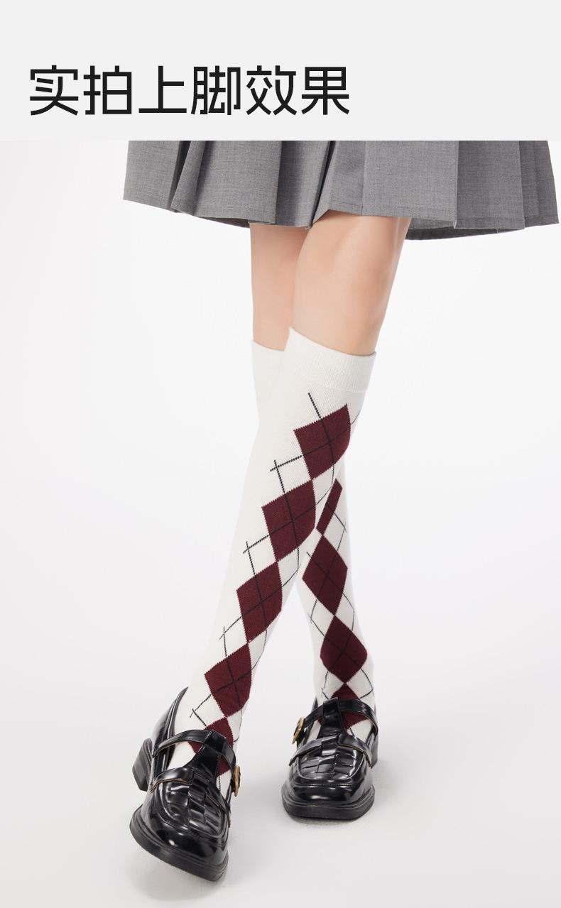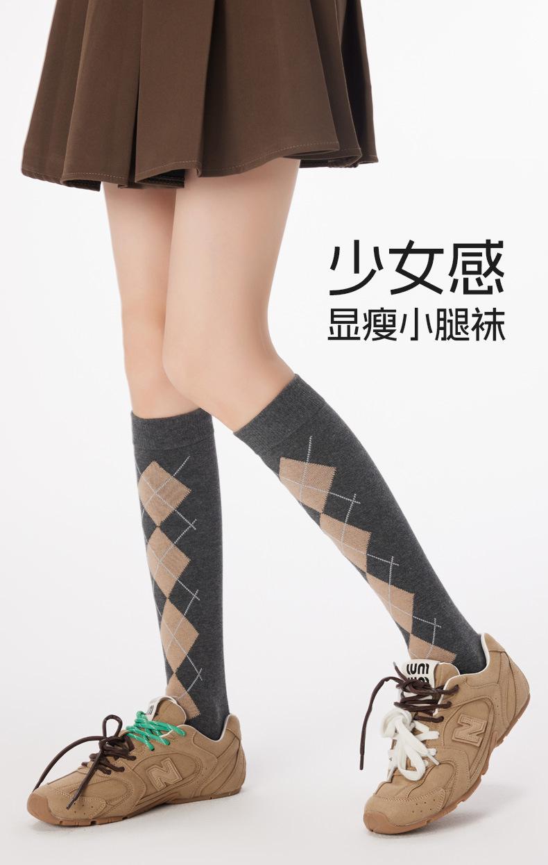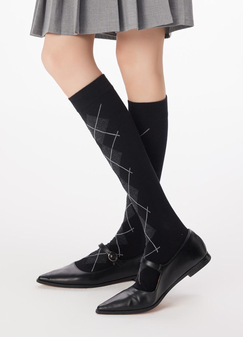 Calcetines altos hasta la rodilla para mujer de algodón puro otoño e invierno moda argyle calcetines largos estilo JK coreano piernas hermosas adelgazantes calcetines para piernas calcetines largos grises