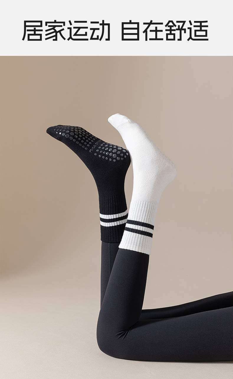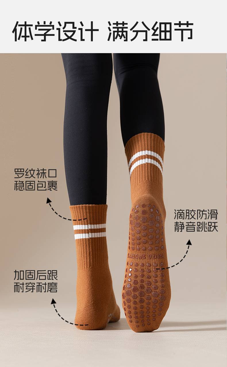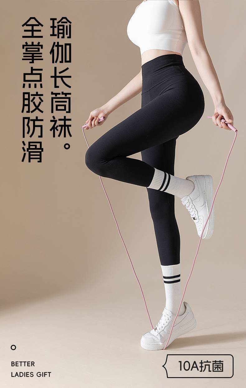 Calcetines de Yoga Profesionales Otoño Antideslizantes Suela de Silicona Calcetines de Piso Algodón Puro Media Caña Calcetines Deportivos Fitness Largos Calcetines Zhuji